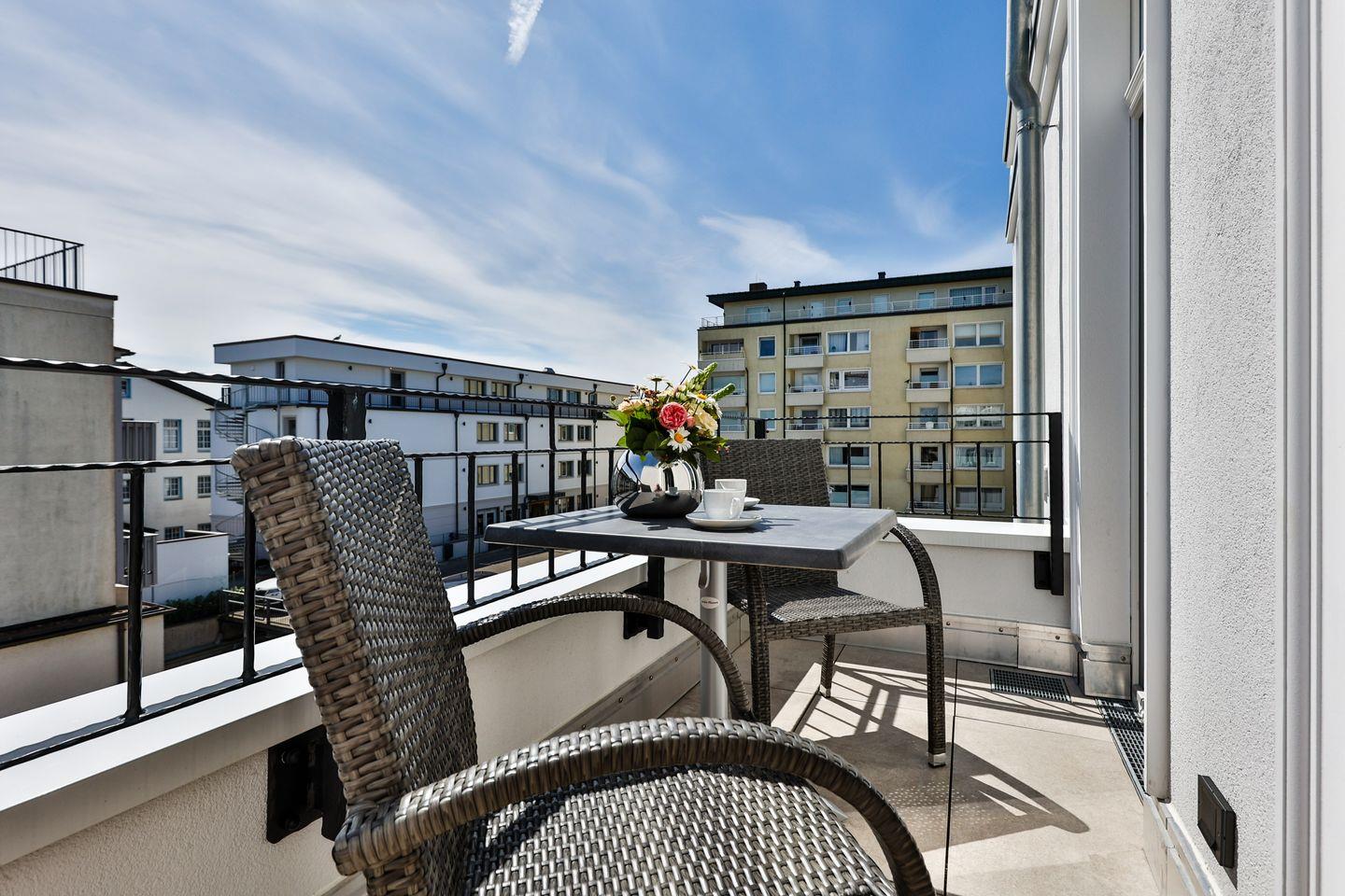 Diese moderne und stilvoll ausgestattete 3-Zimmer-Ferienwohnung im zweiten Obergeschoss des Logierhauses Jonna bietet auf ca. 90 m² großzügigen Platz für bis zu 4 Personen. Verbringen Sie entspannte Urlaubstage auf Sylt in zentraler Lage von Westerland. Die Einkaufsmeile Friedrichstraße ist nur wenige Schritte entfernt und die Strandpromenade erreichen Sie fußläufig in ein paar Minuten. Genießen Sie die ruhige Atmosphäre dieser exklusiven Ferienwohnung, die mit Fußbodenheizung, zwei Balkonen und einem gemeinschaftlichen Wellnessbereich keine Wünsche offenlässt.