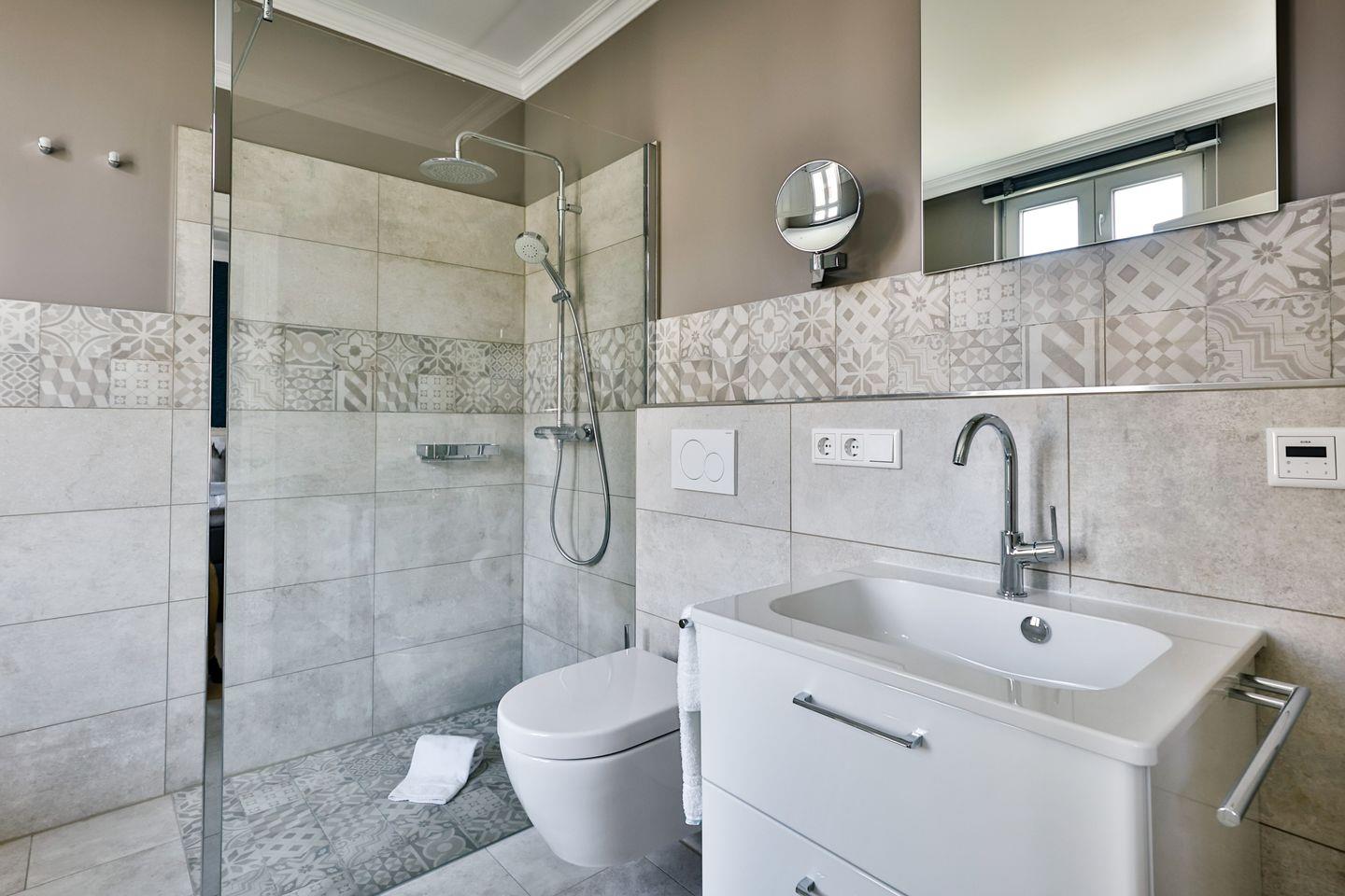 Die Ferienwohnung und das Treppenhaus sind barrierefrei gestaltet. Rollstühle und Rollatoren können dort problemlos abgestellt und aufgeladen werden. Die Bäder bieten viel Platz und haben geräumige, ebenerdige Duschen mit bequemer Bewegungsfreiheit. Bitte beachten Sie, dass die Balkonschwelle eine Höhe von 6 cm aufweist und der Zugang daher nicht vollständig barrierefrei ist.