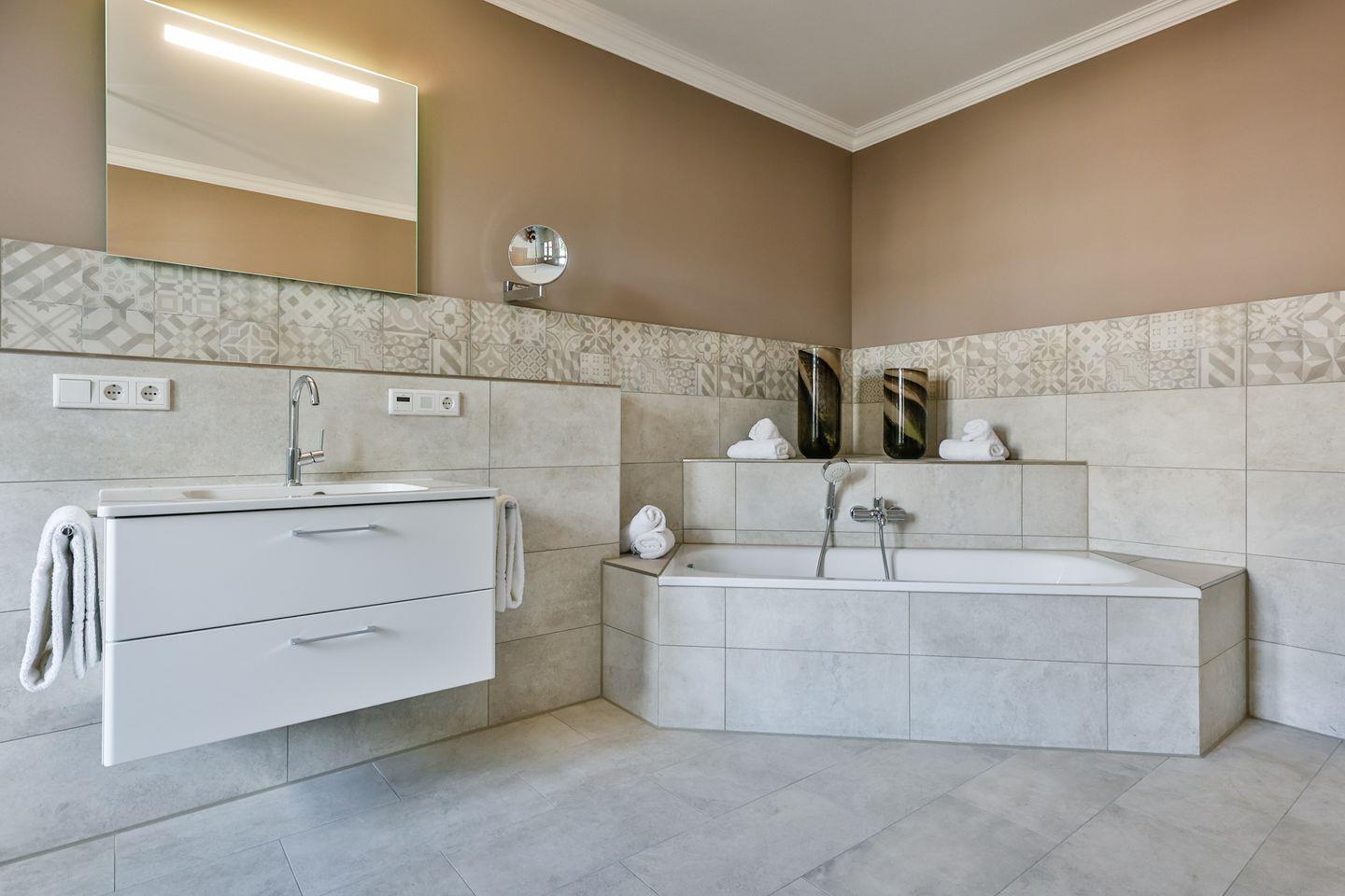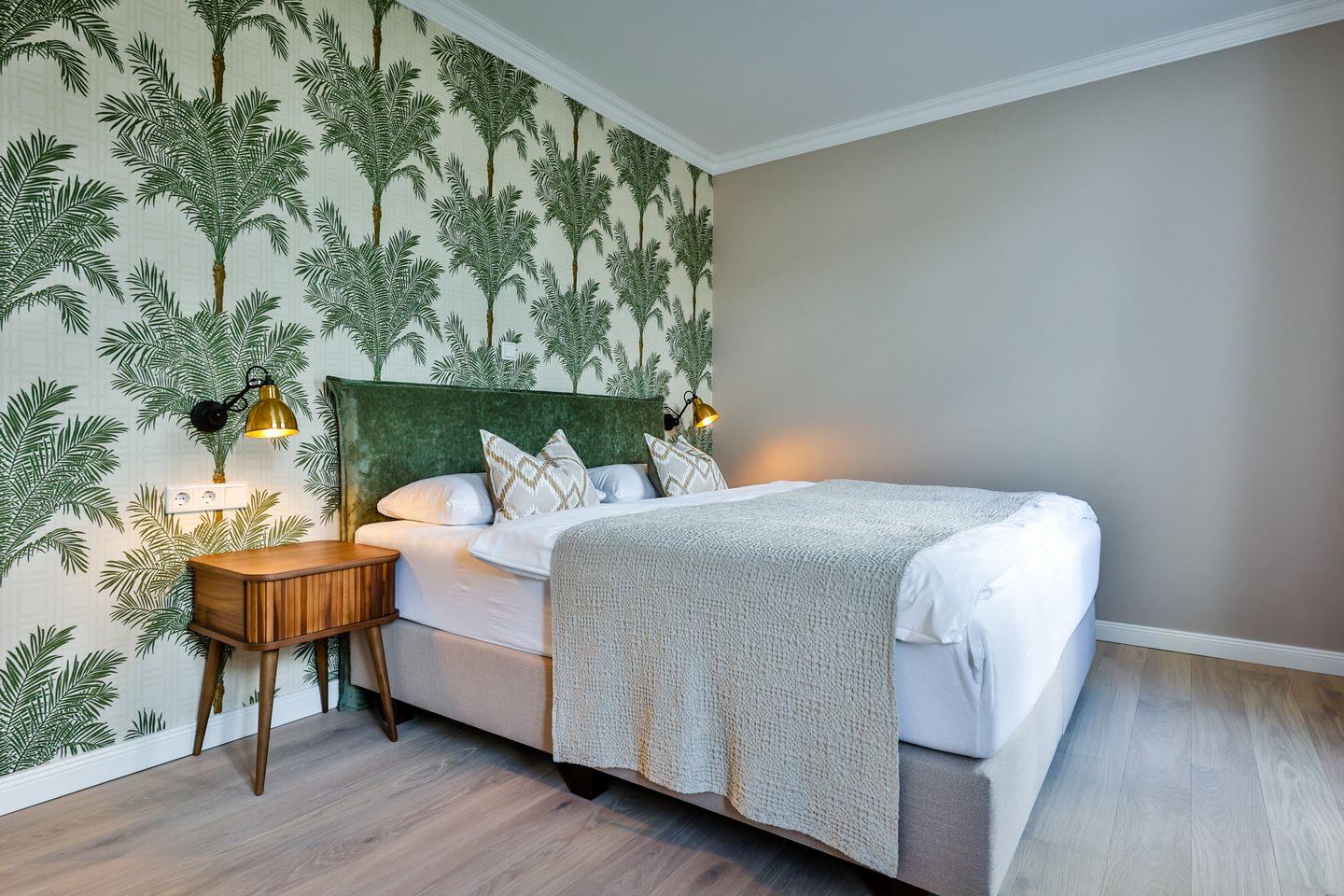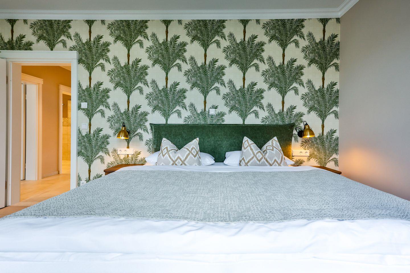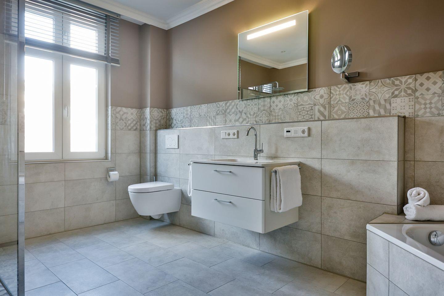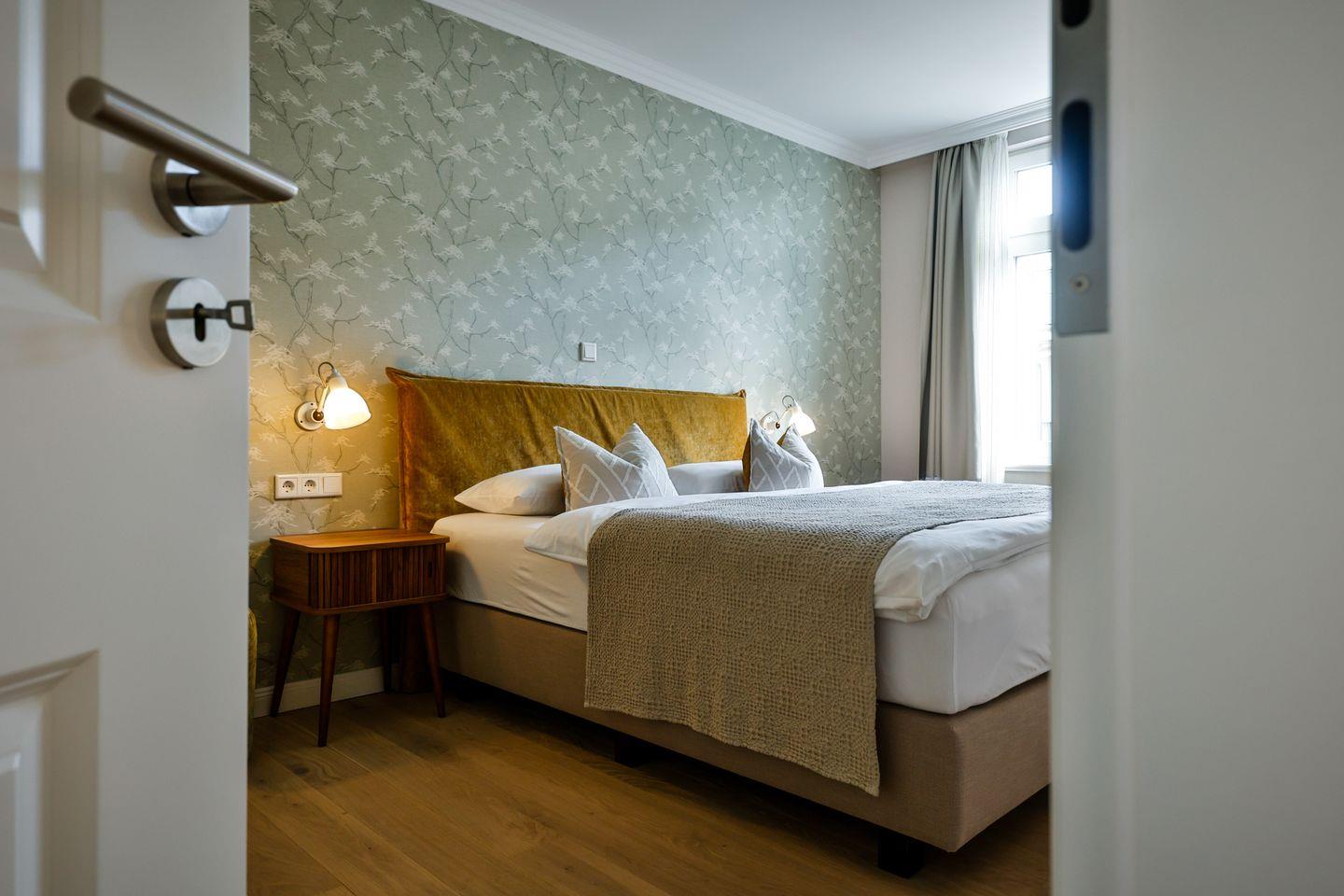 Beide Schlafzimmer sind sehr geschmackvoll eingerichtet und bieten höchsten Schlafkomfort. Das Hauptschlafzimmer ist mit einem Boxspringbett (180x200 cm) und TV ausgestattet. Das zweite Schlafzimmer ist ebenfalls mit einem Boxspringbett (180x200 cm) und TV eingerichtet. Bei Bedarf kann für eine fünfte Person ein Zustellbett bereitgestellt werden. Die Wohnung bietet zwei moderne Badezimmer, die mit ebenerdigen Duschen, WC und Fön ausgestattet sind. Ein Badezimmer hat zusätzlich eine Badewanne zum Entspannen und Wohlfühlen. Abgerundet wird der Bereich durch ein separates Gäste-WC.