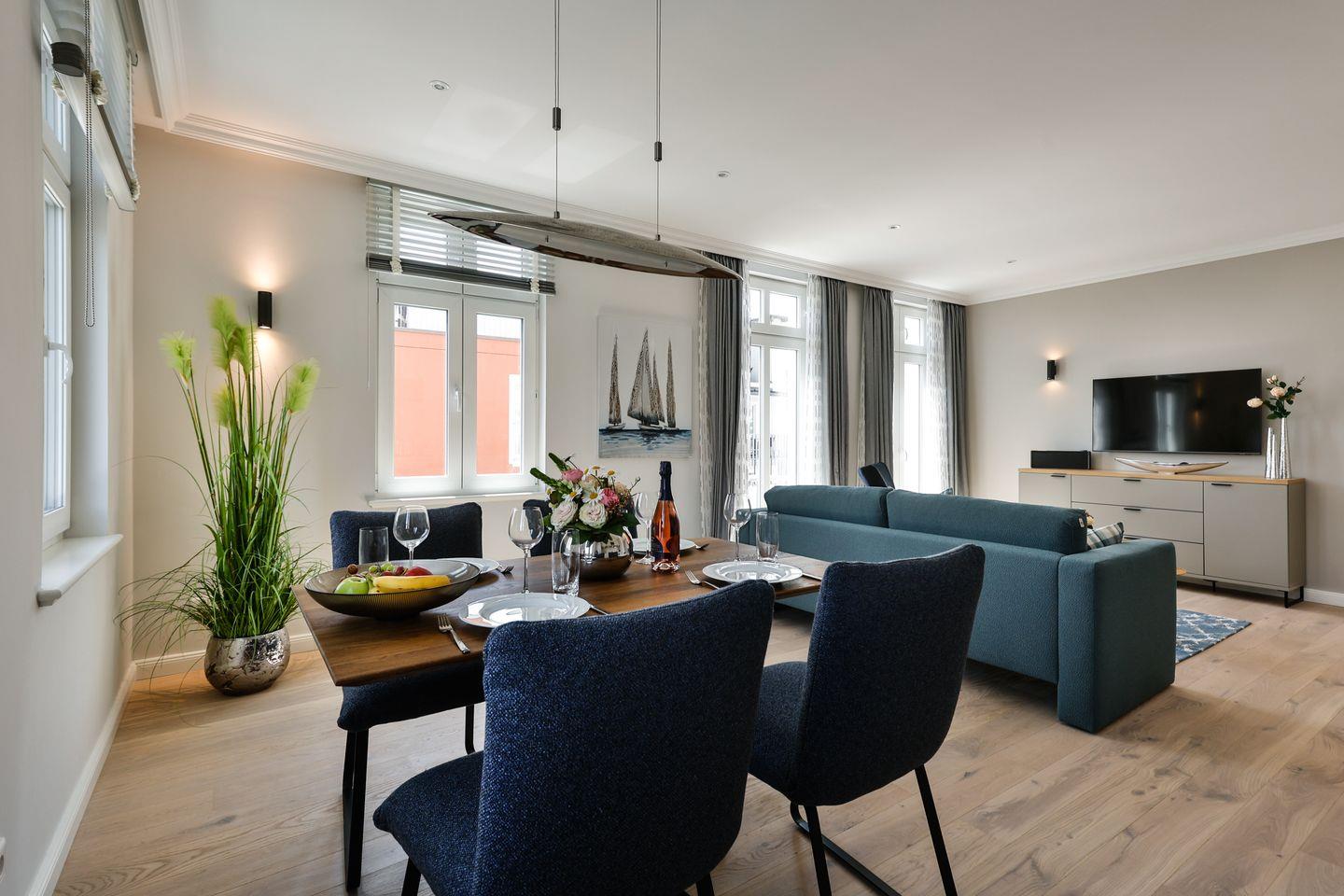 3-Zimmer-Ferienwohnung auf 1 Ebene (2.OG) in Westerland mit ca. 90 qm für bis zu 4 Personen.