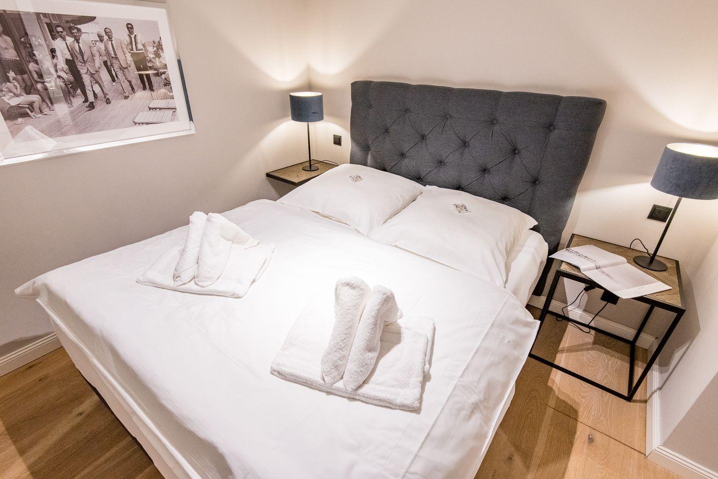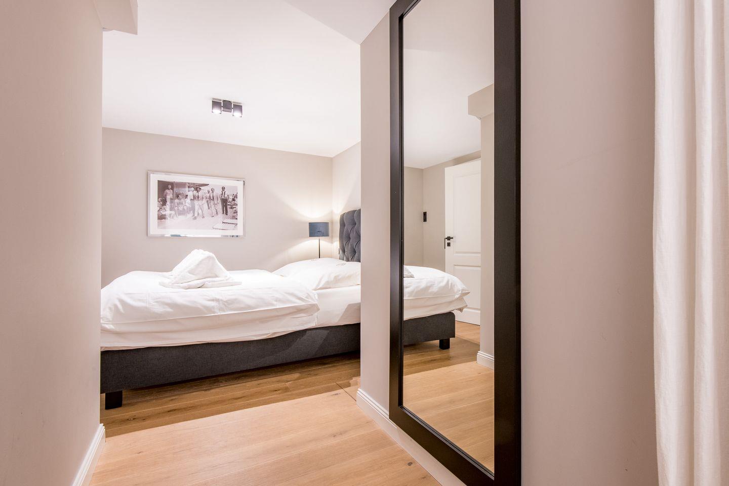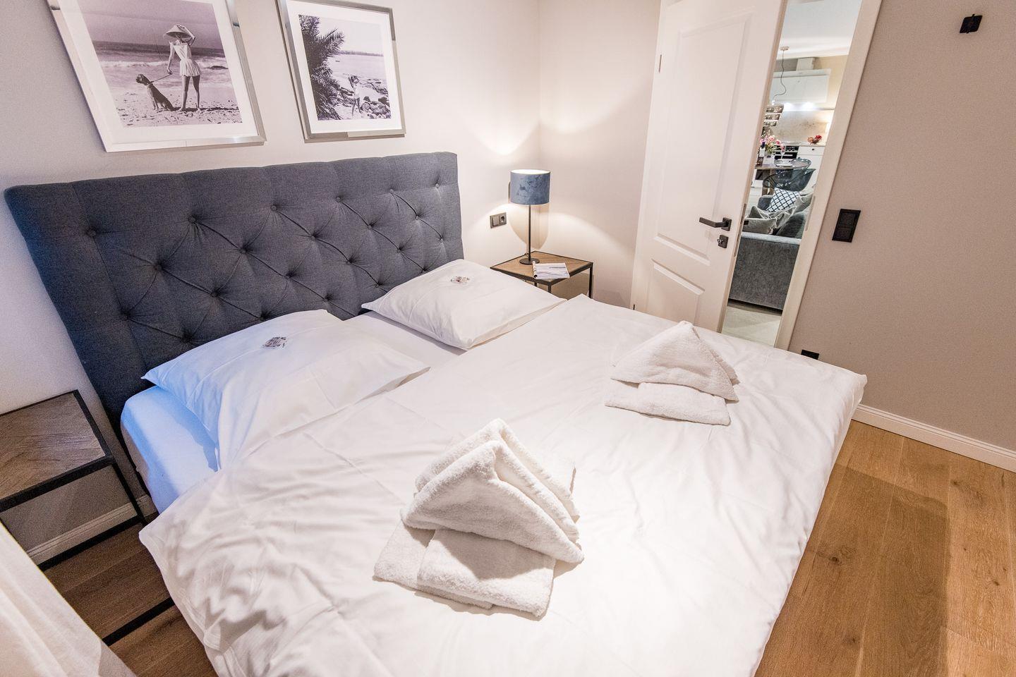 Für erholsame Nächte stehen Ihnen zwei geschmackvoll eingerichtete Schlafzimmer mit komfortablen Boxspringbetten (180x200 cm) zur Verfügung. Die Zimmer bieten genügend Raum zum Entspannen und garantieren eine erholsame Nachtruhe.