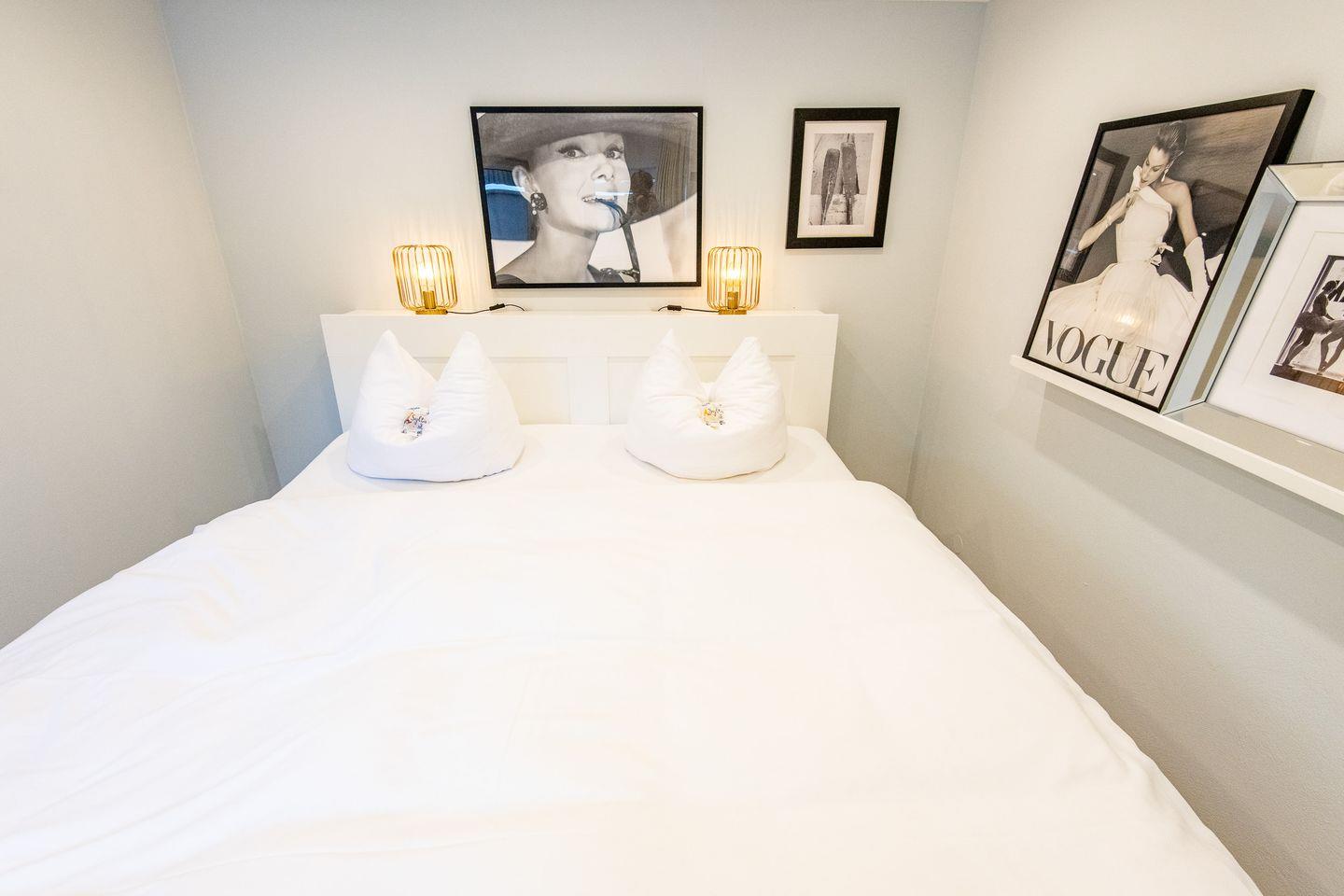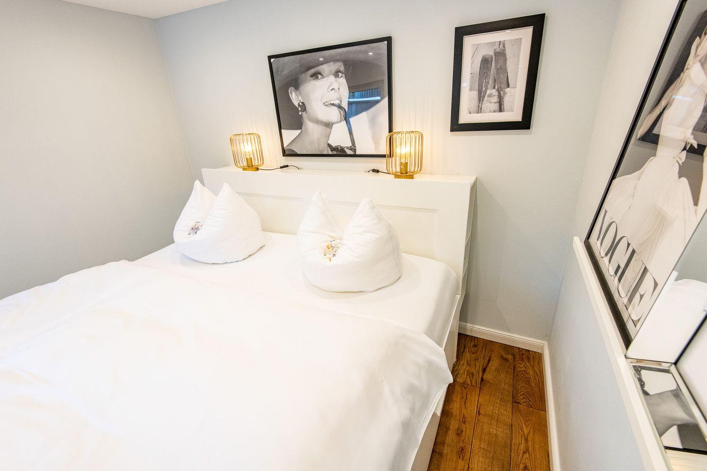 Die beiden Schlafzimmer sind mit komfortablen Doppelbetten (180x200 cm), großen Kleiderschränken und eigenen TVs ausgestattet – perfekt für erholsame Nächte und viel Stauraum für Ihre Urlaubsgarderobe.