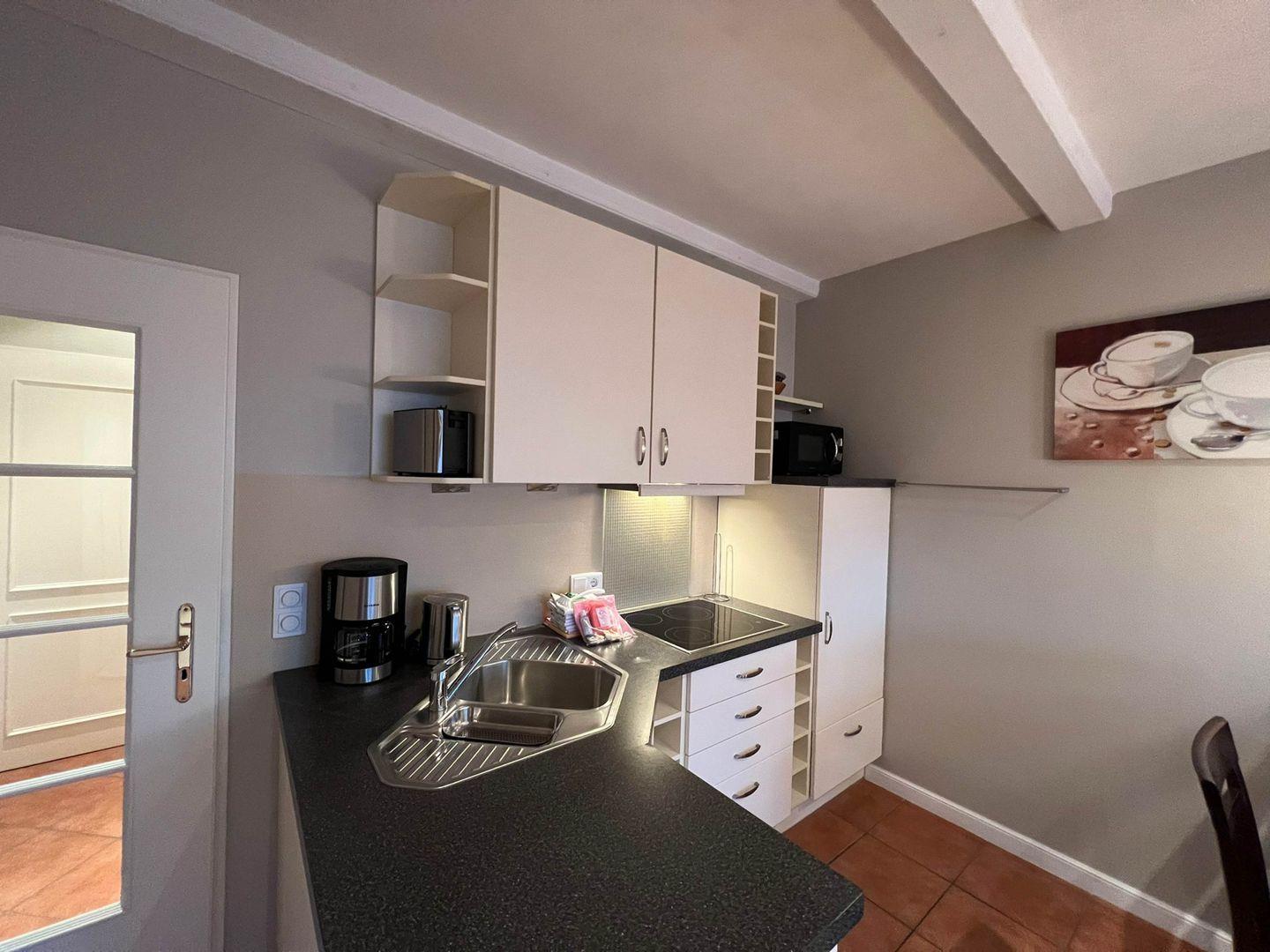 Das 1-Zimmer-Ferienappartement liegt superzentral in der lebendigen Inselhauptstadt Westerland, aber etwas abseits des ganz wilden Getümmels. Zum Supermarkt um die Ecke und zum Bäcker nebenan ist es jeweils nur ein Katzensprung, auch der Strand, der Bahnhof und Busse sind zu Fuß nur wenigen Minuten entfernt. Die „Robbe“ ist umsichtig und mit Sinn für alles Nötige ausgestattet, rund 37 Quadratmeter groß und auch noch rollatorfreundlich. Ein eigener Parkplatz, das ist nicht unwichtig so zentral, wenn man gern mit dem Auto anreist, gehört auch noch dazu.