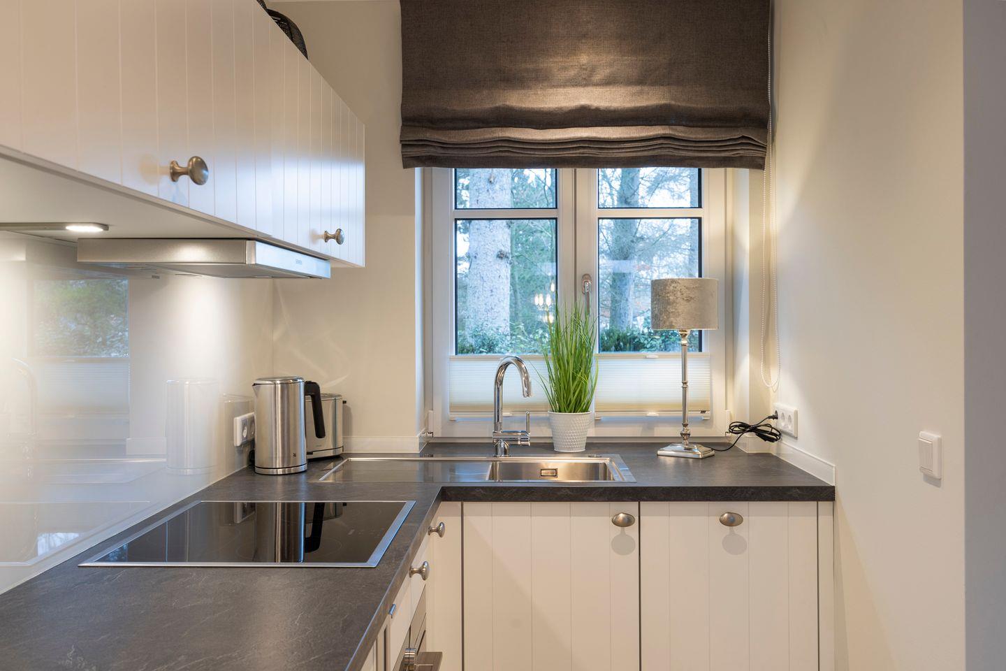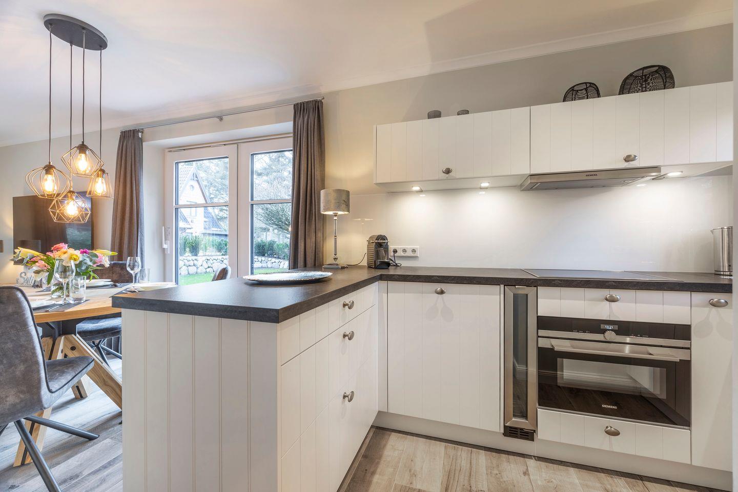 Die offene Küche ist bestens ausgestattet mit Geschirrspüler, Nespresso-Maschine, einem modernen Herd und allen Annehmlichkeiten, die Sie für die Zubereitung Ihrer Mahlzeiten benötigen.