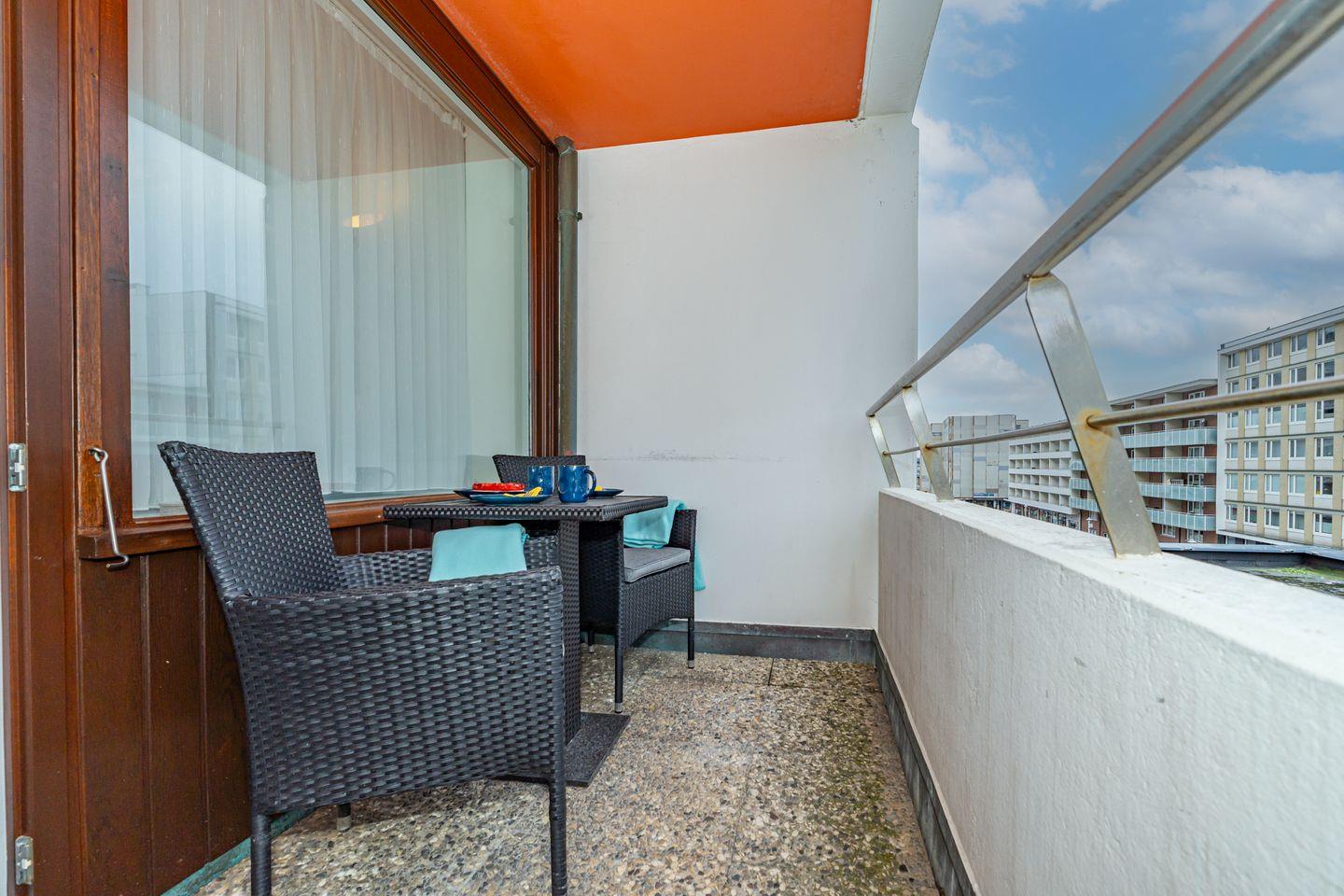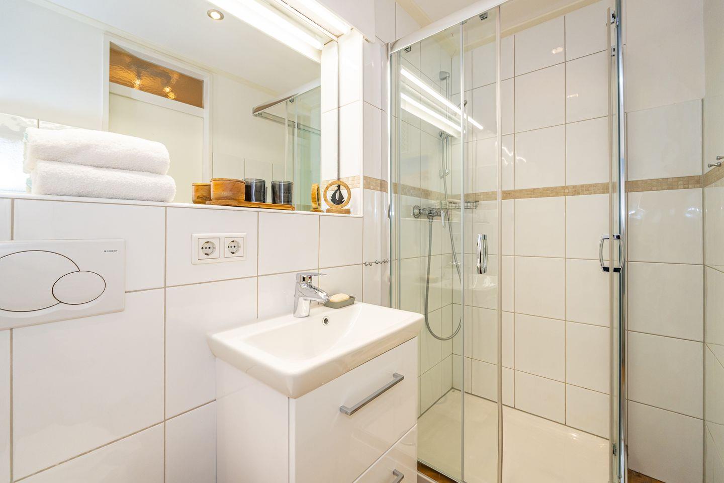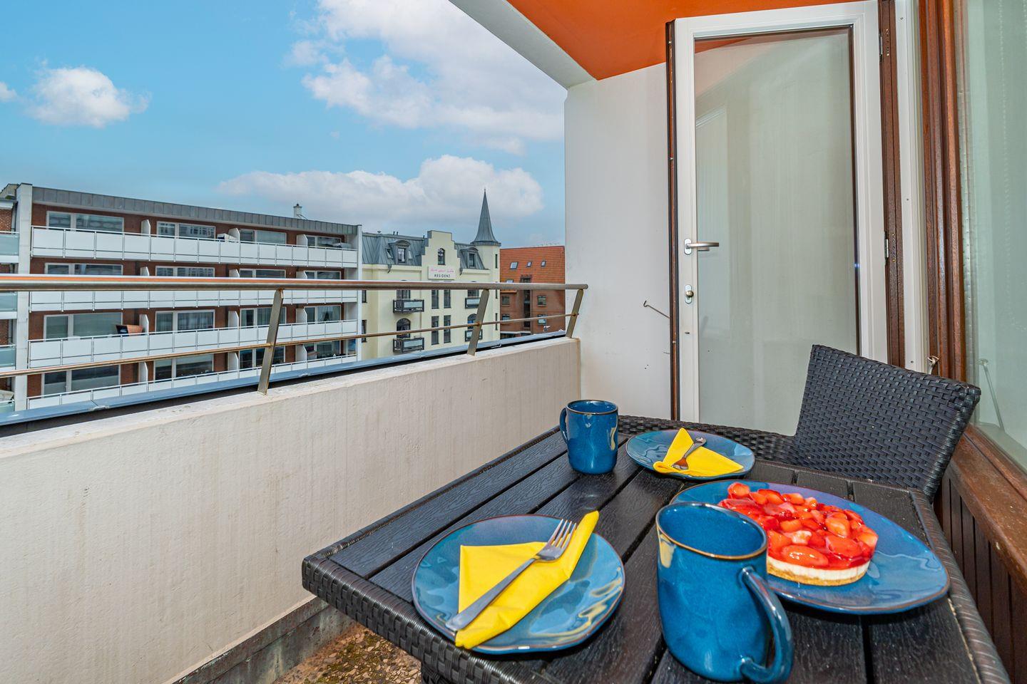 Am Ende der Westerländer Fußgängerzone, wenige Schritte bis zur Promenade und dem Hauptstrand erwartet Sie, erreichbar mit dem Aufzug, dieses moderne ca. 23 qm große 1 Zimmer Apartment im 1.Stock im "Haus am Meer". Wohn/Schlafraum mit raffinierter Sofa-Schrankbettkombination. Von hier aus kann man gemütlich bei einem Buch oder einer Serie vor dem Smart TV den Tag ausklingen lassen. In der Küchenzeile mit Mikrowelle, Herd, Kühlschrank und Geschirrspüler lassen sich kleine Köstlichkeiten zaubern. Auf dem Ostbalkon lassen sich morgens bei einem Espresso die frühen Sonnenstrahlen genießen. Des weiteren verfügt das Apartment über ein Duschbad mit WC und Handtuchtrockner. Im Kellergeschoss befinden sich Waschmaschine und Trockner zur Gemeinschaftsnutzung.
