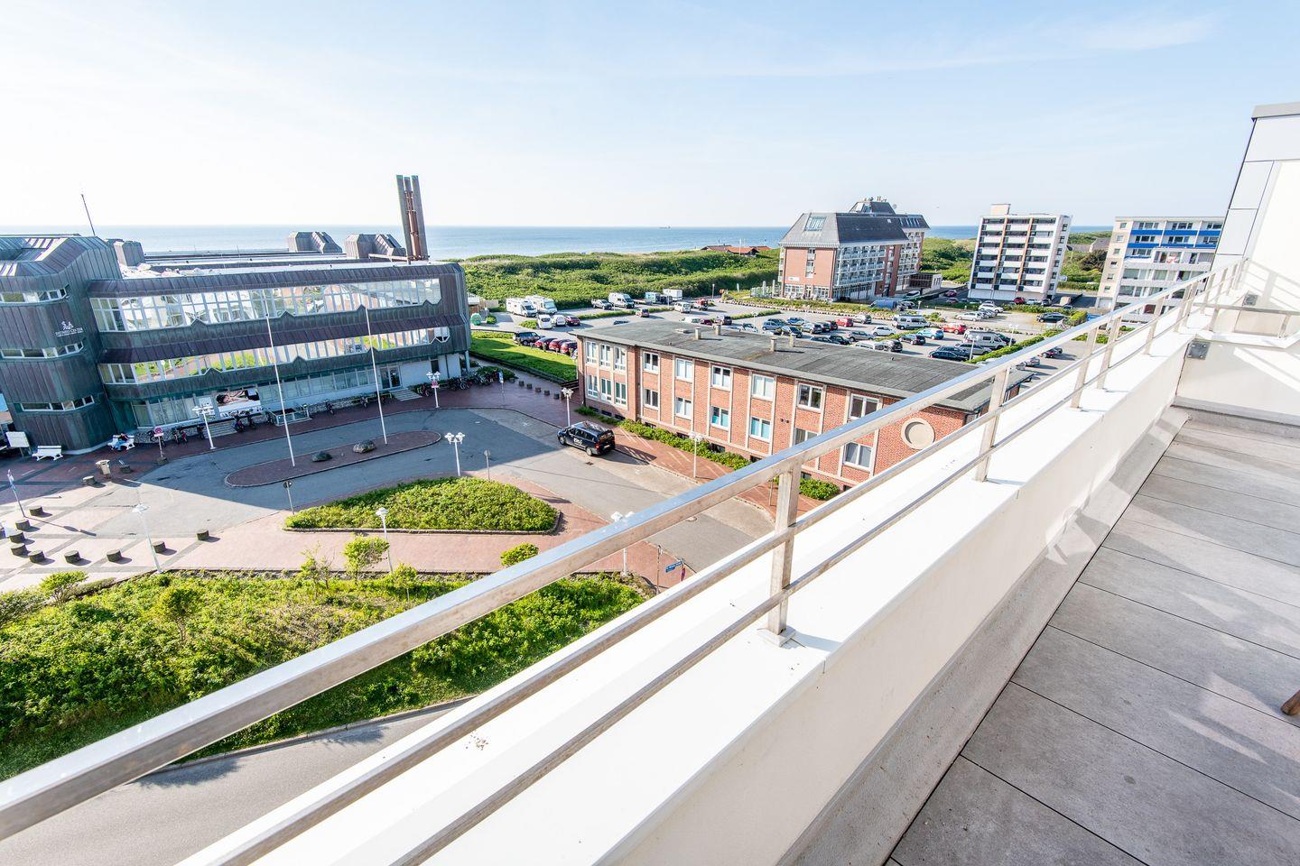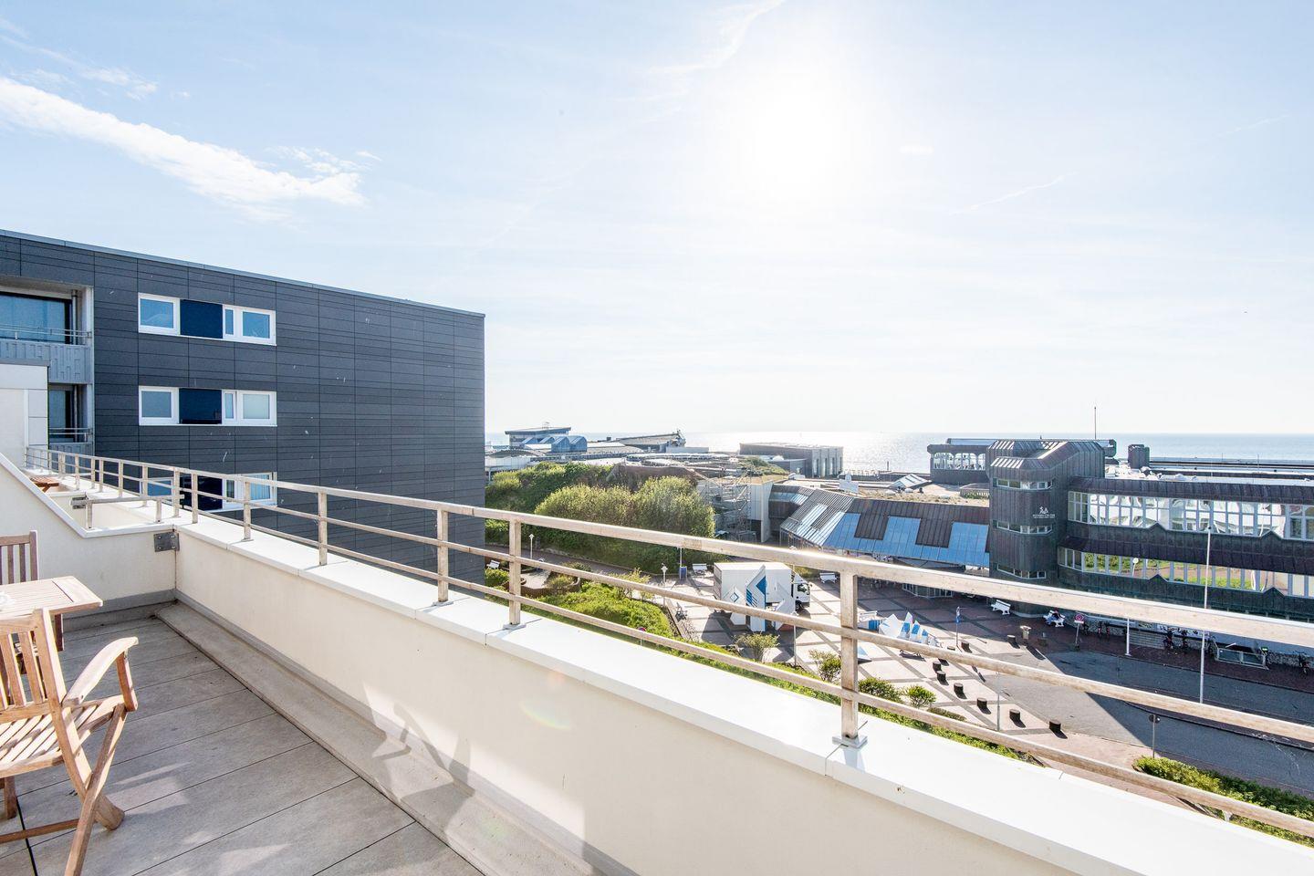 Der lichtdurchflutete Wohn- und Essbereich führt direkt auf die große Dachterrasse und ist mit gemütlichem Mobiliar ausgestattet. Hier können Sie den Sonnenuntergang und den fantastischen Blick auf die Nordsee in vollen Zügen genießen. Die Terrasse ist sowohl vom Wohnzimmer als auch von den Schlafzimmern aus zugänglich und bietet damit allen Gästen ein unvergleichliches Urlaubserlebnis.