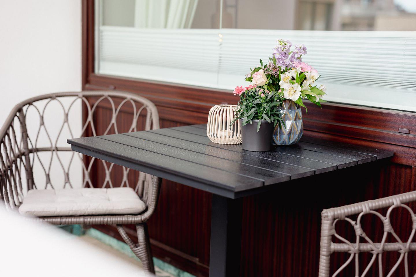 Morgens ein Kaffee auf dem geschützten Balkon, abends ein Glas Wein bei Nordseeluft – hier lässt es sich wunderbar entspannen.