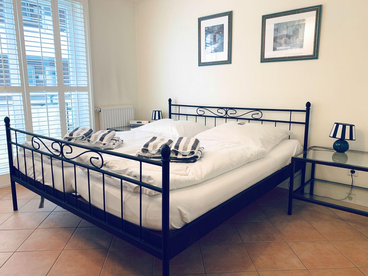 Das Schlafzimmer mit Doppelbett sowie einem grossen Kleiderschrank betreten Sie ebenfalls über den Vorflur. Auch in das Duschbad gelangen Sie vom Vorflur aus.