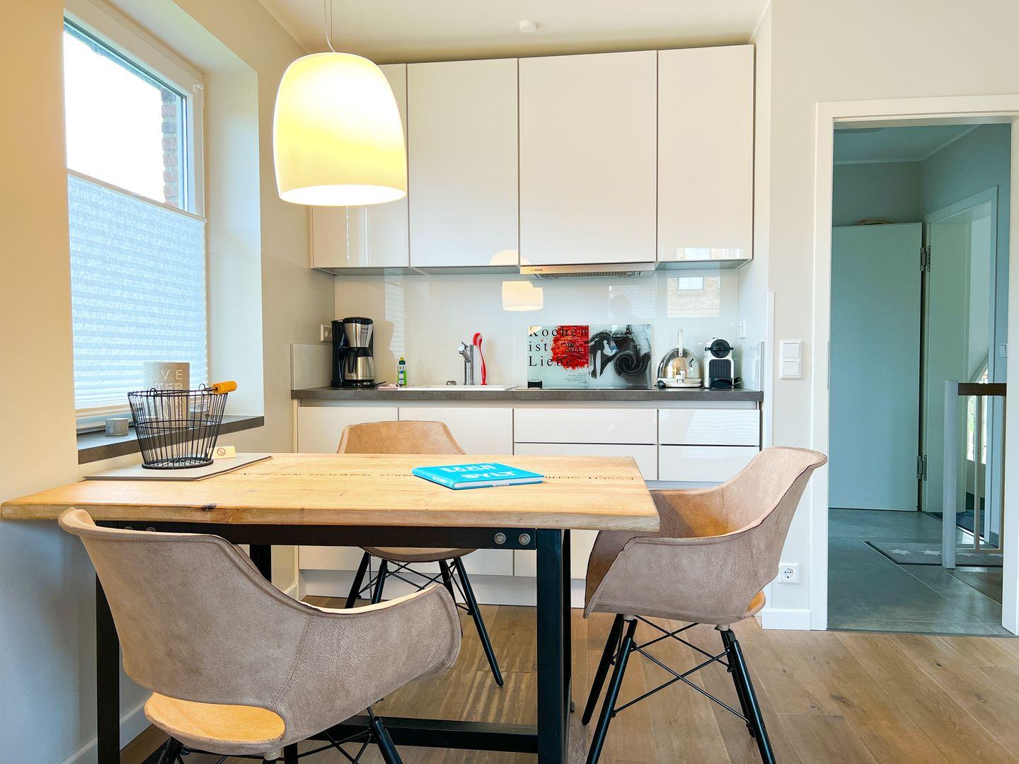 Apartment verfügt über einen Wohn/Essbereich mit offener Küche. In der modernen Küche steht Ihnen ein