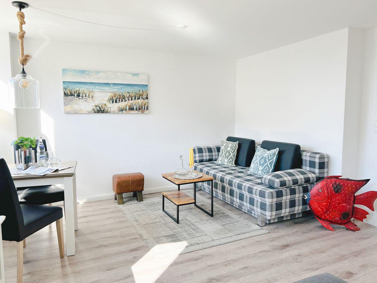 die Wohnungstür.Der Wohnraum ist ausgestattet mit einer gemütlichen