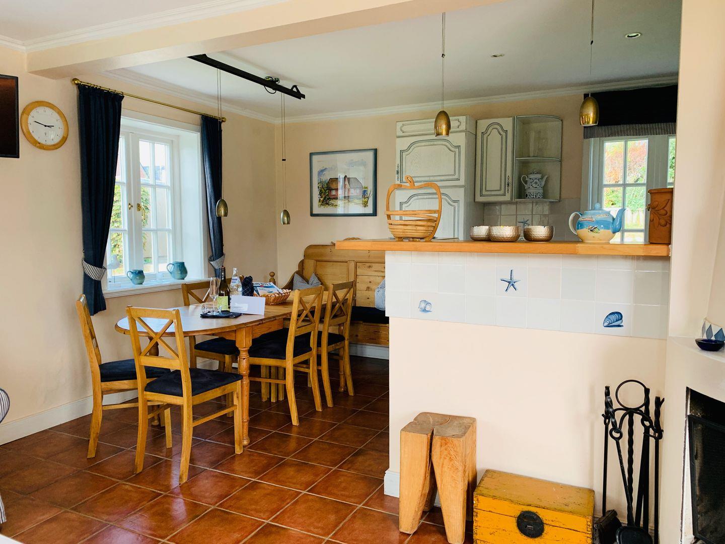 Kamin. An der Essecke vorbei kommen Sie in die gut ausgestattete, offene Küche.