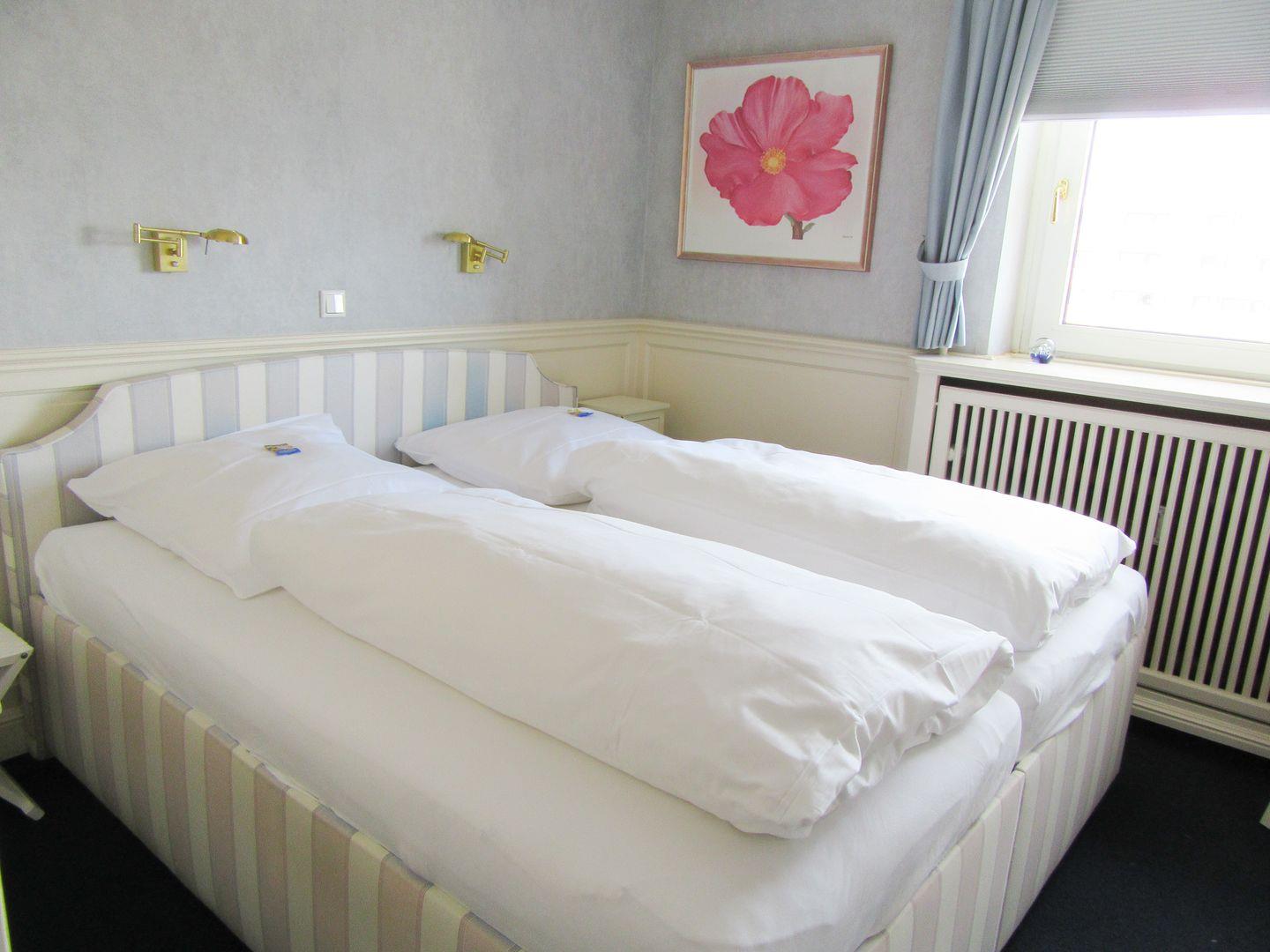 6.Obergeschoss Westbalkon mit kleinem Meerblick Schlafzimmer mit Doppelbett