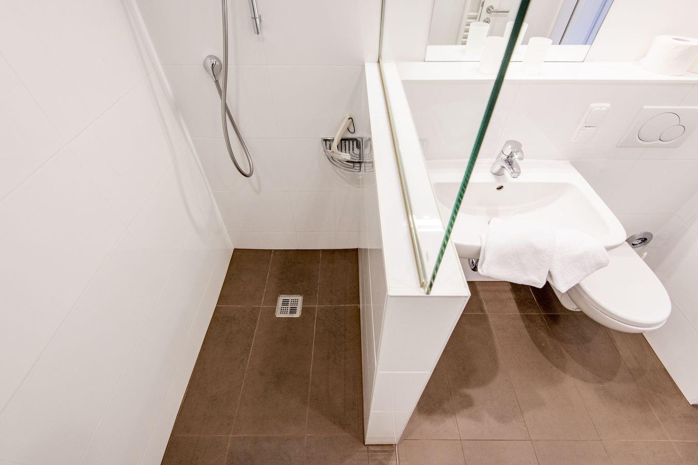 sorgen.Im Badezimmer finden Sie eine ebenerdige Dusche, Waschbecken, WC.Das
