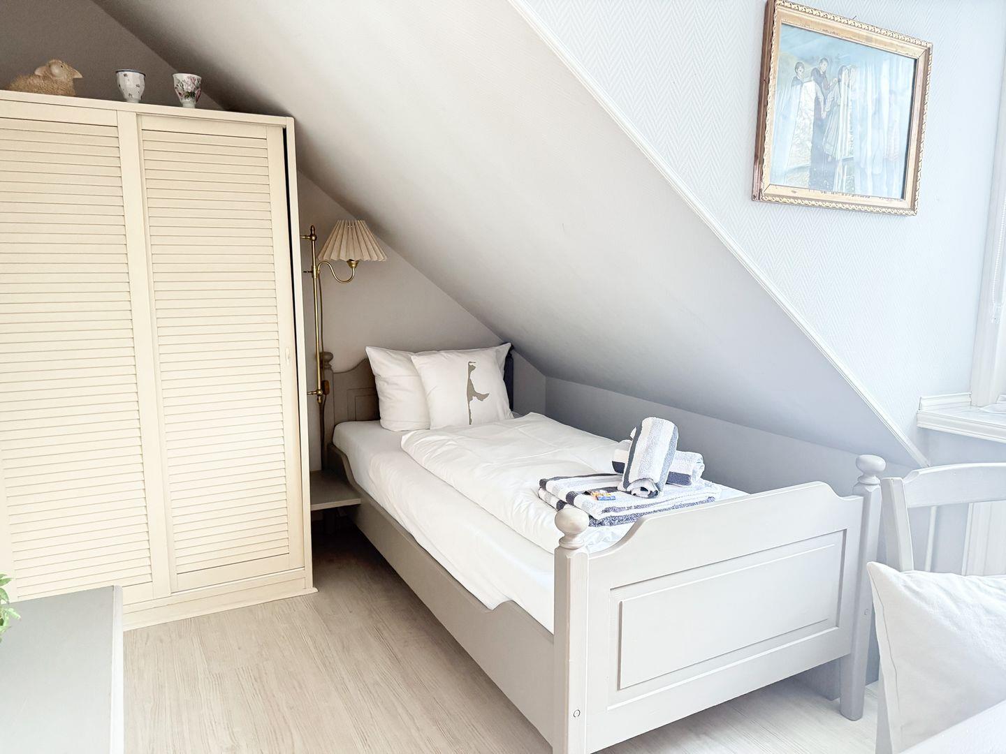 ein Einzelbett. Das Einzelschlafzimmer verfügt zudem über einen eigenen
