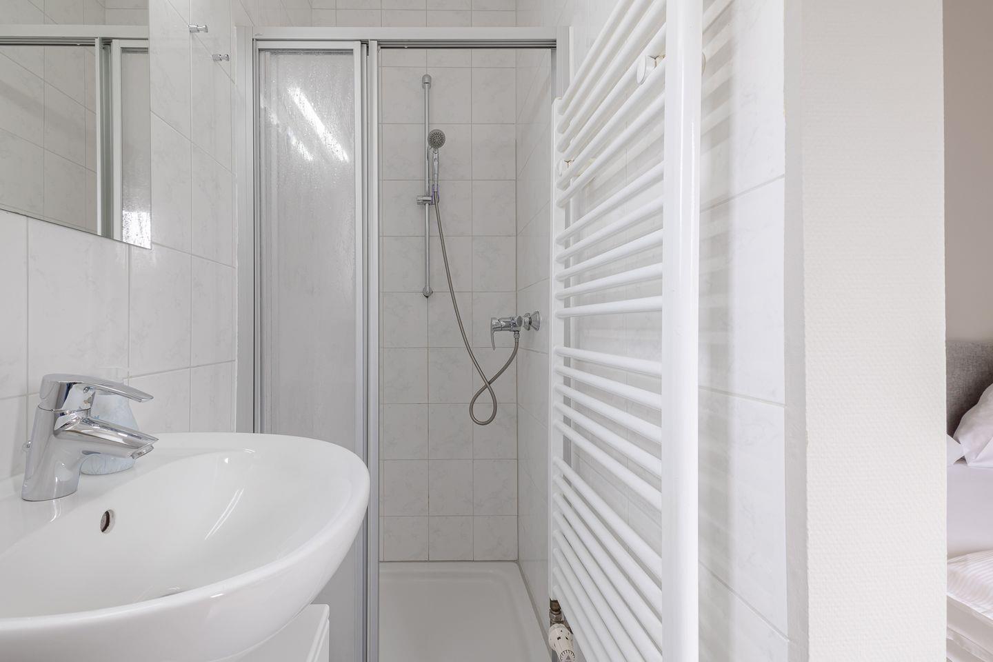Die kleine Terrasse (Südlage) führt direkt in den gemütlichen und in hellen Farben gehaltenen Wohnbereich mit Couch und Essecke. Von dort aus geht es in die kleine, aber gut ausgestattet Küche. Das Schlafzimmer verfügt über ein bequemes Boxspringbett mit angrenzendem Duschbad.