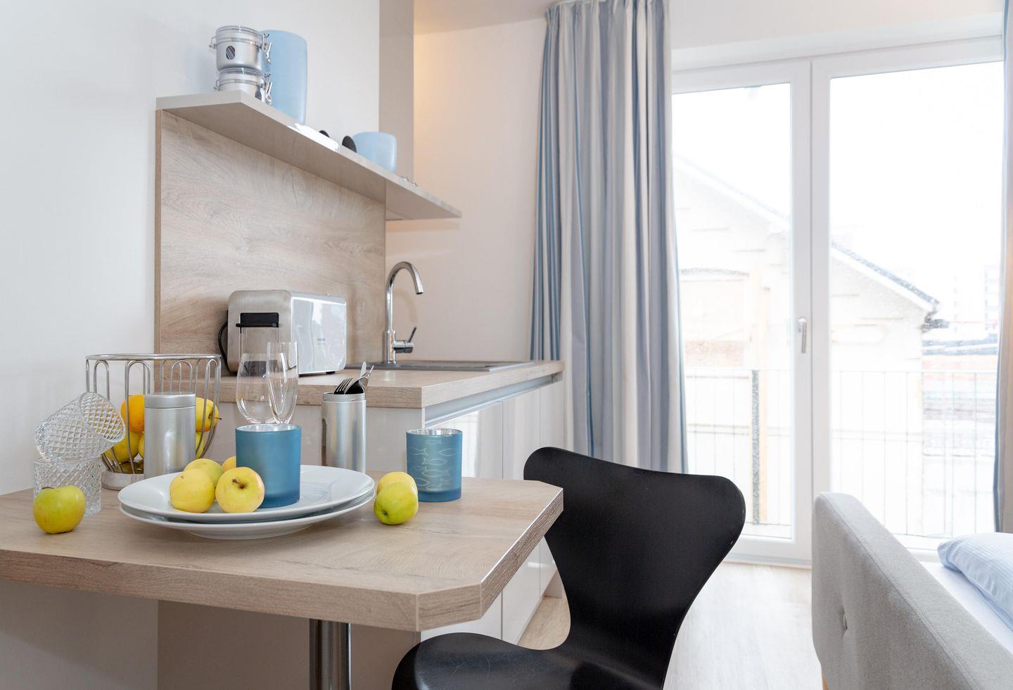 Modernes ca. 24 m² große App. für bis 1-2 Personen mit schönem Südbalkon in stadt- und strandnaher Lage.