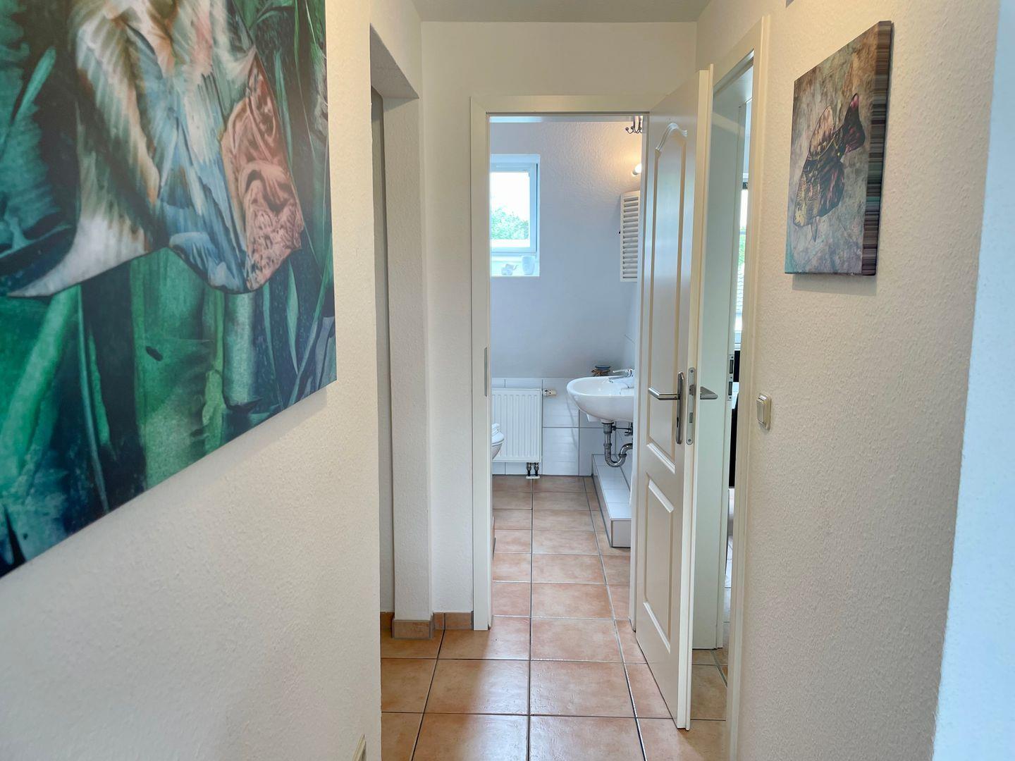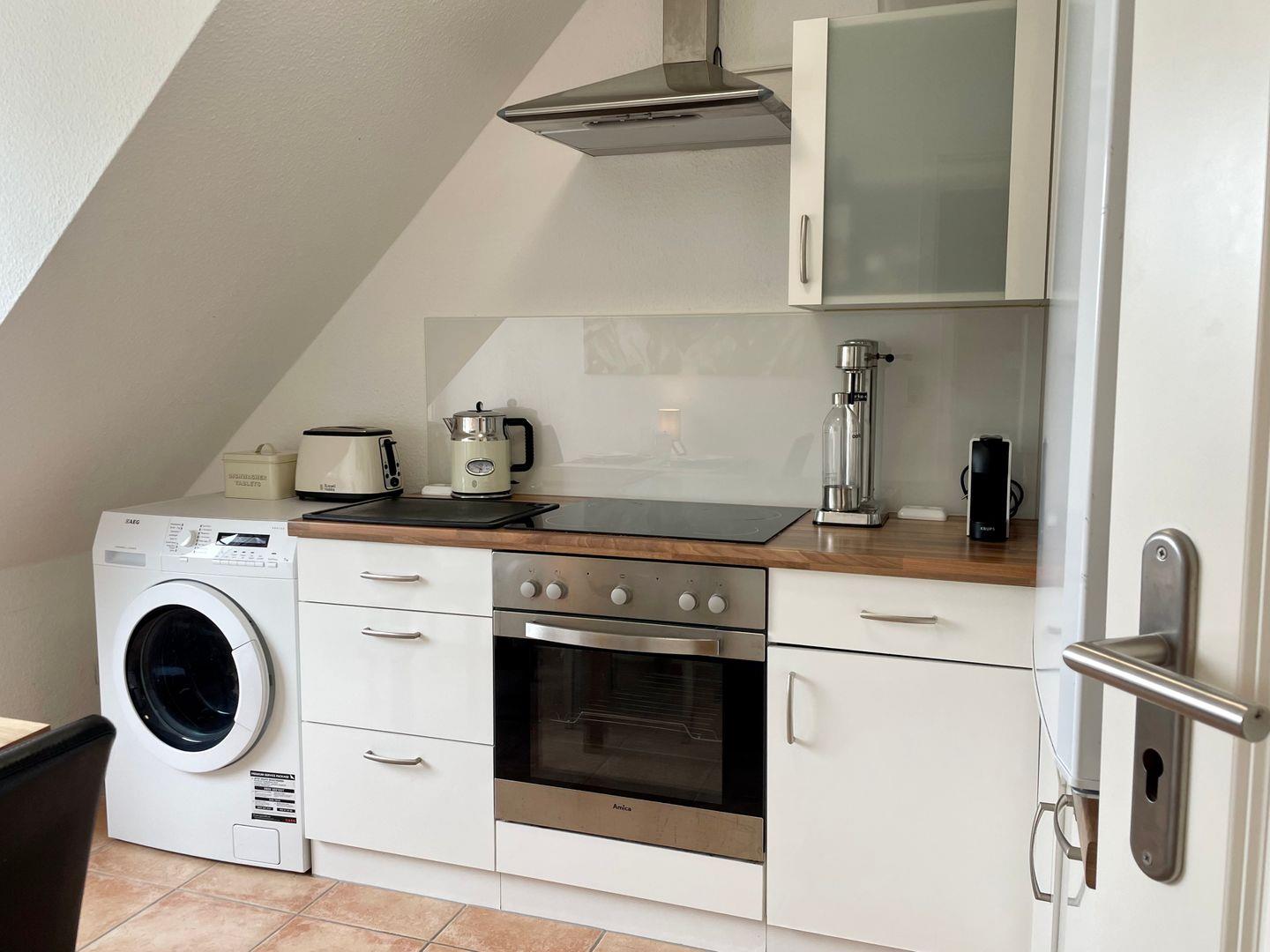 Dieses gemütliche Einzimmerappartement für bis zu 2 Personen befindet sich im 1. Stock und bietet Ihnen eine durchdachte Ausstattung in ruhiger Lage. Die separate Küche ist voll ausgestattet mit Backofen, Cerankochfeld, Essbereich und einem Waschtrockner. Der Wohn- und Schlafbereich mit Doppelbett und großzügiger Couch lädt zur absoluten Entspannung ein. Die Duschbäder sind mit einem Haartrockner ausgestattet. Nutzen Sie gerne die sonnendurchflutete Terrasse neben dem Haus. Kostenloses WLAN und öffentliche Parkmöglichkeiten an der Straße sind vorhanden. Ein kleiner Hund ist auf Anfrage erlaubt.