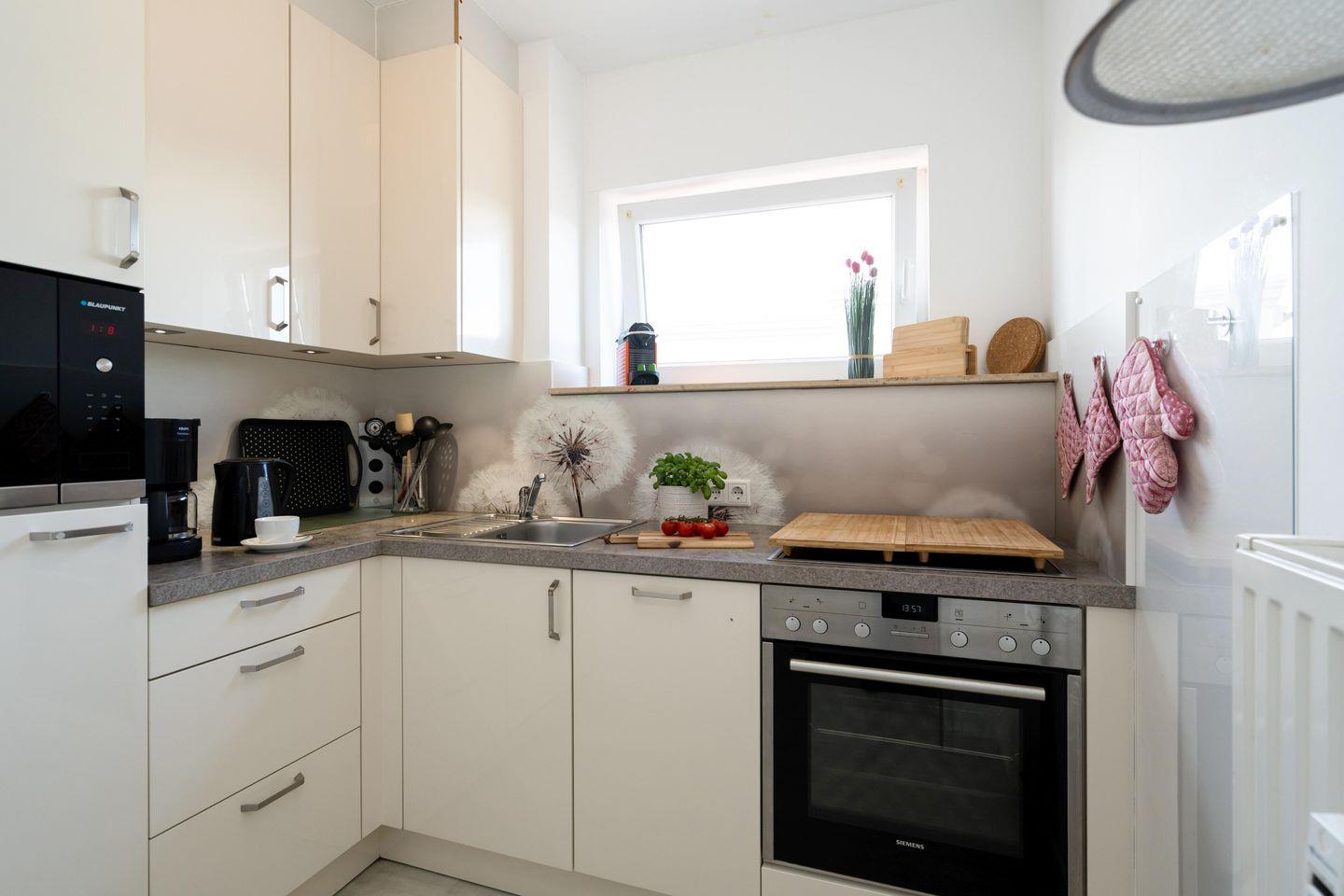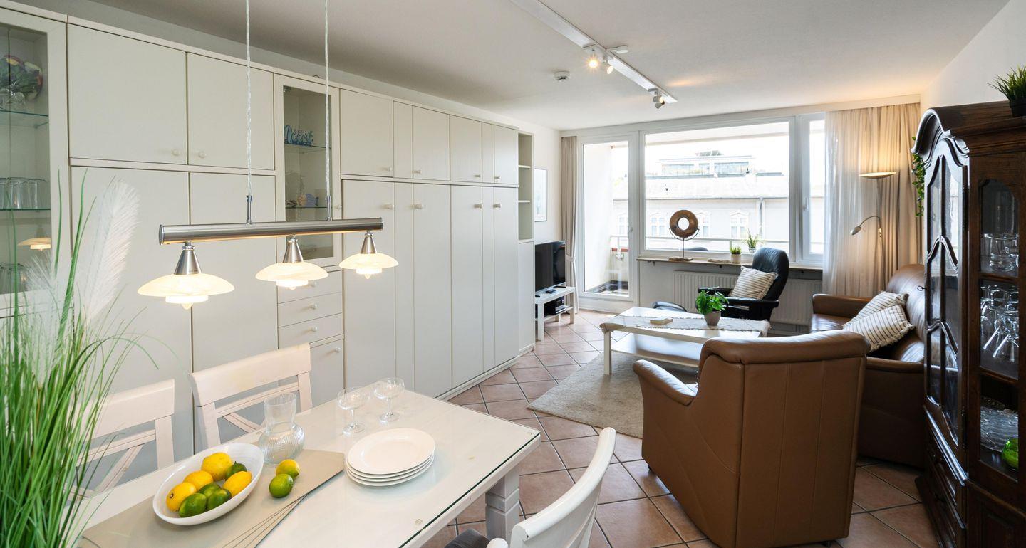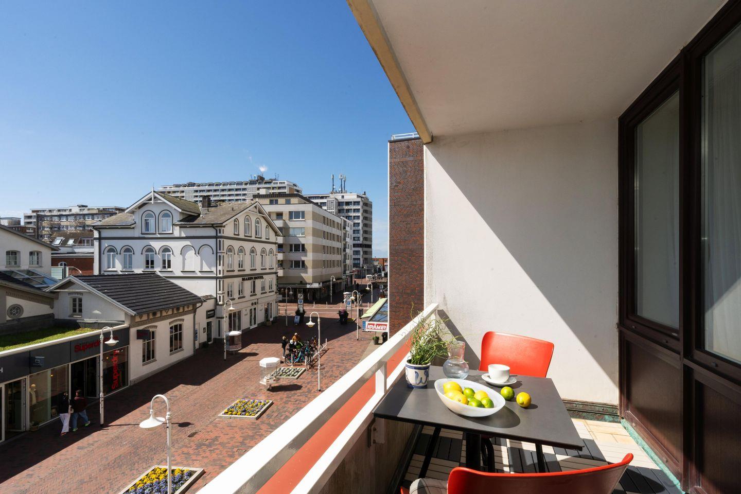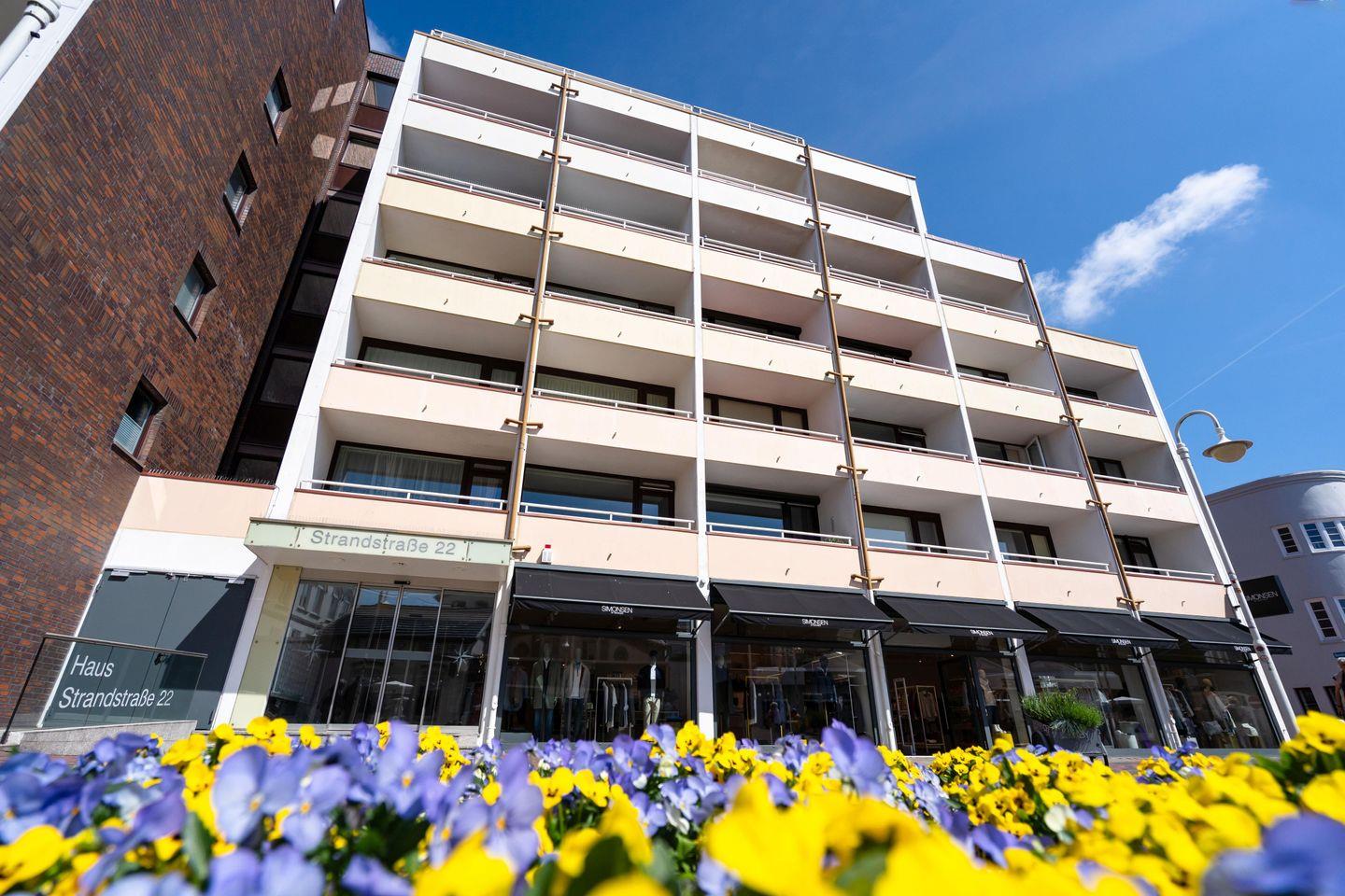 Liebevoll eingerichtete ca. 66 m² große Ferienwohnung für bis zu 4 Personen mit 2 schönen Südbalkonen samt Blick bis zum Meer in stadt- und strandnaher Lage. Inklusive WLAN, zugehörigem Tiefgaragenstellplatz sowie Fahrstuhl.