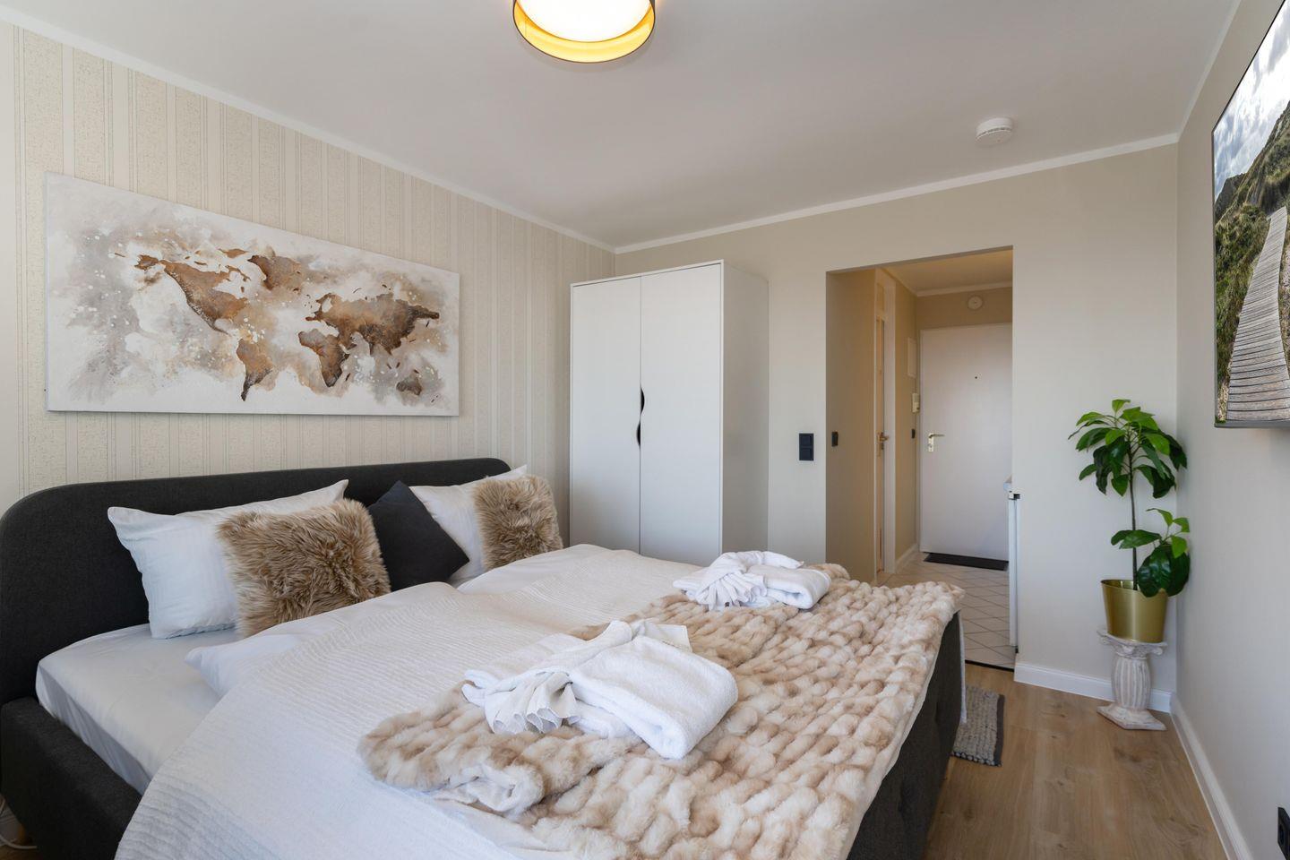Schönes 1-Zimmer App., strandnah, Balkon, WLAN. Haustiere erlaubt.