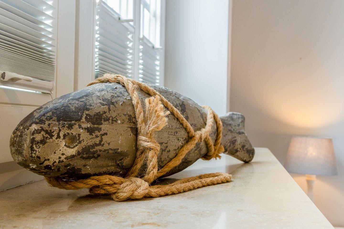 Hier ist genug Platz für das Wesentliche und so teilen sich Couch, Esstisch und Doppelbett ganz harmonisch einen Raum, in dem es an Gemütlichkeit trotzdem nicht mangelt. Die signalrote Küchenzeile hat es sich in einer kleinen Nische bequem gemacht und von hier geht es auch auf die Terrasse, die in den Sommermonaten mit einem Strandkorb im Grünen punkten kann.