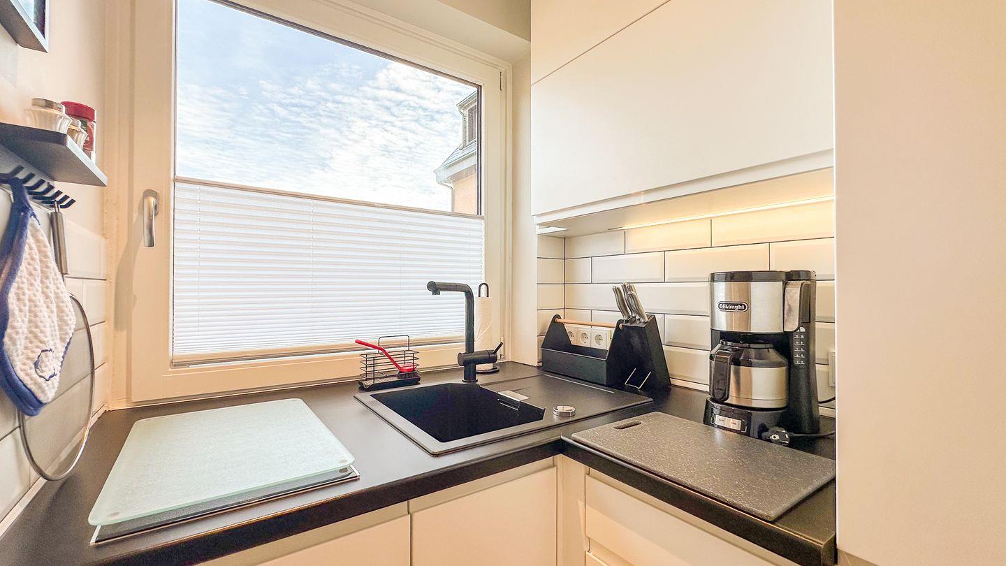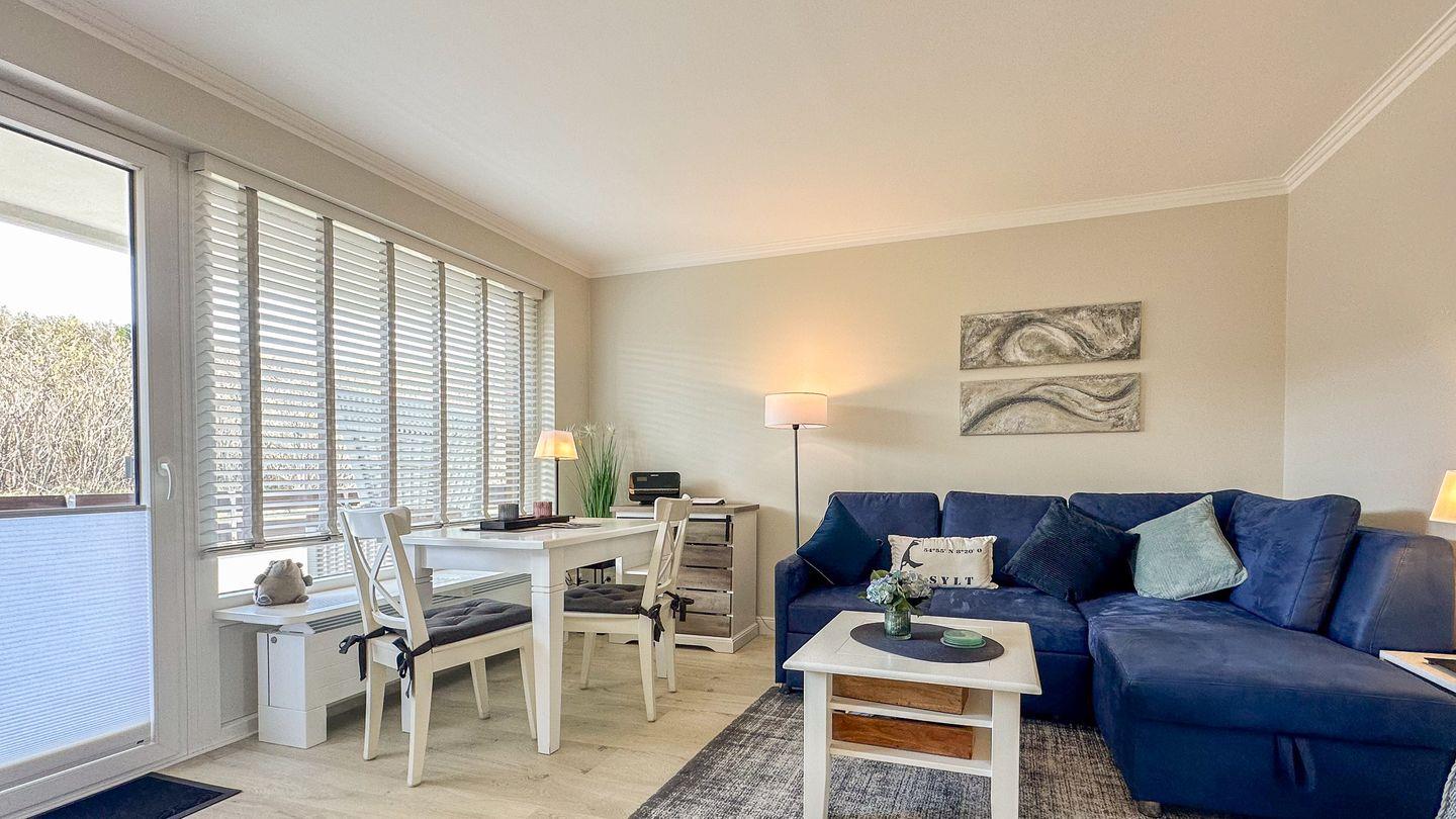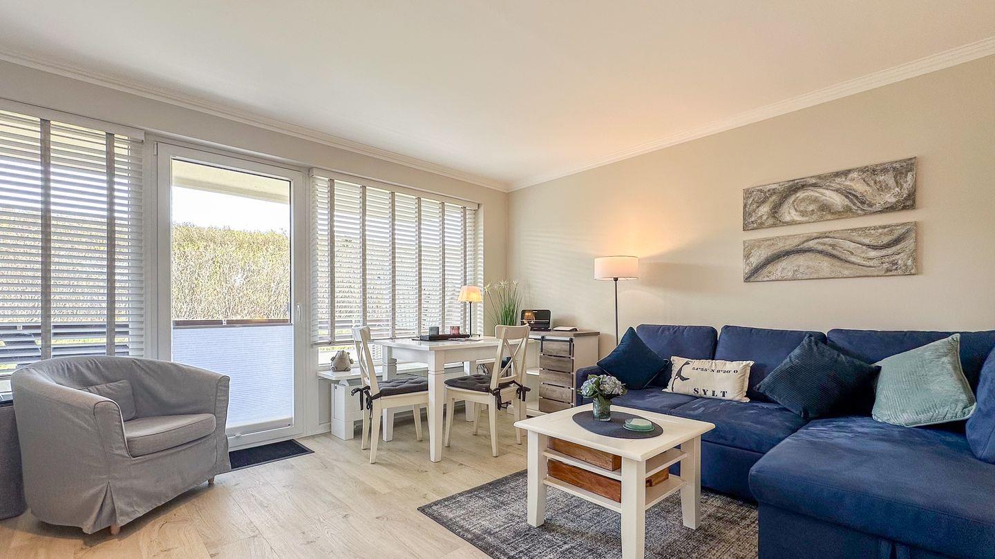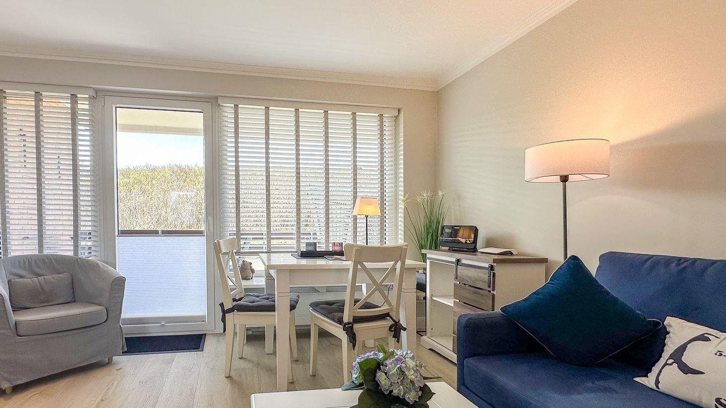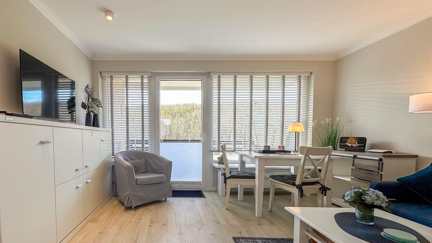 Das Meer gleich hinter der Düne, nur eine Wellenlänge entfernt und beim Sitzen auf der Terrasse dem Rauschen des Ozeans lauschen - das pure Glück! Aber auch das Innere des Appartements Flow sorgt für Glücksgefühle: Die gemütliche Couch im Wohnbereich lädt zu einer Blaupause ein, helle Farben und bunte Kunstwerke lassen den Geist zur Ruhe kommen. Für wen Glück durch den Magen geht, der zaubert in der kleinen aber bestens ausgestatteten Küche ein leckeres Essen.
