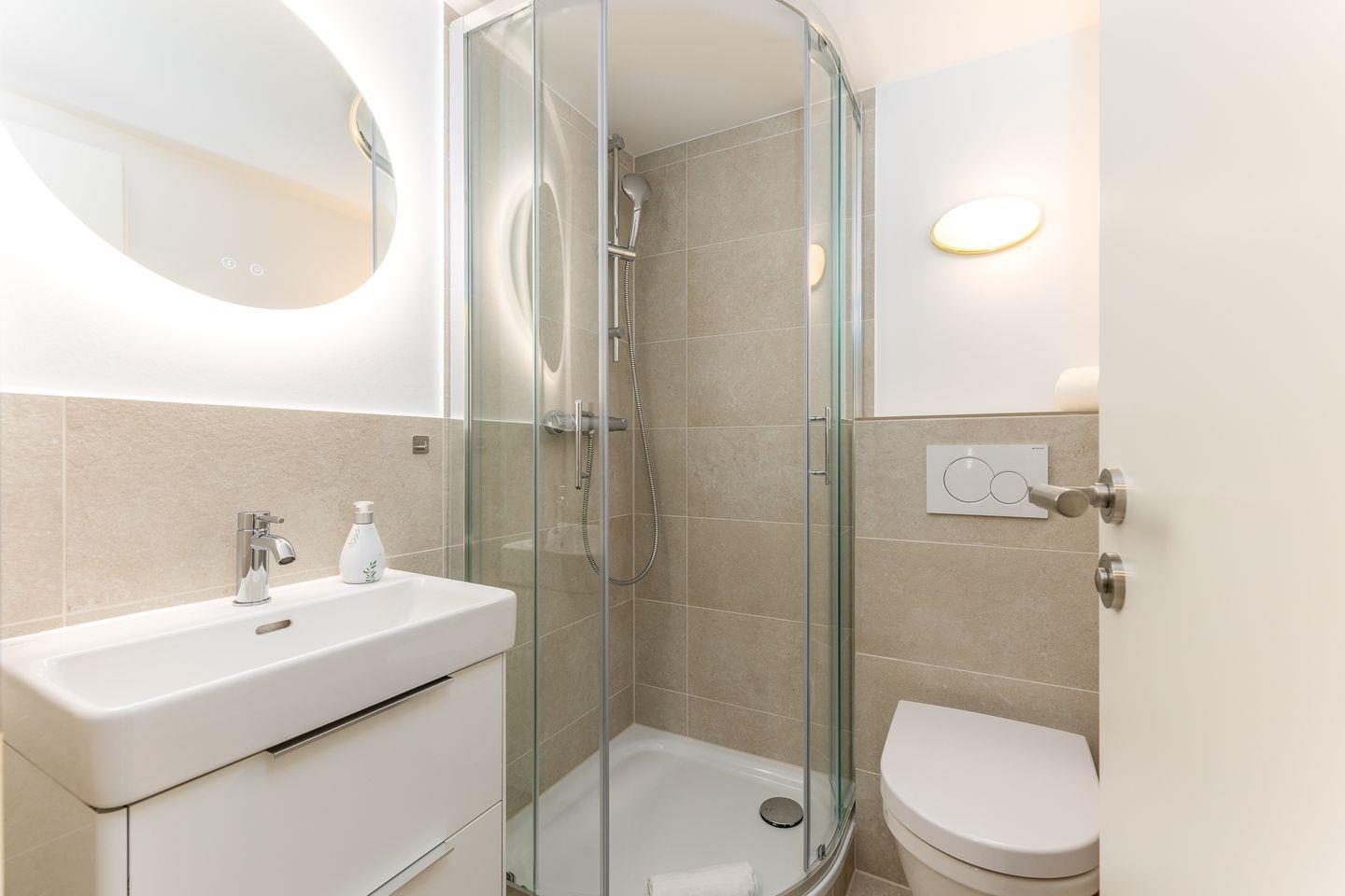 Kein Schnickschnack nur ein paar ausgewählte maritime Accessoires lenken den Blick auf das Wesentliche, in diesem Fall das gemütliche Doppelbett (1,60 x 2,00m) samt seiner rückenfreundlichen Matratze. Dazu noch ein Einbauschrank, der genug Platz für die Urlaubsgarderobe bietet sowie ein kleiner Tisch mit Stühlen. In dem modernen Duschbad werden mit Sand und Weiß sanfte Töne angeschlagen und der Hightech-Spiegel lässt ganz bestimmt jeden strahlen. Zusammengefasst das perfekte Zimmer für eine kleine Auszeit auf Sylt!