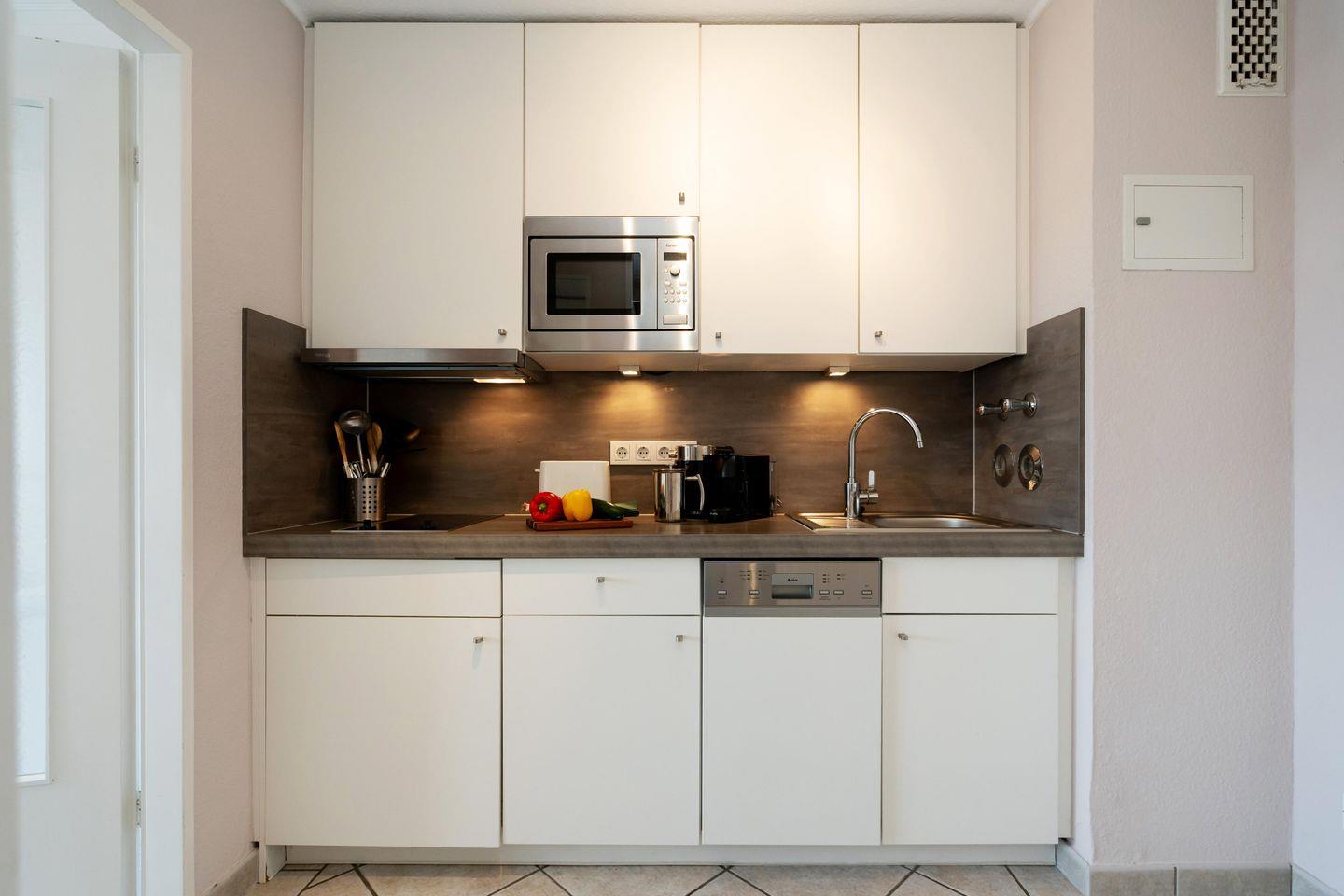 Das moderne ca. 30 m² große 1-Zimmer App. "Küstenmuschel" für 1-2 Personen befindet sich im 3.OG und bietet Ihnen eine gute Ausstattung in direkter Stadt- und Strandlage (Landseite), unweit entfernt vom Strandübergang der Westerländer Promenade. Die Küchenzeile inkl. Cerankochfeld, Kühlschrank, Mikrowelle und Geschirrspüler ist gut ausgestattet. Der angrenzende Wohn- und Schlafbereich mit Podestdoppelbett (160x200 cm) und Essbereich lädt zur Entspannung ein. Das Vollbad inkl. Badewanne samt Duschvorrichtung ist mit einem Haartrockner ausgestattet. Nutzen Sie gerne den sonnendurchfluteten Frühstücksbalkon inkl. Balkonmöbel. Ein Haus internes WLAN sowie ein Fahrstuhl sind vorhanden. Haustiere sind willkommen. Im Kellergeschoss stehen Ihnen Waschmaschinen und Wäschetrockner (gebührenpflichtig) zur Verfügung.