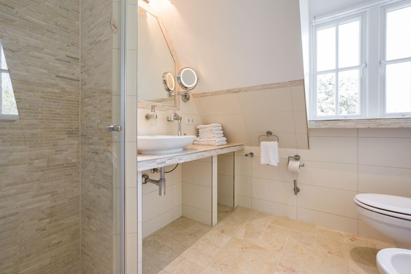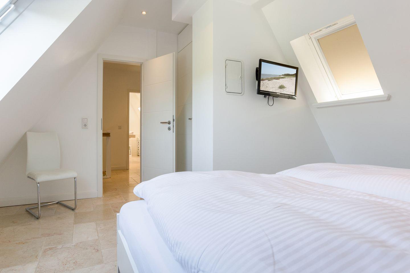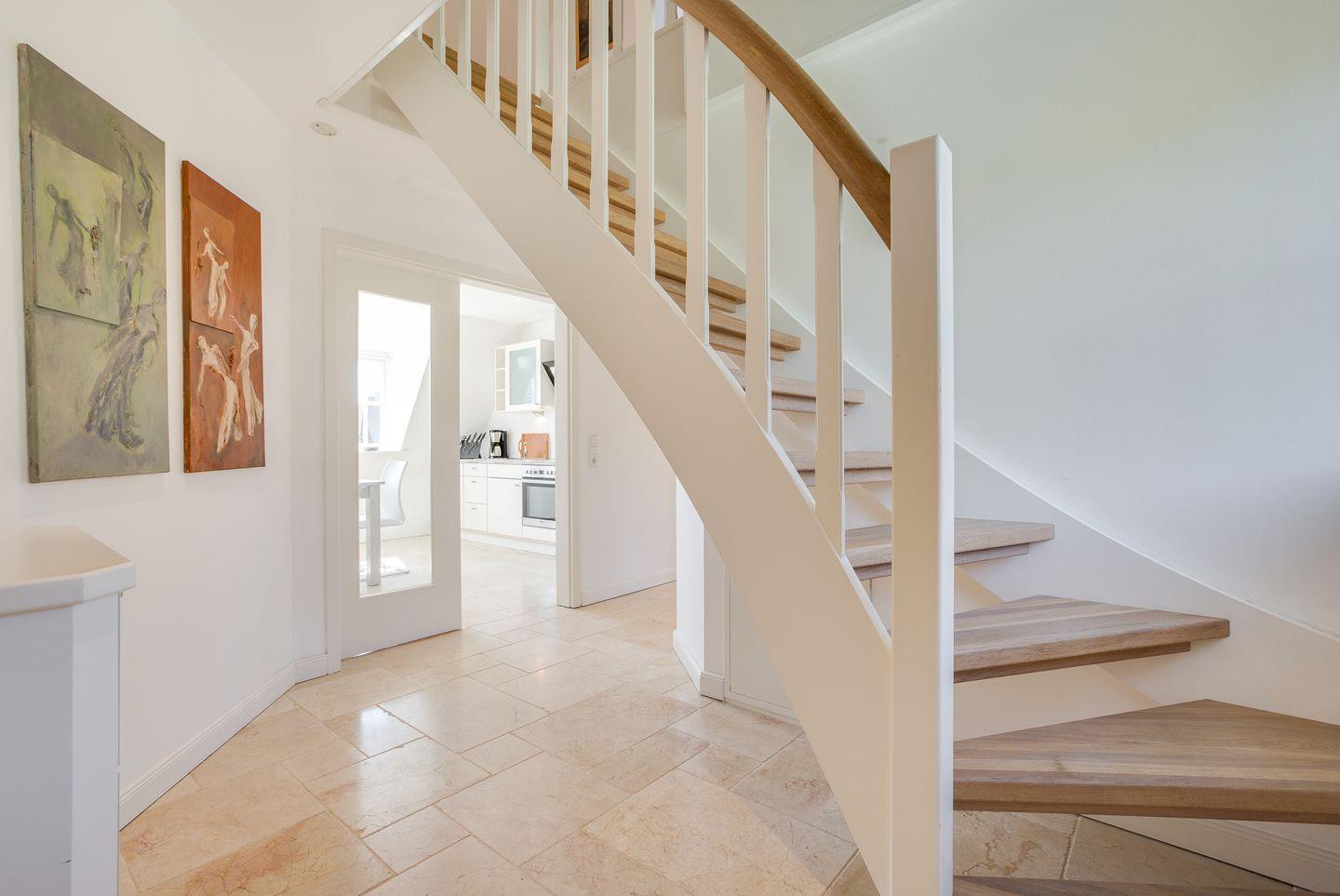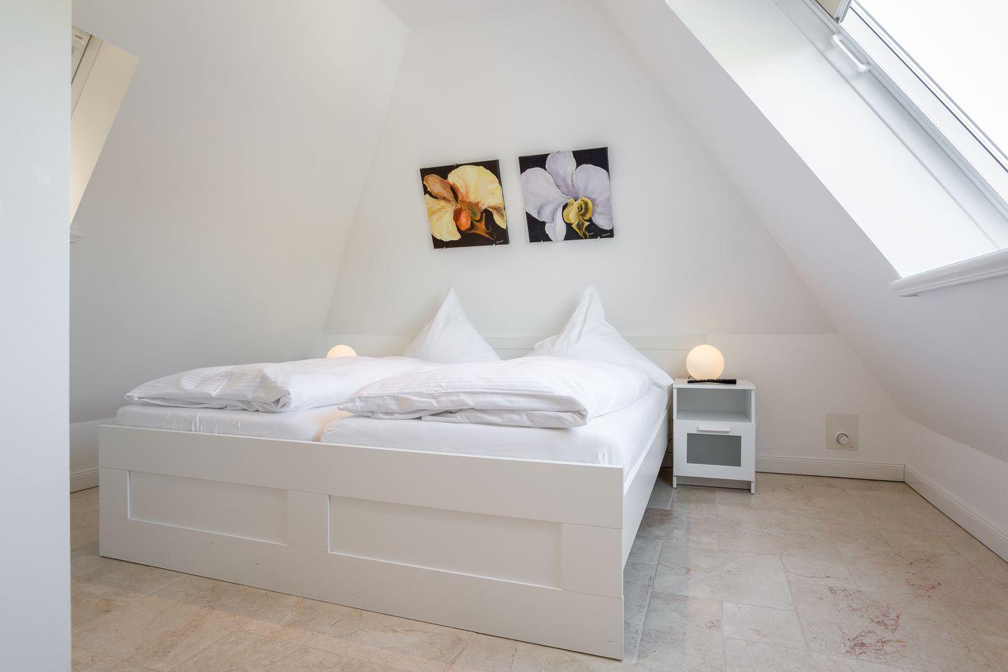 Diese familienfreundliche ca. 130 m² große Ferienwohnung für bis zu 6 Personen befindet sich in direkter Strandlage und verläuft über zwei Ebenen. "White Pearl OG" bietet Ihnen eine luxuriöse Ausstattung und absoluten Komfort. Die offene, moderne Küche samt Geschirrspüler ist voll ausgestattet und lädt zum gemeinsamen Kochen ein. Genießen Sie entspannte Urlaubstage im angrenzenden Wohn- und Essbereich. Das Obergeschoss verfügt über zwei Doppelschlafzimmer sowie ein großzügiges Duschbad. Im Dachgeschoss erwarten Sie ein weiteres Doppelschlafzimmer sowie ein Badezimmer samt Dusche und Badewanne. Die kleine Galerie bietet Ihnen die Möglichkeit eines Arbeitsplatzes. Alle Wohnräume sind durch Flat TVs ausgestattet. Nutzen Sie die schöne Terrasse und den angrenzenden Garten mit Gartenmöbeln und einem Strandkorb (in der Saison). Absolute Entspannung bietet Ihnen der gemeinschaftliche Wellnessbereich (2 Parteien), ausgestattet mit einer großzügigen Sauna, Saunadusche und TV. Das Ferienhaus verfügt über WLAN, eine zugehörigen PKW-Stellplatz vor dem Haus, eine Waschmaschine sowie einen Wäschetrockner. Haustiere sind erlaubt. Genießen Sie tagsüber den schönen Ort Westerland sowie die Insel Sylt und lassen Sie den Abend mit der Familie gemütlich am Kamin ausklingen.