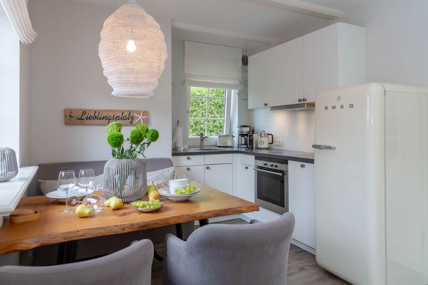 Die voll ausgestattete Küche bietet Ihnen die Möglichkeit, Ihre Lieblingsgerichte zuzubereiten. Sie finden dort alles Wichtige wie eine Nespresso-Maschine für den perfekten Kaffee am Morgen, einen Herd, einen Backofen, einen Kühlschrank, einen Toaster und viele Küchenutensilien. Der Essbereich mit einem Esstisch ist der ideale Ort, um gemeinsam zu speisen oder einfach einen Drink zu genießen.