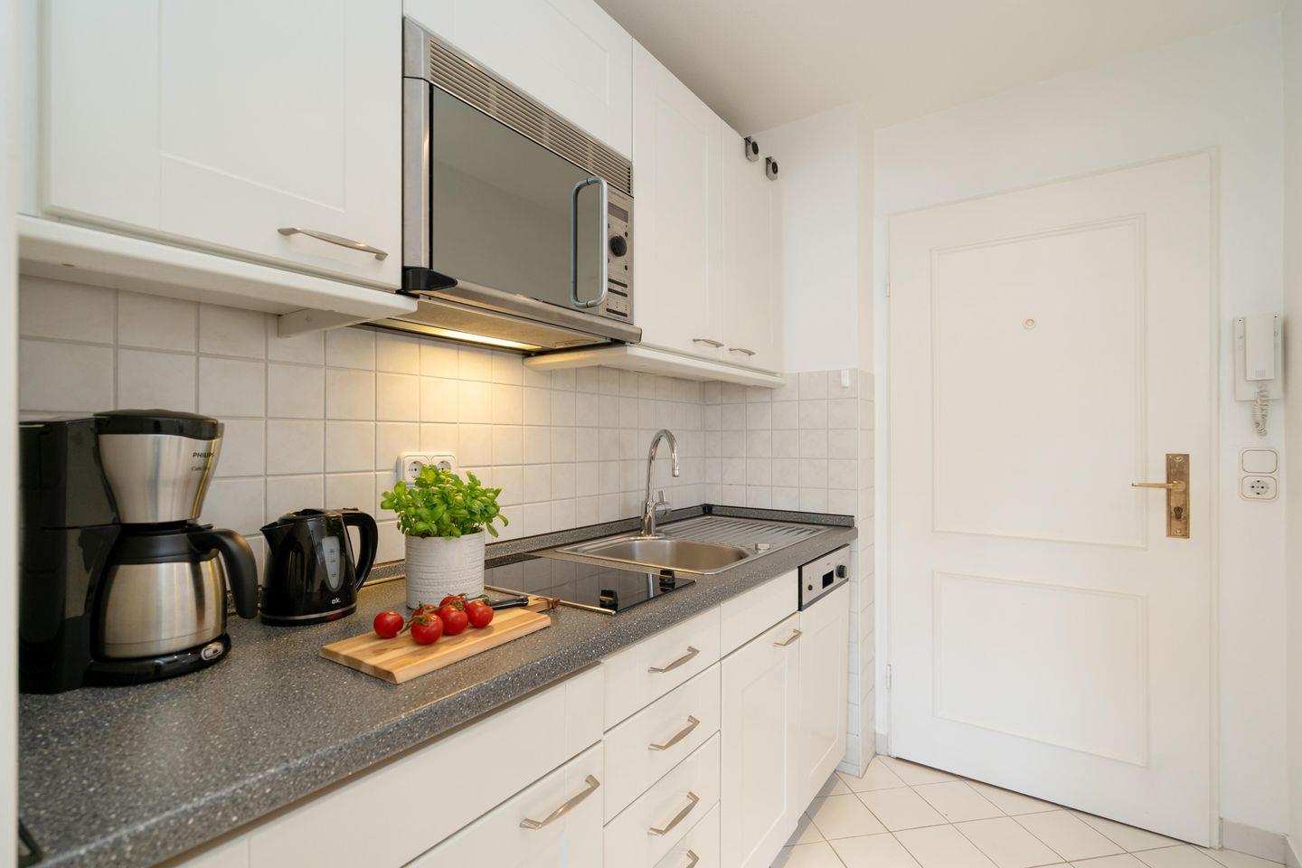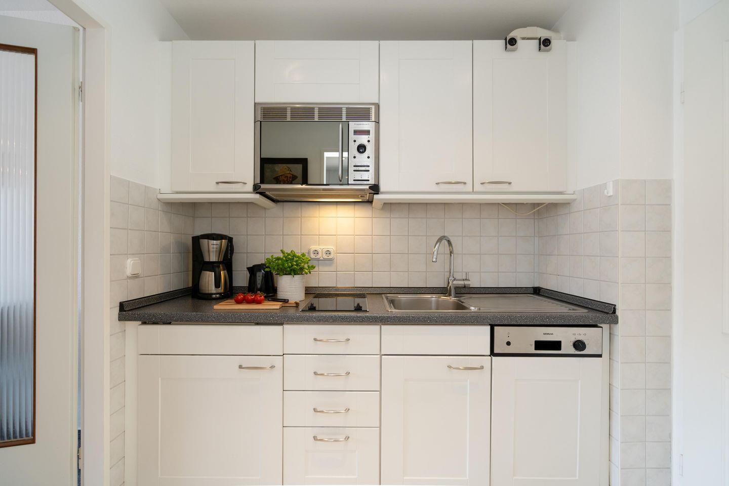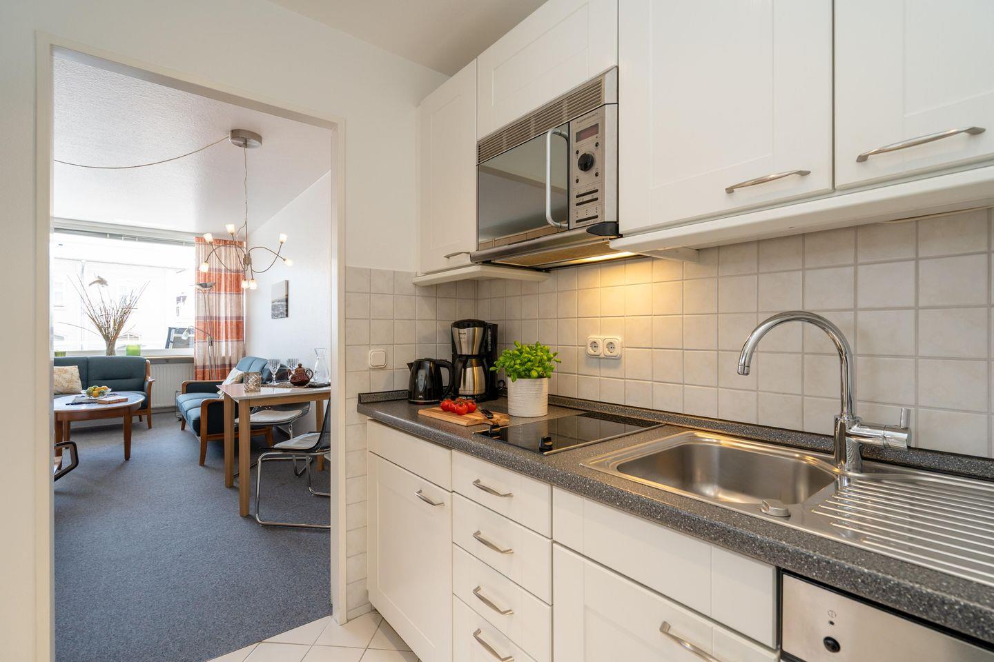 Gemütliche ca. 34 m² große Ferienwohnung für bis zu 2 Personen mit schönem Südbalkon in stadt- und strandnaher Lage. Inklusive WLAN, zugehörigem Tiefgaragenstellplatz sowie Fahrstuhl.