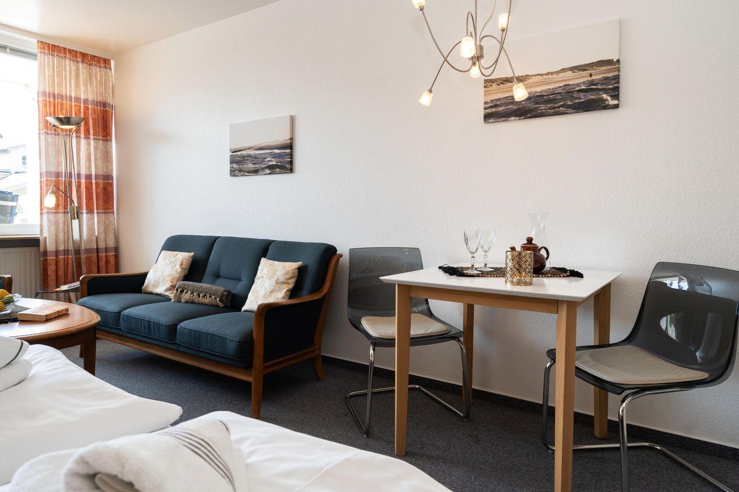 Gemütliches, zentrales 1-Zimmer App., strandnah, Balkon, Stellplatz, WLAN.