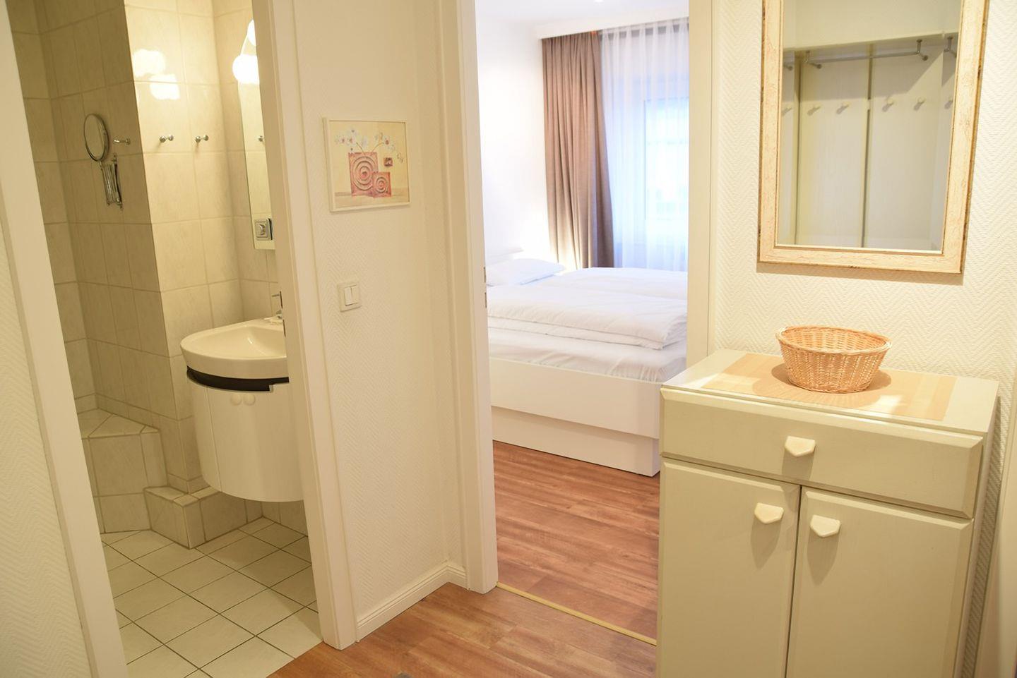 Das gemütliche 2-Zimmer-Appartement im Appartementhaus Nordland (ca. 40 m²) ist ideal für bis zu 4 Personen. Das Wohnzimmer ist mit einer Schlafcouch (120 x 160 cm), einer Essecke und Kabel-TV ausgestattet. Im Schlafzimmer befindet sich ein Doppelbett (180 x 200 cm). Die separate Küche ist gut ausgestattet, und das Badezimmer bietet ein Duschbad und WC. Das Appartementhaus bietet einen Wellnessbereich mit Schwimmbad, Sauna und Solarium (Nutzung gemäß Hausordnung). Die Nutzung des Wellnessbereichs bleibt jederzeit vorbehalten. Der Appartementbereich hat einen Balkon in südlicher Ausrichtung, jedoch keinen eigenen Parkplatz. Ein Abstellraum für Fahrräder ist vorhanden, jedoch ohne garantierten Stellplatz. Ein Fahrstuhl im Haus sorgt für Barrierefreiheit. Haustiere sind nicht gestattet. Zusätzlich stehen ein Trockner und eine Waschmaschine im Haus zur Verfügung, deren Nutzung mit Münzzähler erfolgt.