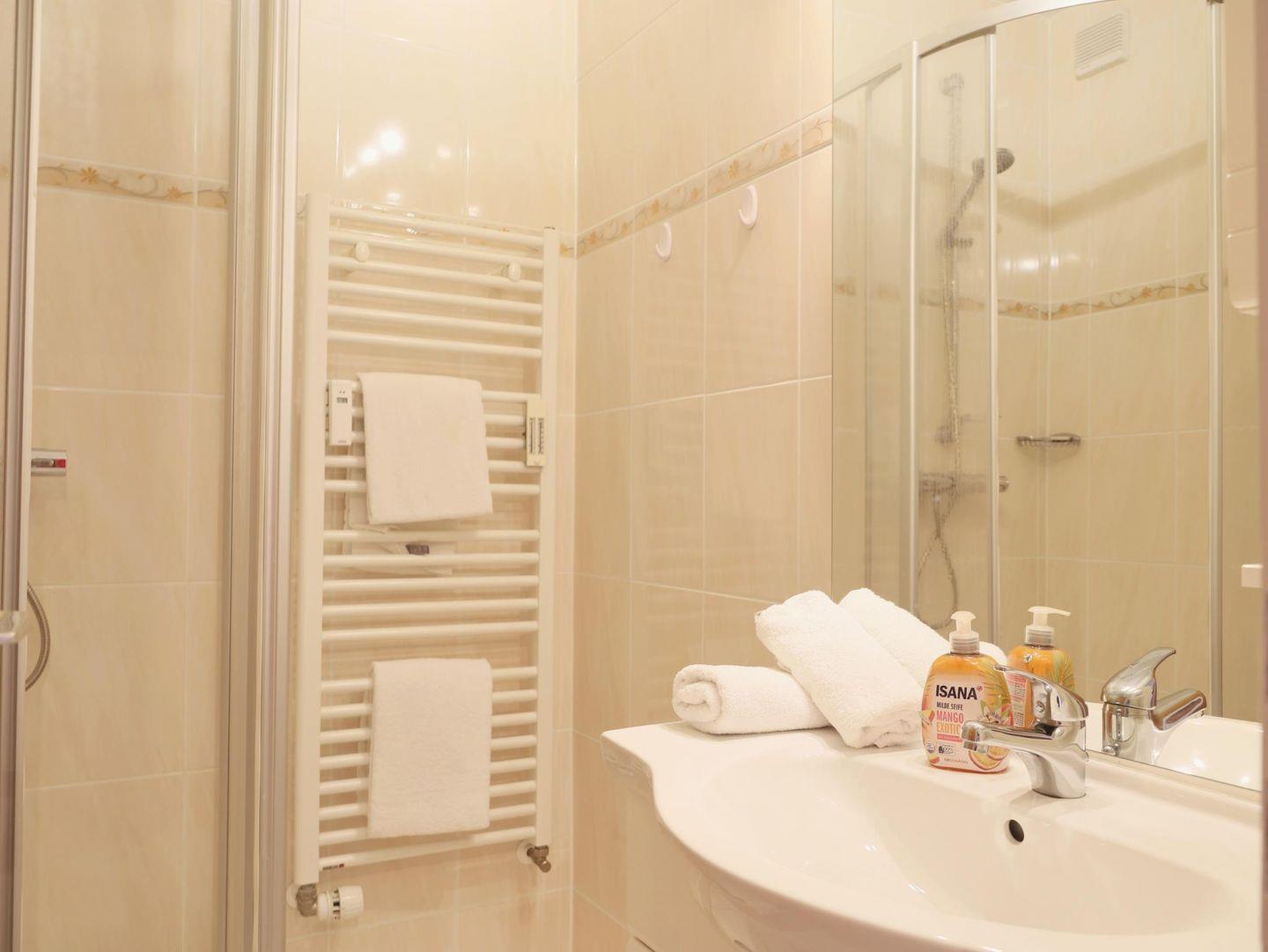 Dieses gemütliche 2-Zimmer-Appartement (ca. 40 m²) in Westerland bietet Platz für bis zu 4 Personen. Das Schlafzimmer ist mit einem Doppelbett (160 x 200 cm) und höhenverstellbarem Kopfteil ausgestattet, das Wohnzimmer verfügt über ein Schlafsofa (140 x 200 cm), eine Essecke und Kabel-TV. Die separate Küche ist gut ausgestattet, und das Badezimmer wurde mit einem neuen Duschbad und WC modernisiert. Das Appartementhaus bietet Gästen ein Hallenschwimmbad, eine Sauna und ein Solarium. Die Nutzungsmöglichkeiten des Wellnessbereiches (Schwimmbad, Sauna, etc.) sind durch die Hausordnung geregelt und unterliegen jederzeit der Verfügbarkeit. Für Ihre Wäsche gibt es einen Trockner und eine Waschmaschine (gegen Gebühr), und ein kostenfreier Stellplatz für Ihr Fahrzeug ist ebenfalls vorhanden. Ein Abstellraum für Fahrräder kann genutzt werden, jedoch ohne garantierten Stellplatz. Der Fahrstuhl sorgt für bequemen Zugang zur Wohnung. Haustiere sind nicht gestattet.
