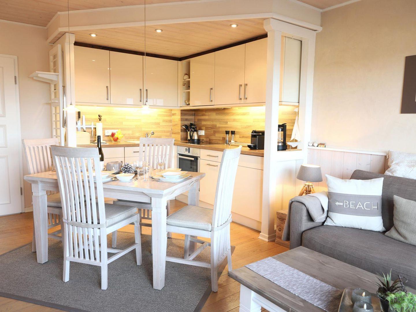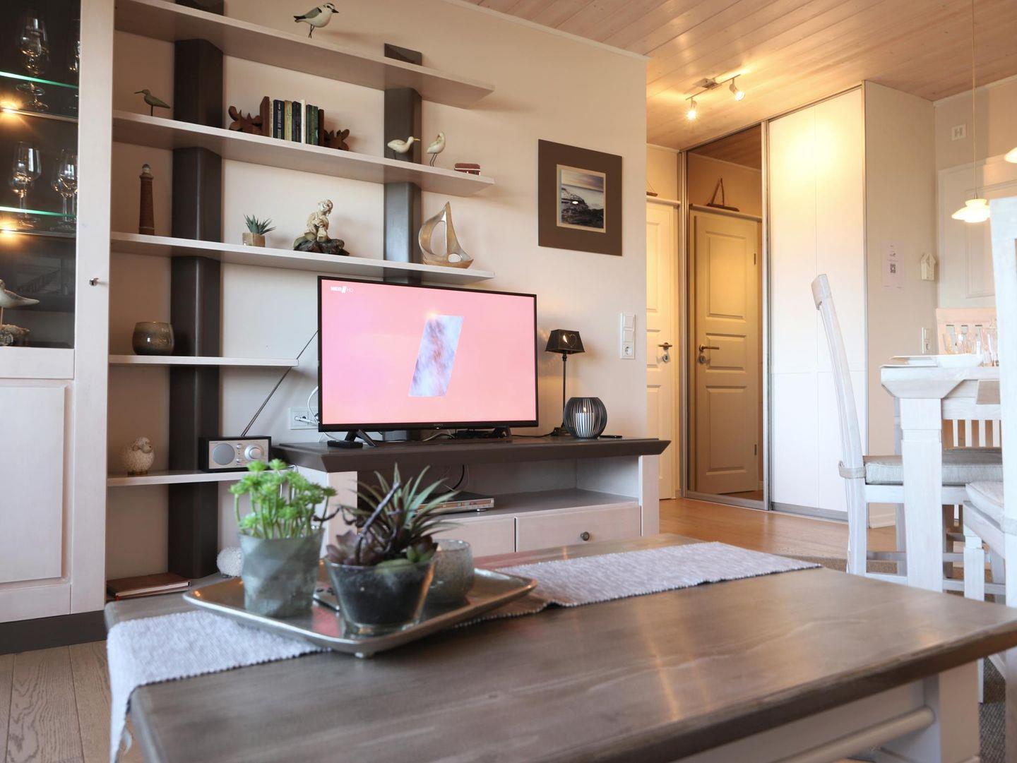 Dieses wunderschöne 2-Zimmer-Appartement (ca. 40 m²) befindet sich in der 4. Etage eines Appartementhauses mit Hallenschwimmbad, Sauna und Solarium. Das Appartement bietet Platz für bis zu 2 Personen und verfügt über ein Wohnzimmer, ein separates Schlafzimmer sowie eine offene Küche mit Geschirrspüler. Der Essplatz im Wohnzimmer lädt zum Verweilen ein. Das moderne Badezimmer ist mit einer Duschkabine und WC ausgestattet. Vom Balkon aus können Sie bei gutem Wetter das Wasser sehen. Die Wohnung ist eine Nichtraucherwohnung und bietet W-Lan (offenes Netzwerk) sowie ein Telefon. Der Nord-Balkon ist mit einem Gartentisch und Stühlen ausgestattet, und der kostenfreie Stellplatz sorgt für eine bequeme Parkmöglichkeit. Ein Abstellraum für Fahrräder ist ebenfalls vorhanden, jedoch ohne garantierten Stellplatz. Der Fahrstuhl im Haus sorgt für einen bequemen Zugang zur Wohnung. Trockner und Waschmaschine stehen gegen Gebühr zur Verfügung. Haustiere sind nicht gestattet.Die Nutzung des Wellnessbereichs (Schwimmbad, Sauna, etc.) im Haus Nordland ist durch die Hausordnung geregelt und bleibt jederzeit vorbehalten.