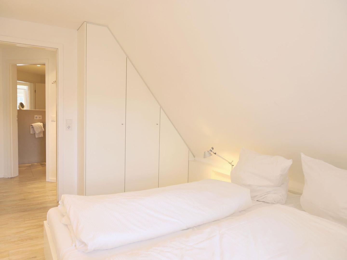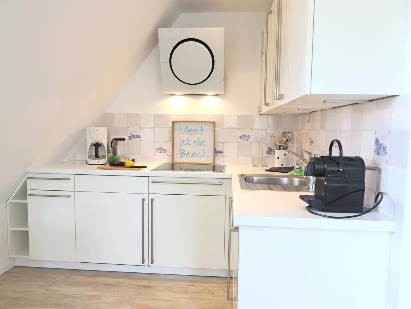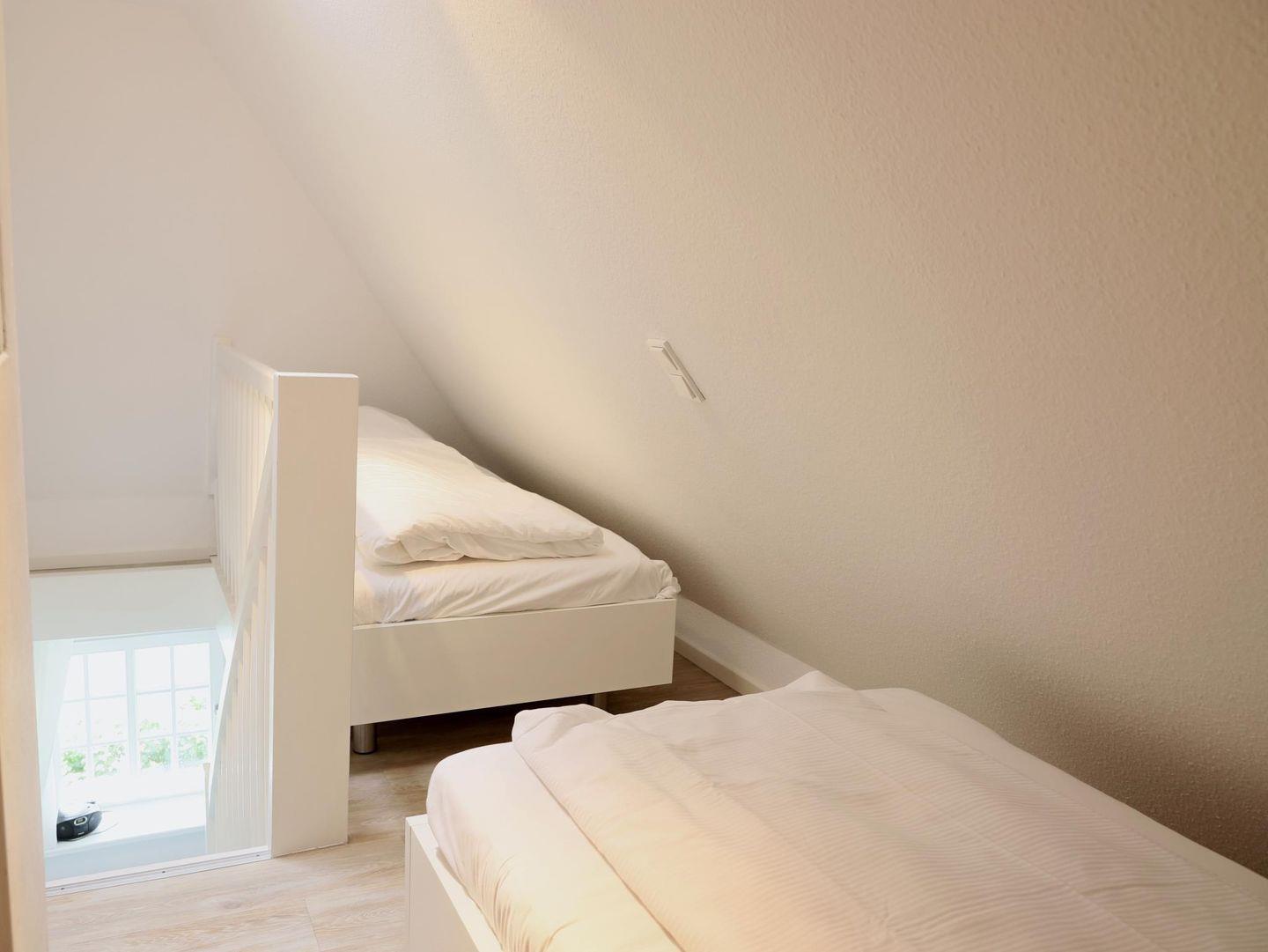 In einer schönen Reetdachanlage in südlicher Richtung gelegen, bietet diese Wohnung auf 45 m² Platz für bis zu 4 Personen, ideal für 3 Erwachsene mit Kind oder 2 Erwachsene mit 2 Kindern. Der hell und lichtdurchflutete Wohn-/Essraum ist modern eingerichtet. Ein Schlafzimmer mit Doppelbett (180 x 200 cm) befindet sich auf gemeinsamer Ebene, während das zweite Schlafzimmer im Dachgeschoss mit zwei Einzelbetten (90 x 200 cm) ausgestattet ist. Im Außenbereich stehen ein Strandkorb und ein Fahrradständerplatz zur Verfügung. Der Gemeinschaftsgarten lädt zum Verweilen ein. Die Wohnung befindet sich in zentraler Lage, nur wenige Gehminuten von der Innenstadt mit Einkaufsmöglichkeiten und Restaurants entfernt. Der Strandaufgang zum Westerländer Strand ist ebenfalls schnell erreichbar. Ein Bäcker und ein Supermarkt (Famila) befinden sich in der Nähe für Ihre alltäglichen Besorgungen. Haustiere sind nicht gestattet. Ein kostenfreier Stellplatz ist ebenfalls vorhanden. Waschmaschine und Trockner mit Münzzähler befinden sich im Keller.