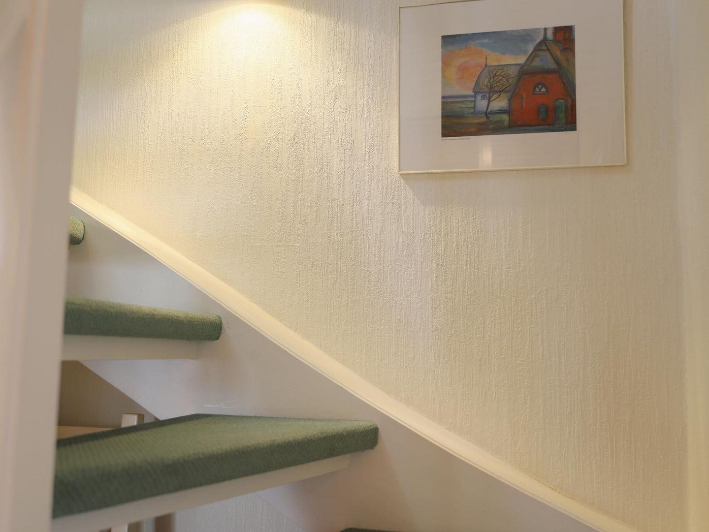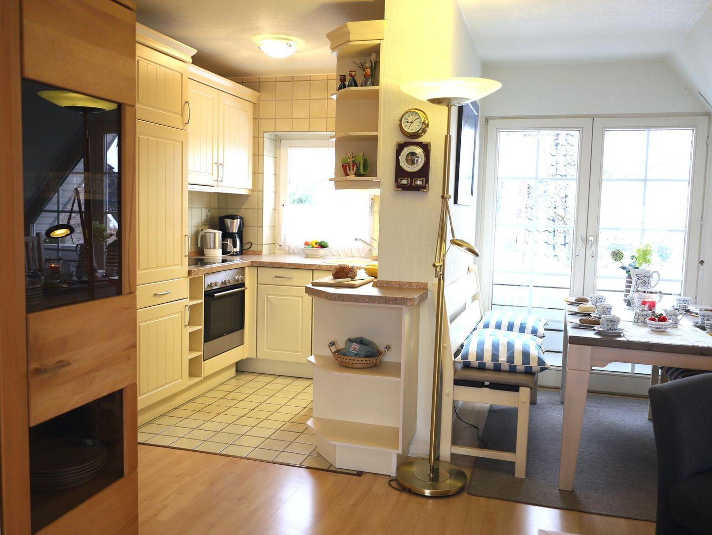Diese 82 m² große Dachgeschosswohnung in einer ruhigen Sackgasse am Rande von Westerland/Wenningstedt bietet Platz für bis zu 4 Personen. Zwei Schlafzimmer stehen zur Verfügung: eines mit Doppelbett (180 x 200 cm) und Kabel-TV, das andere mit zwei Einzelbetten (90 x 200 cm). Zusätzlich gibt es eine Schlafkoje für Kinder bis 10 Jahre. Der offene Wohn- und Essbereich mit moderner, voll ausgestatteter Küche sorgt für Komfort. Ein helles, saniertes Duschbad sowie eine en suite Toilette ergänzen die Ausstattung. Genießen Sie den West-Balkon mit Gartentisch und Stühlen. Der Strand und das Stadtzentrum sind in 15 Gehminuten erreichbar. Einkaufsmöglichkeiten wie ein Bäcker und ein kleiner Supermarkt liegen nur 5 Minuten entfernt. Haustiere sind willkommen, und es stehen zwei kostenfreie Parkplätze zur Verfügung.