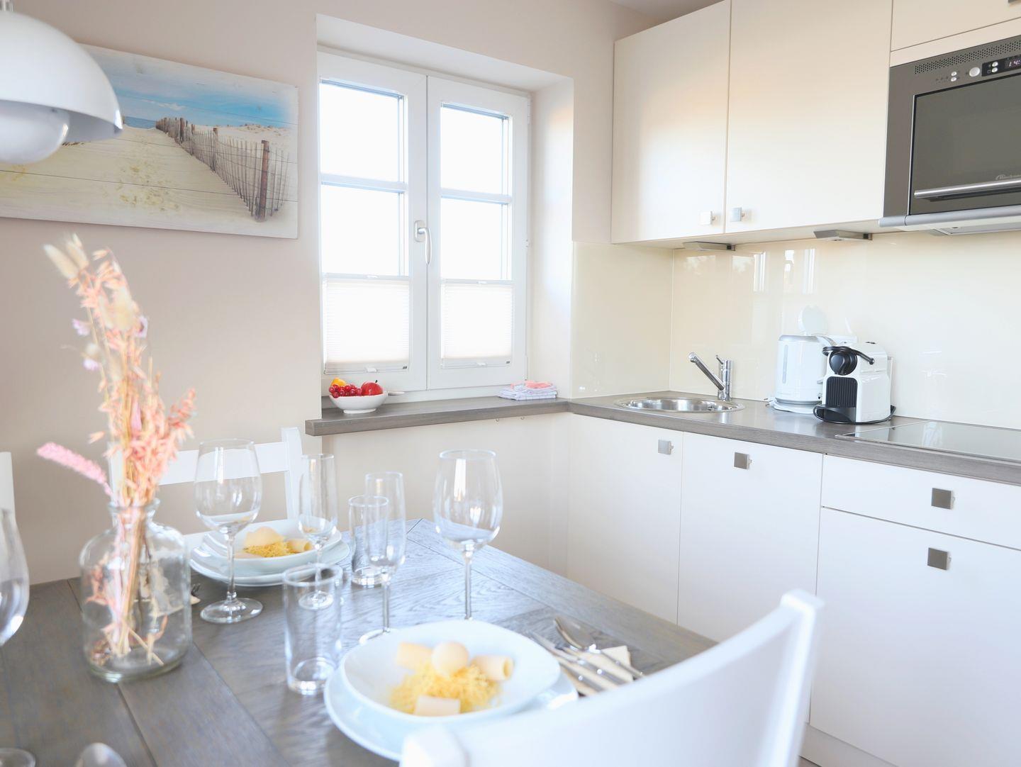 Moderne 3-Zimmer-Ferienwohnung (ca. 52 m²) für 3 Personen in Westerland. 2 Schlafzimmer, 2 Badezimmer, Westbalkon, WLAN, Wohnraum mit Küchenzeile. Hund erlaubt. Strand, Ortszentrum und Gastronomie fußläufig. Kostenfreier Stellplatz.