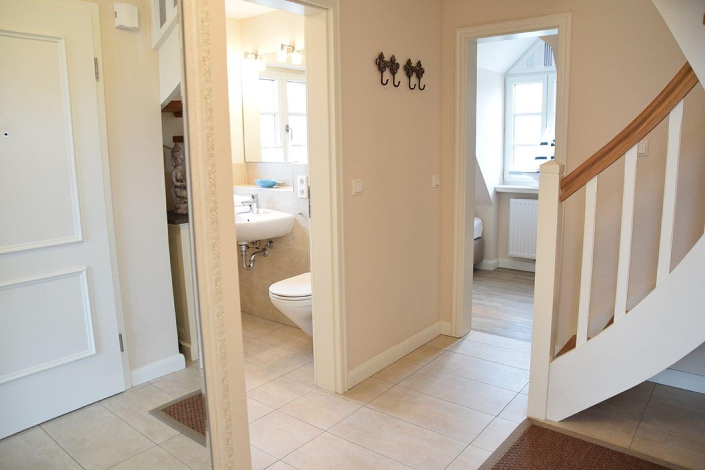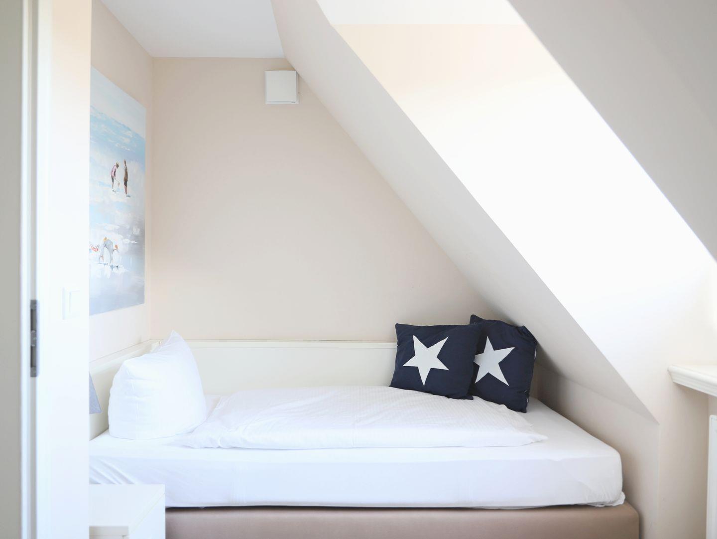 Diese exklusive 3-Zimmer-Ferienwohnung (ca. 52qm) in Westerland befindet sich nur 200m vom Strand entfernt – ideal für einen entspannten Urlaub. Im Obergeschoss gelegen, verfügt die Wohnung über einen Wohnraum mit moderner Küchenzeile und Zugang zu einem Westbalkon. Von hier aus kann man wunderschöne Sonnenuntergänge (Sundowner) beobachten und das Meer rauschen hören. Auf dieser Etage befindet sich auch ein Schlafzimmer mit einem Einzelbett (95x200cm) und ein Bad mit einer Duschwanne und WC. Im Dachgeschoss finden Sie ein weiteres Schlafzimmer mit einem Doppelbett (180x200cm) und eigenem Bad mit Dusche und WC. Wohnzimmer und beide Schlafräume verfügen über ein TV-Gerät. Die Nutzung des WLAN ist im gesamten Apartment kostenlos. Die Wohnung liegt fußläufig zum Strand (ca. 200m), zum Ortszentrum und Westerlands Gastronomie. Weitere Annehmlichkeiten sind ein kostenfreier Autostellplatz und ein Fahrradständer am Haus. Ein Hund ist willkommen. Im Keller stehen eine Waschmaschine und ein Trockner zur Verfügung.