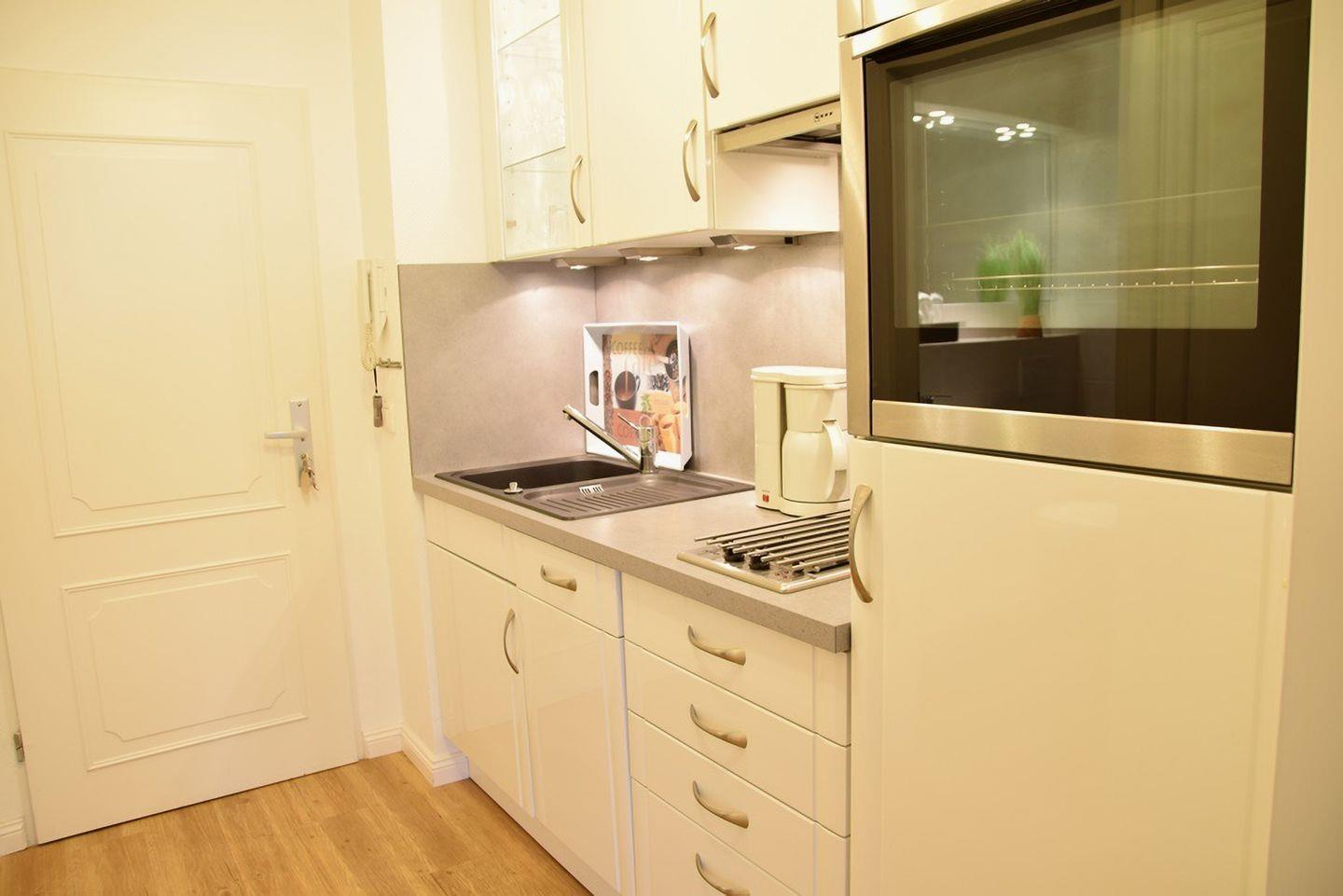 Kompaktes Appartement (ca. 29 m²) in Westerland für 2 Personen. 1 kombinierter Wohn-/Schlafbereich, 1 Badezimmer, Ostbalkon. Nur wenige Gehminuten zum Strand, Bahnhof und Einkaufsmöglichkeiten. Stellplatz auf Parkdeck (kostenfrei), Waschmaschine und Trockner mit Münzzähler.