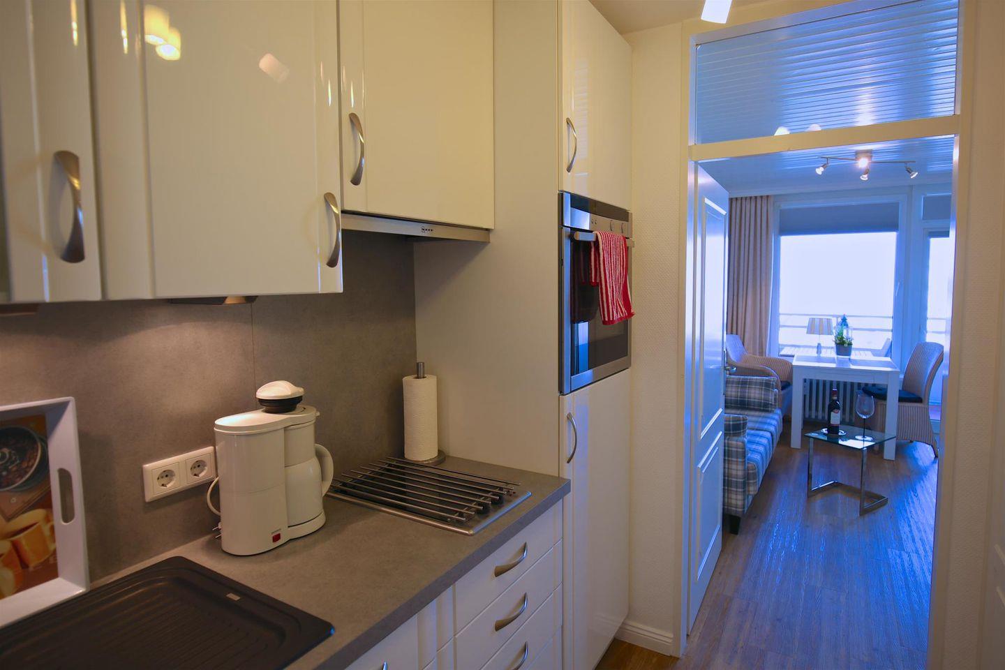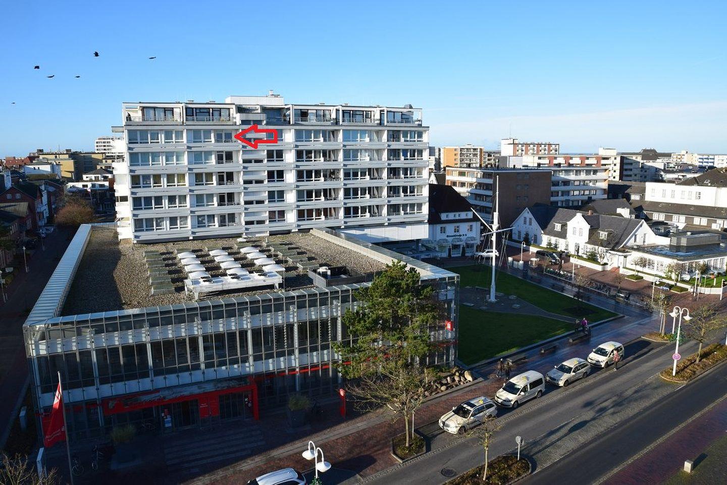Dieses gepflegte Appartement (ca. 29 m²) liegt im Zentrum von Westerland im Sparkassenhaus in der Paulstraße 2 und bietet Platz für 2 Personen. Ideal für Bahnreisende, da der Bahnhof nur wenige Gehminuten entfernt ist. Der Strand, die Promenade und das Wellenbad sind ebenfalls bequem zu erreichen, ebenso wie die Fußgängerzone mit zahlreichen Einkaufsmöglichkeiten, Restaurants und Kneipen. Der kombinierte Wohn-/Schlafbereich ist großzügig und gut ausgestattet. Auf der rechten Seite befindet sich eine Schrankwand mit ausklappbaren Schrankbetten (160 x 200 cm), während auf der linken Seite eine Couchgarnitur für gemütliche Stunden sorgt. Ein Esstisch mit 2 Stühlen ist ebenfalls integriert. Der Ostbalkon mit Gartentisch und Stühlen lädt zum Entspannen ein. Die offene Küchenzeile im Vorflur ist gut ausgestattet. Das Badezimmer ist mit Dusche und WC ausgestattet. Ein Stellplatz auf dem Parkdeck (kostenfrei) steht zur Verfügung. Außerdem gibt es eine Waschmaschine und einen Trockner (beide mit Münzzähler). Haustiere sind nicht gestattet.