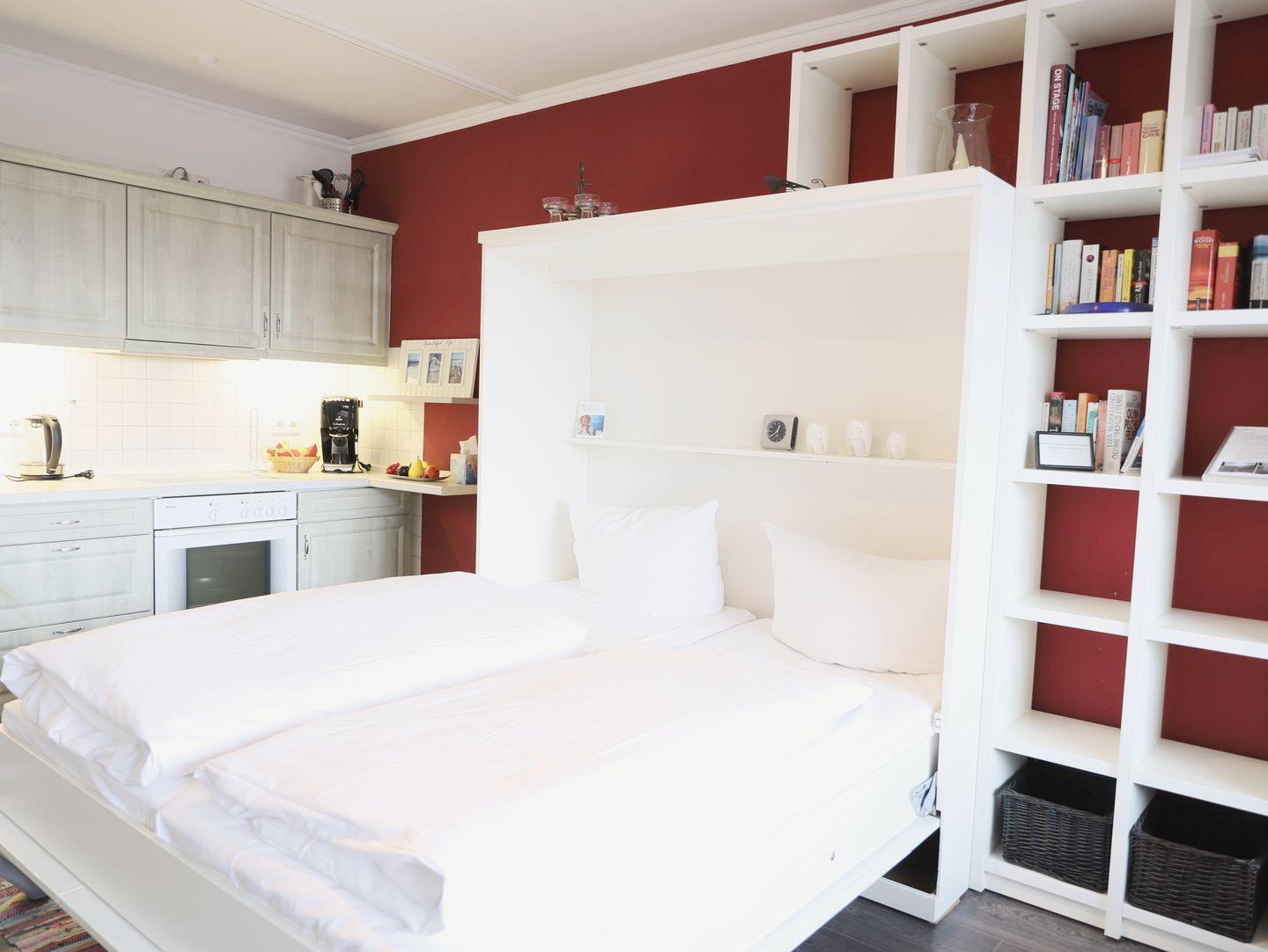 Neu renoviertes 1-Zimmer-Appartement für 2 Personen in Westerland. Mit Schrankbett, Südbalkon, angrenzendem Stellplatz und Waschmaschine/Trockner im Keller. Nur wenige Schritte vom Bäcker und Supermarkt entfernt. Haustiere willkommen.