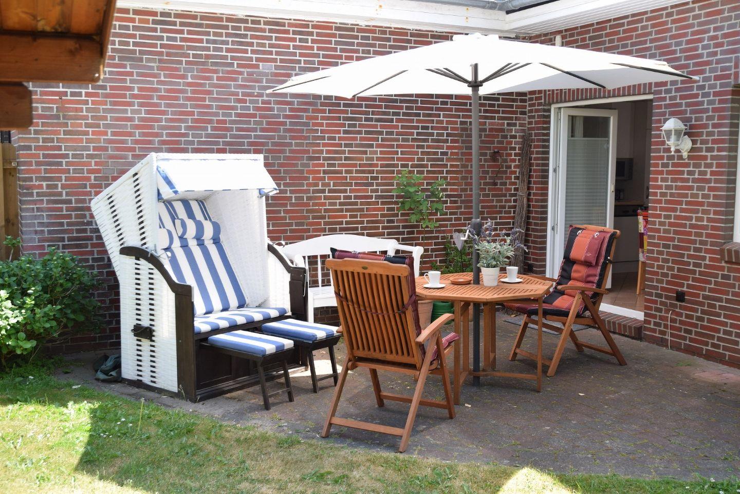 Komfortable 40 m² Erdgeschosswohnung in Westerland für 4 Personen, mit Nord-Terrasse, Garten und Strandkorb. Zentrale Lage, nahe Strand und Bahnhof. Keine Haustiere.