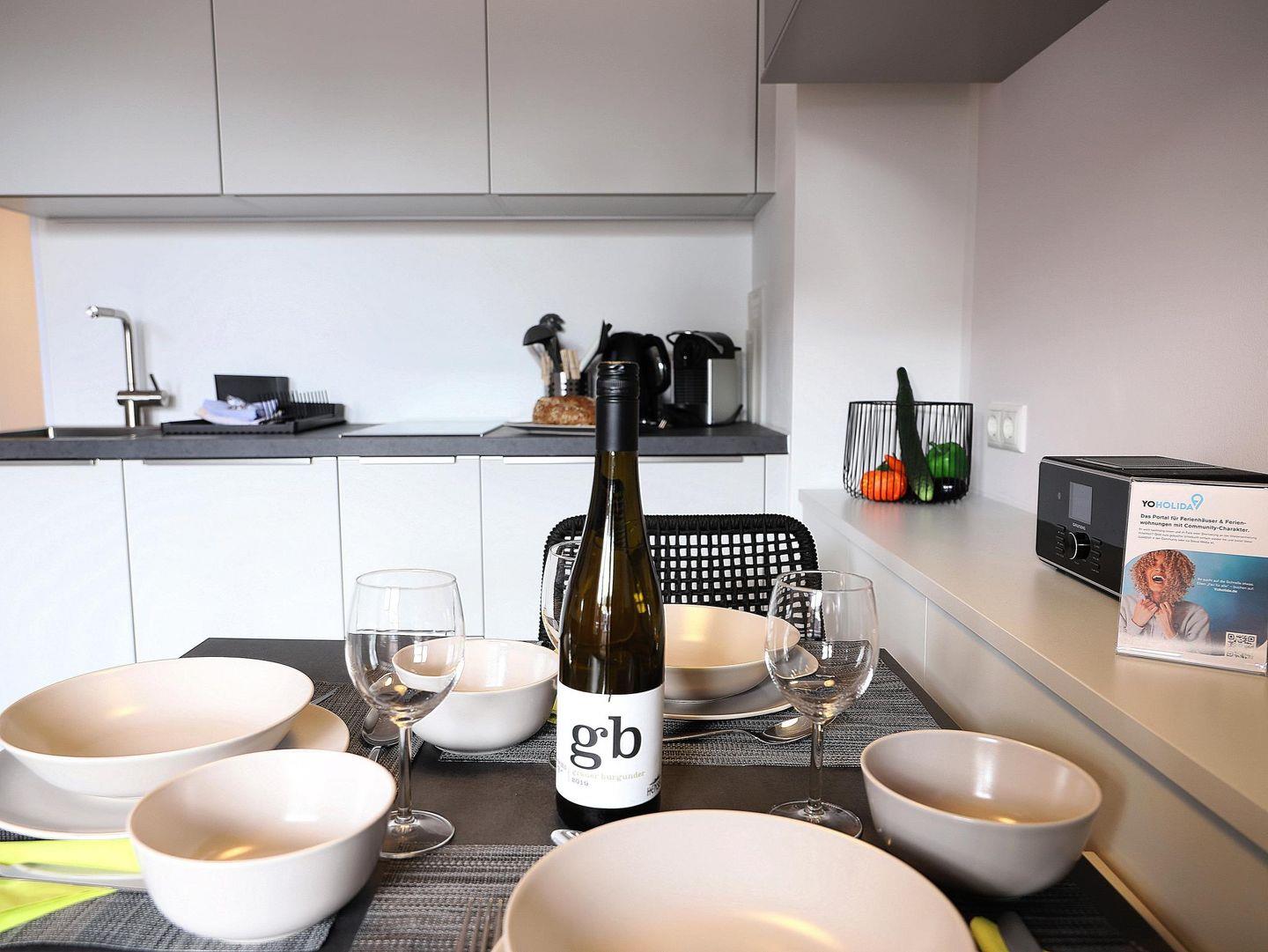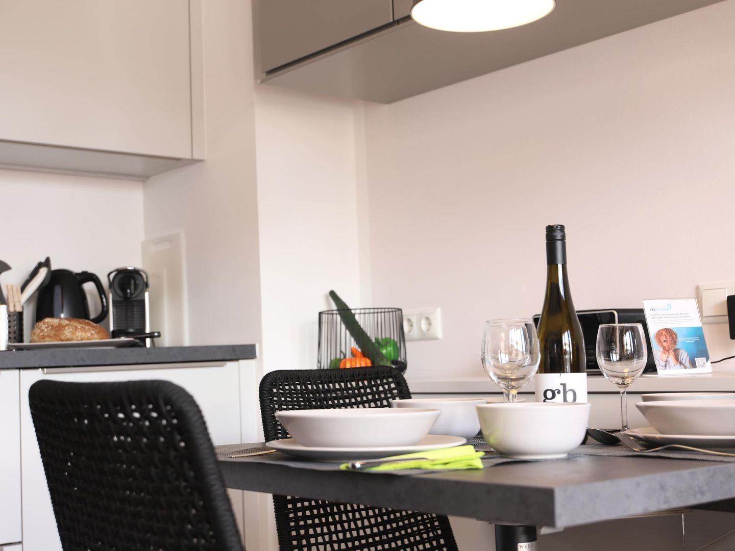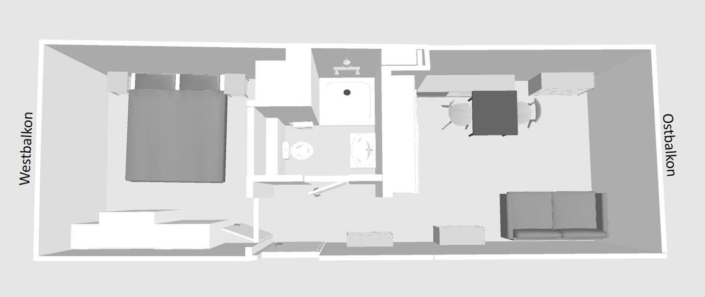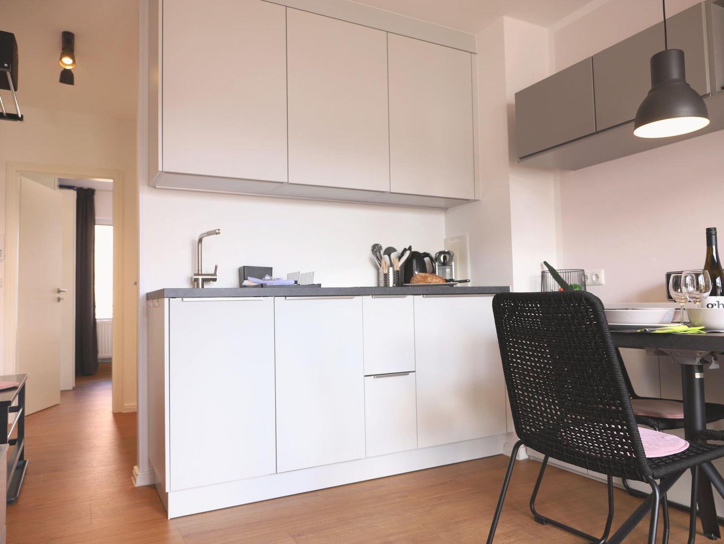 Im Frühjahr 2020 komplett umgebaute und neu eingerichtete hochwertige ca. 37 qm große Wohnung mit zwei Zimmern sowie zwei Balkonen im zweiten Stock (oberste Wohnung). Zur Ostseite auf die Elisabethstraße lädt die Wohnküche mit dem Balkon für ein windgeschütztes Frühstück in der Morgensonne ein. Auf der ruhigen Westseite zum Innenhof liegt das Schlafzimmer und der Westbalkon mit der Nachmittagssonne. In der Wohnküche findet sich alles für einen perfekten Urlaub: 40-Zoll Loewe-TV, Grundig UKW-DAB-Internet-Bluetooth-Radio, Nespresso-Maschine, Induktionskochfeld und Mikrowelle. Das Schlafzimmer bietet ein Doppelbett (180 x 200cm) und Verdunklungsvorhänge. Im Bad befindet sich eine Regendusche inkl. Handbrause und WC. Die Wohnung ist ideal für zwei Erwachsene und ggf. ein Kind (IKEA-Kinderstuhl vorhanden). Parkplatz/ Doppelparker-Stellplatz Nr. 2 genutzt werden. Bitte beachten Sie die eingeschränkten Fahrzeugmaße! Nutzung nur auf eigenes Risiko. (max. Fahrzeug-Maße: Höhe 1,40m; Breite 1,9.