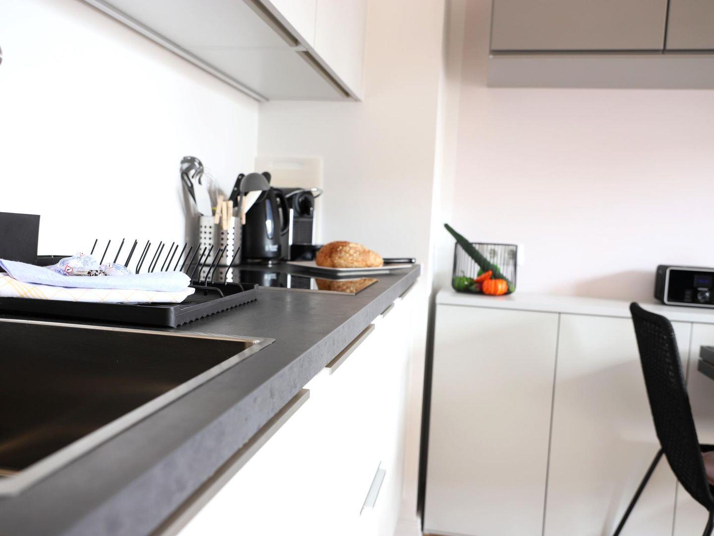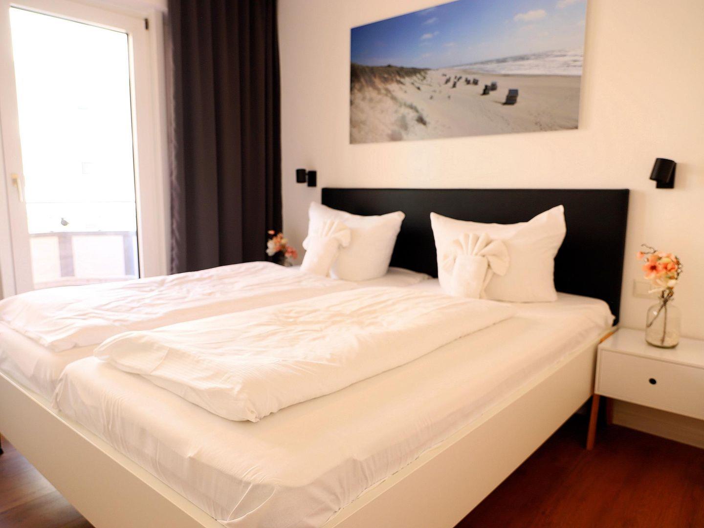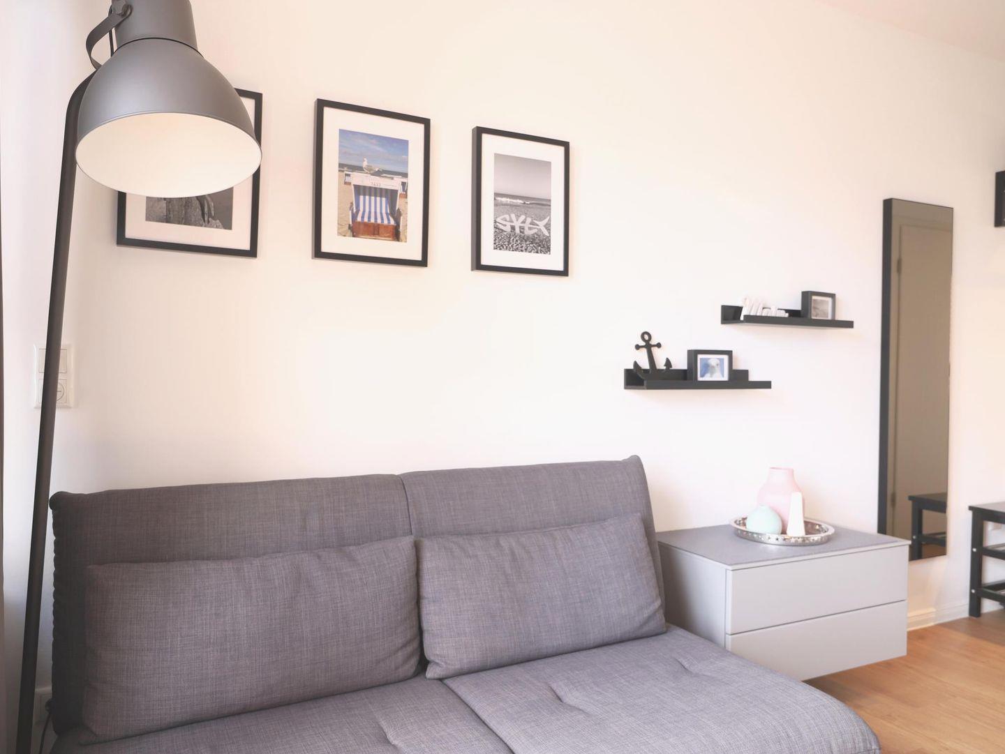 Im Frühjahr 2020 komplett umgebaute und neu eingerichtete hochwertige ca. 37 qm große Wohnung mit zwei Zimmern sowie zwei Balkonen im zweiten Stock (oberste Wohnung). Zur Ostseite auf die Elisabethstraße lädt die Wohnküche mit dem Balkon für ein windgeschütztes Frühstück in der Morgensonne ein. Auf der ruhigen Westseite zum Innenhof liegt das Schlafzimmer und der Westbalkon mit der Nachmittagssonne. In der Wohnküche findet sich alles für einen perfekten Urlaub: 40-Zoll Loewe-TV, Grundig UKW-DAB-Internet-Bluetooth-Radio, Nespresso-Maschine, Induktionskochfeld und Mikrowelle. Das Schlafzimmer bietet ein Doppelbett (180 x 200cm) und Verdunklungsvorhänge. Im Bad befindet sich eine Regendusche inkl. Handbrause und WC. Die Wohnung ist ideal für zwei Erwachsene und ggf. ein Kind (IKEA-Kinderstuhl vorhanden). Parkplatz/ Doppelparker-Stellplatz Nr. 2 genutzt werden. Bitte beachten Sie die eingeschränkten Fahrzeugmaße! Nutzung nur auf eigenes Risiko. (max. Fahrzeug-Maße: Höhe 1,40m; Breite 1,9.