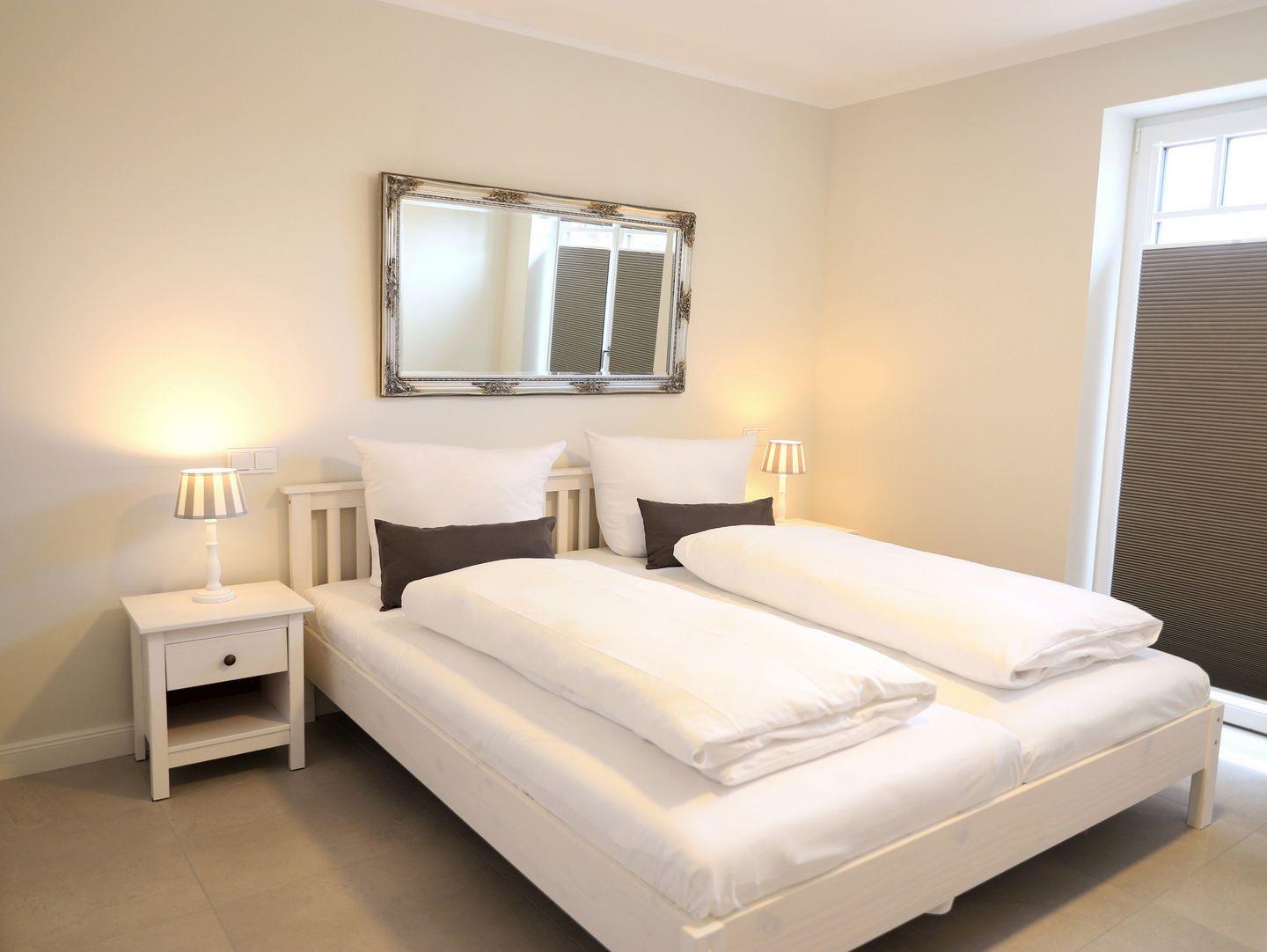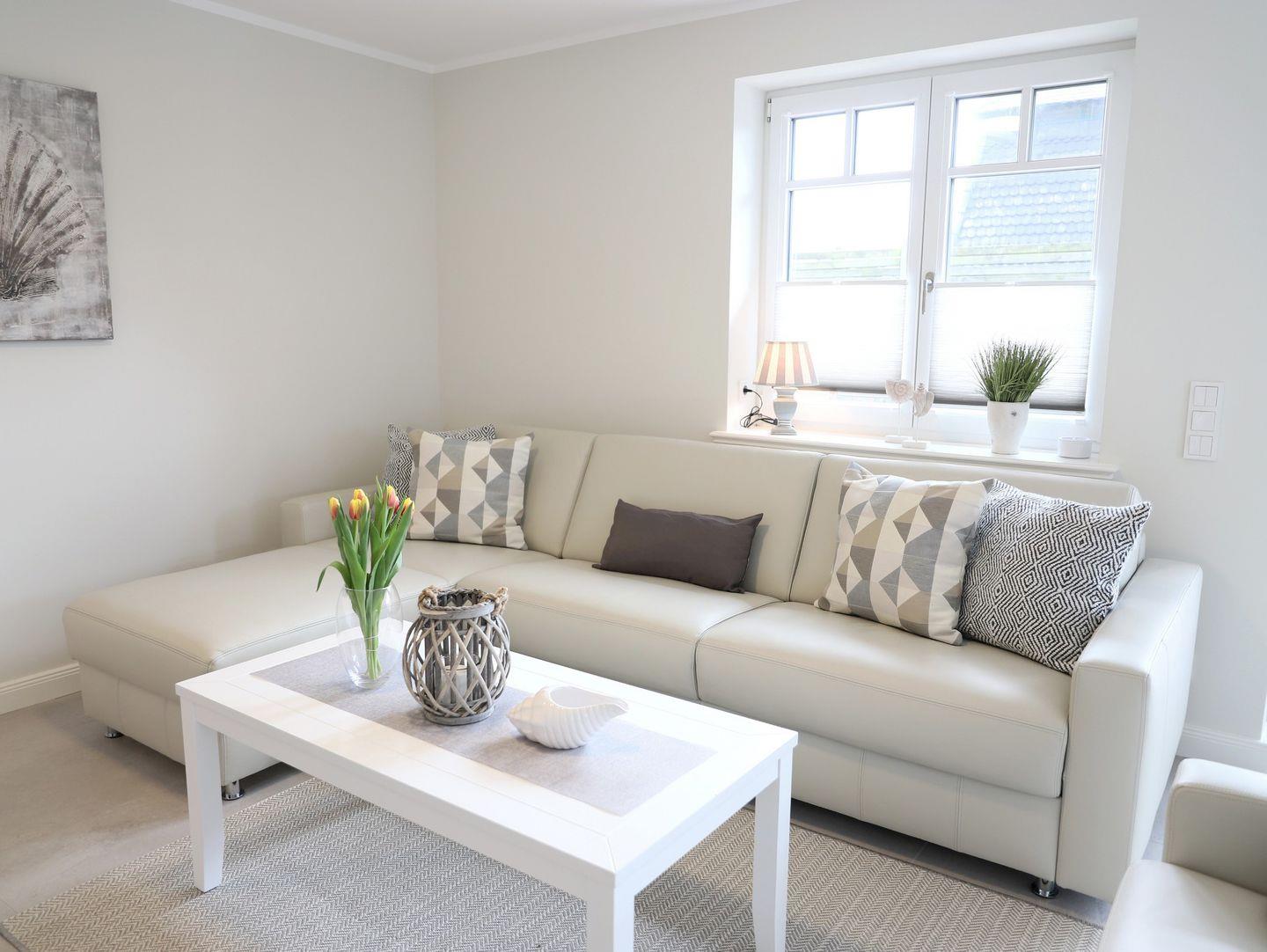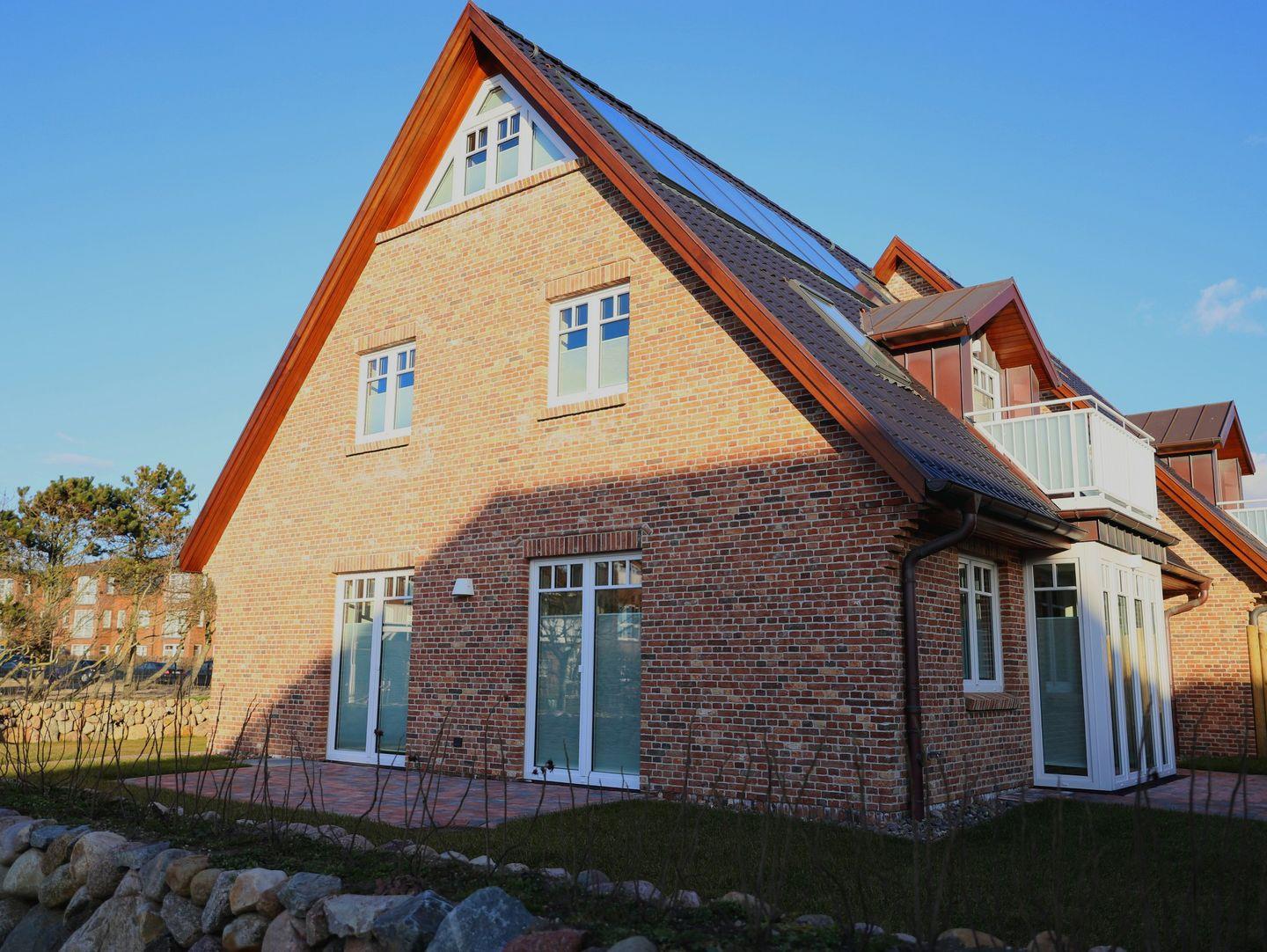 Hochwertig eingerichtete Erdgeschosswohnung (ca. 97 m²) in Westerland für 4 Personen. 1 Schlafzimmer, 1 Badezimmer, 1 Gäste-WC, Saunabereich. 2 Terrassen mit Strandkorb, Garten, kostenfreier Stellplatz. Waschmaschine und Trockner im Keller. Haustiere willkommen. Fitnessraum mit Trimmrad und Laufband (Heimtrainer).