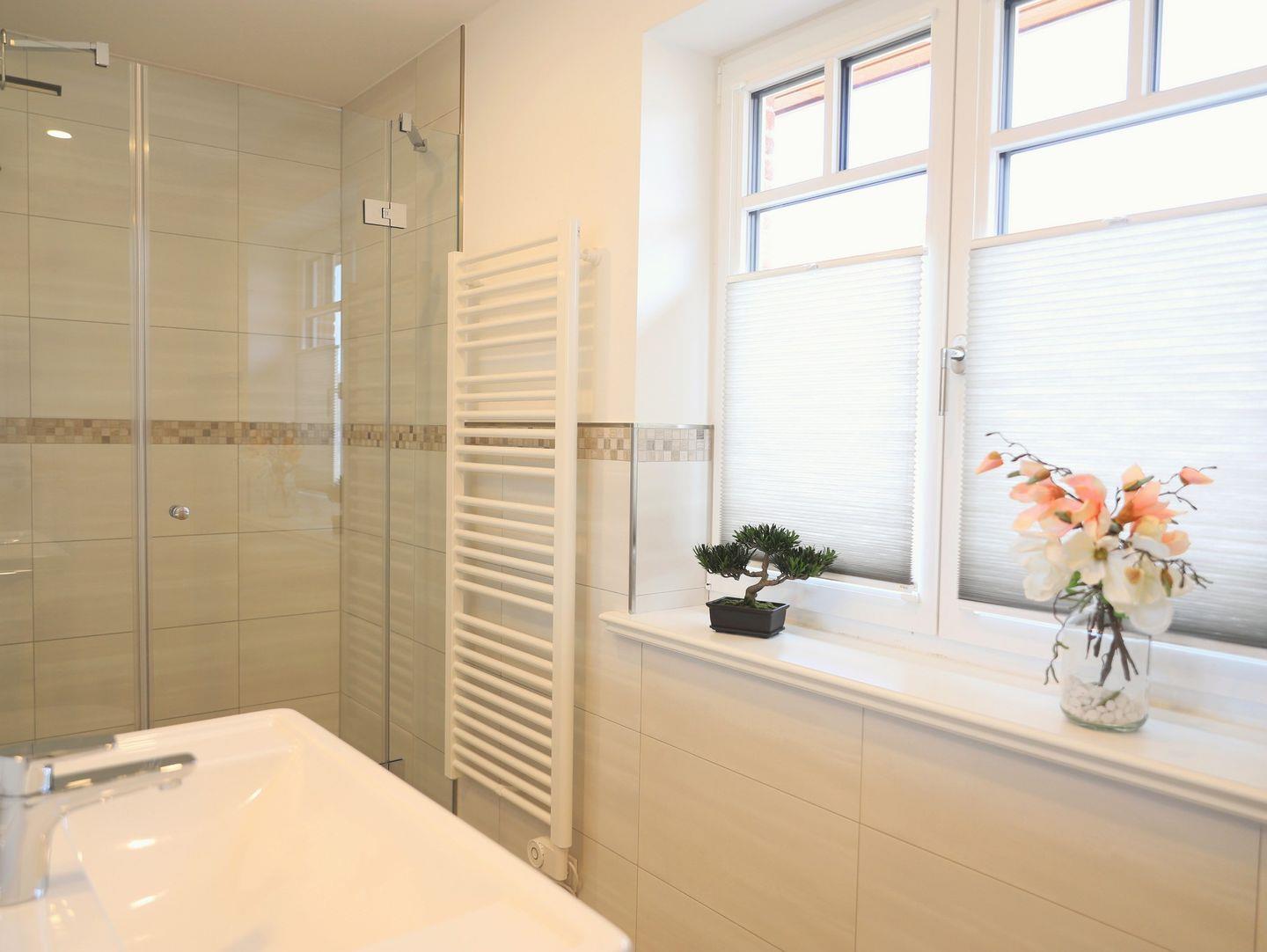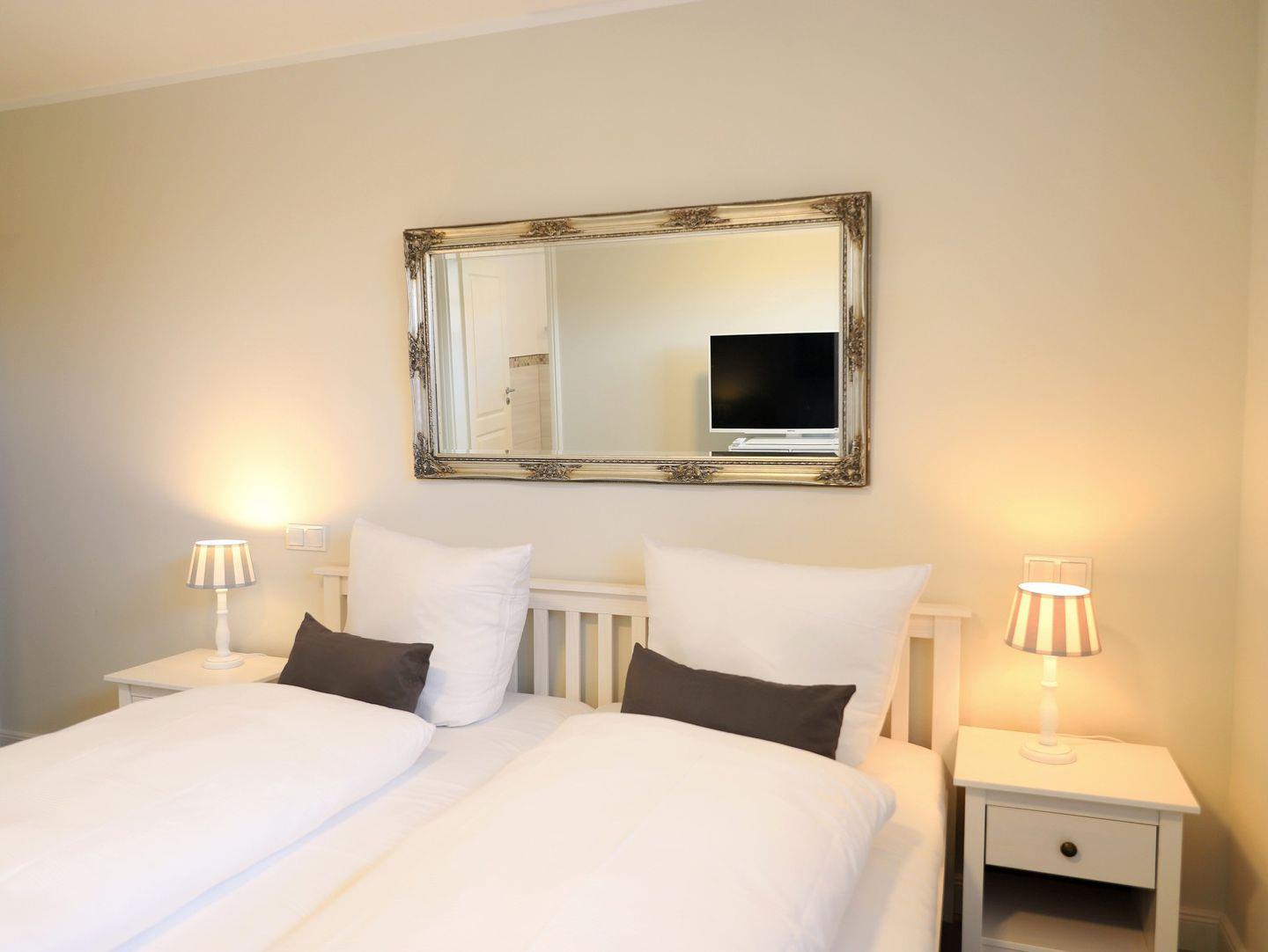 Diese wunderschöne, hochwertig eingerichtete Erdgeschosswohnung in Westerland (ca. 97 m²) über 2 Ebenen bietet viel Platz für 4 Personen. Das lichtdurchflutete, luftige Wohn-/Esszimmer lädt zum Entspannen ein und ist mit geschmackvoll abgestimmten Möbeln und Farben ausgestattet. Das Schlafsofa bietet im Wohnzimmer (160 x 200 cm) zusätzlichen Schlafplatz für 2 Personen. Das Schlafzimmer verfügt über ein großes Doppelbett (180 x 200 cm) und bietet Zugang zu einer der zwei Terrassen, die Richtung Süden und Westen ausgerichtet sind. Die zweite Terrasse ist vom Wohnzimmer aus erreichbar. Auf den Terrassen finden Sie jeweils einen Strandkorb (April bis Oktober) sowie Gartentische und Stühle für Ihre Erholung im Freien. Die Wohnung bietet 1 Badezimmer mit Dusche/WC und einen weiteren Saunabereich mit zusätzlichem Bad. Ein Gäste-WC sorgt für zusätzlichen Komfort. Für Ihren Aufenthalt stehen Ihnen ein kostenfreier Stellplatz, eine Waschmaschine und ein Trockner im Keller zur Verfügung. Haustiere sind herzlich willkommen. Fitnessraum mit Trimmrad und Laufband (Heimtrainer).