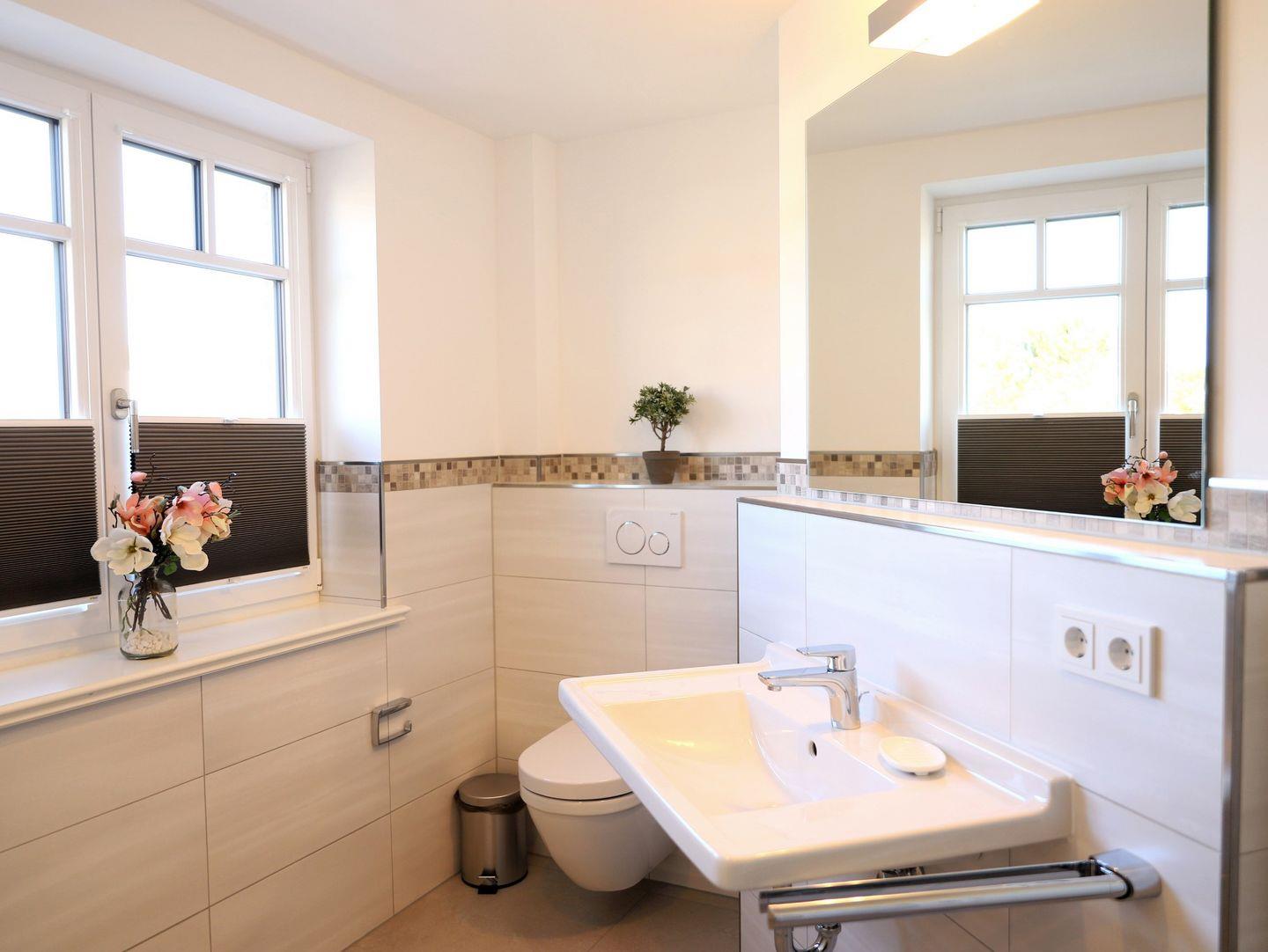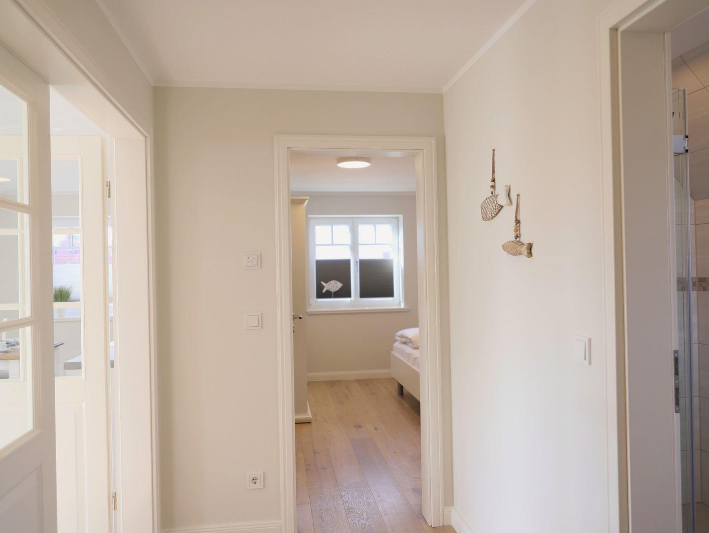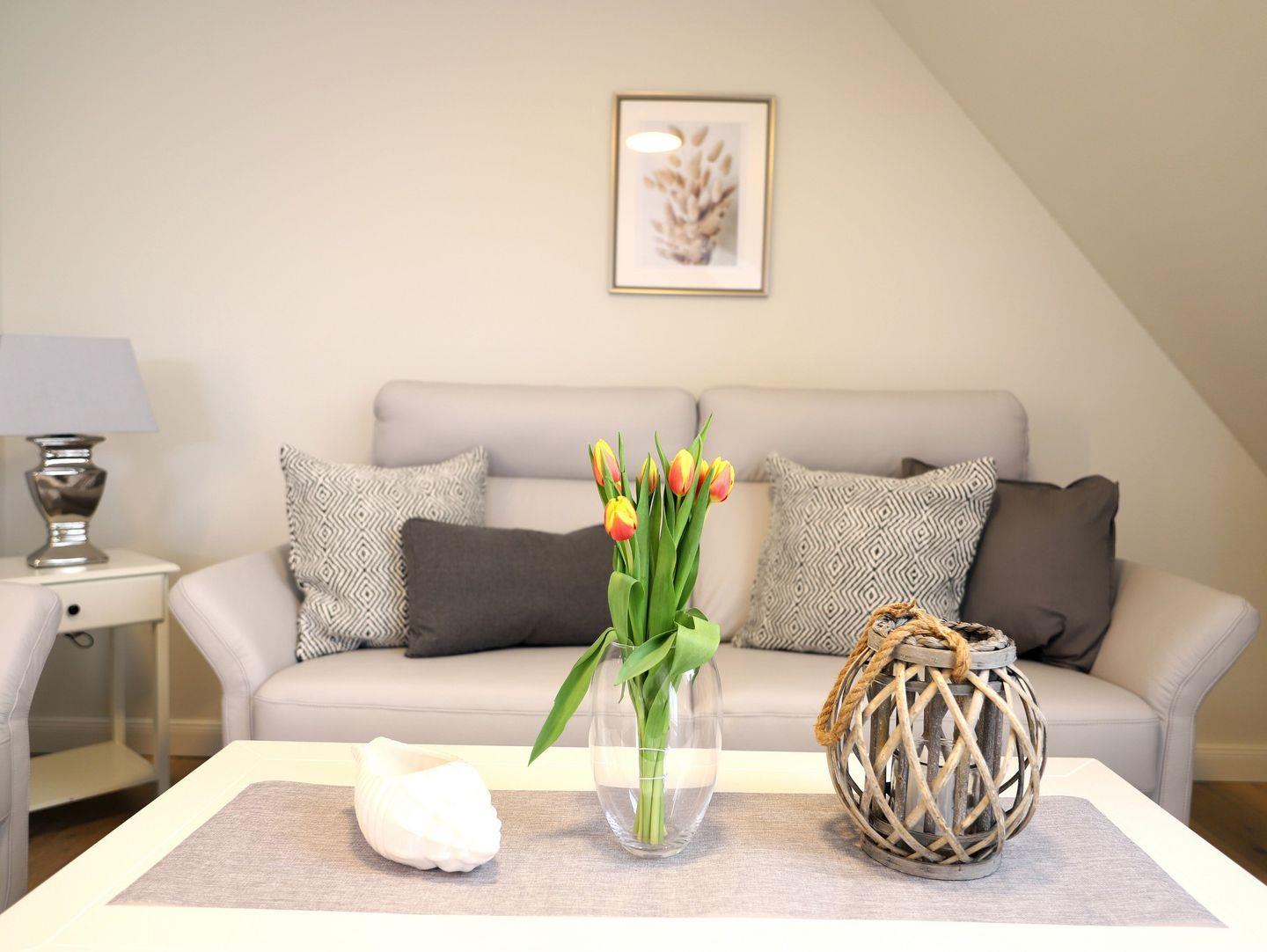 Diese sehr schöne, hochwertig eingerichtete Obergeschosswohnung (ca. 85 m²) in Westerland erstreckt sich über 2 Ebenen und bietet Platz für bis zu 4 Personen. Das lichtdurchflutete Wohn-/Esszimmer ist der perfekte Ort zum Entspannen. Die geschmackvoll abgestimmte Möblierung sowie die harmonische Farbgestaltung ziehen sich durch die gesamte Wohnung. Vom großzügigen Wohnzimmer aus gelangen Sie auf den großen Süd-Balkon, der mit Gartentischen und Stühlen ausgestattet ist und zum Relaxen einlädt. Das Schlafzimmer 1 ist mit einem Doppelbett (180 x 200 cm) ausgestattet und verfügt über Kabel-TV. Das Schlafzimmer 2 bietet zwei Einzelbetten (90 x 190 cm). Die Wohnung bietet zwei zusätzliche Badezimmer für Komfort. Zur Ausstattung gehören ein kostenfreier Stellplatz und ein Fahrradständer. Haustiere sind willkommen.
