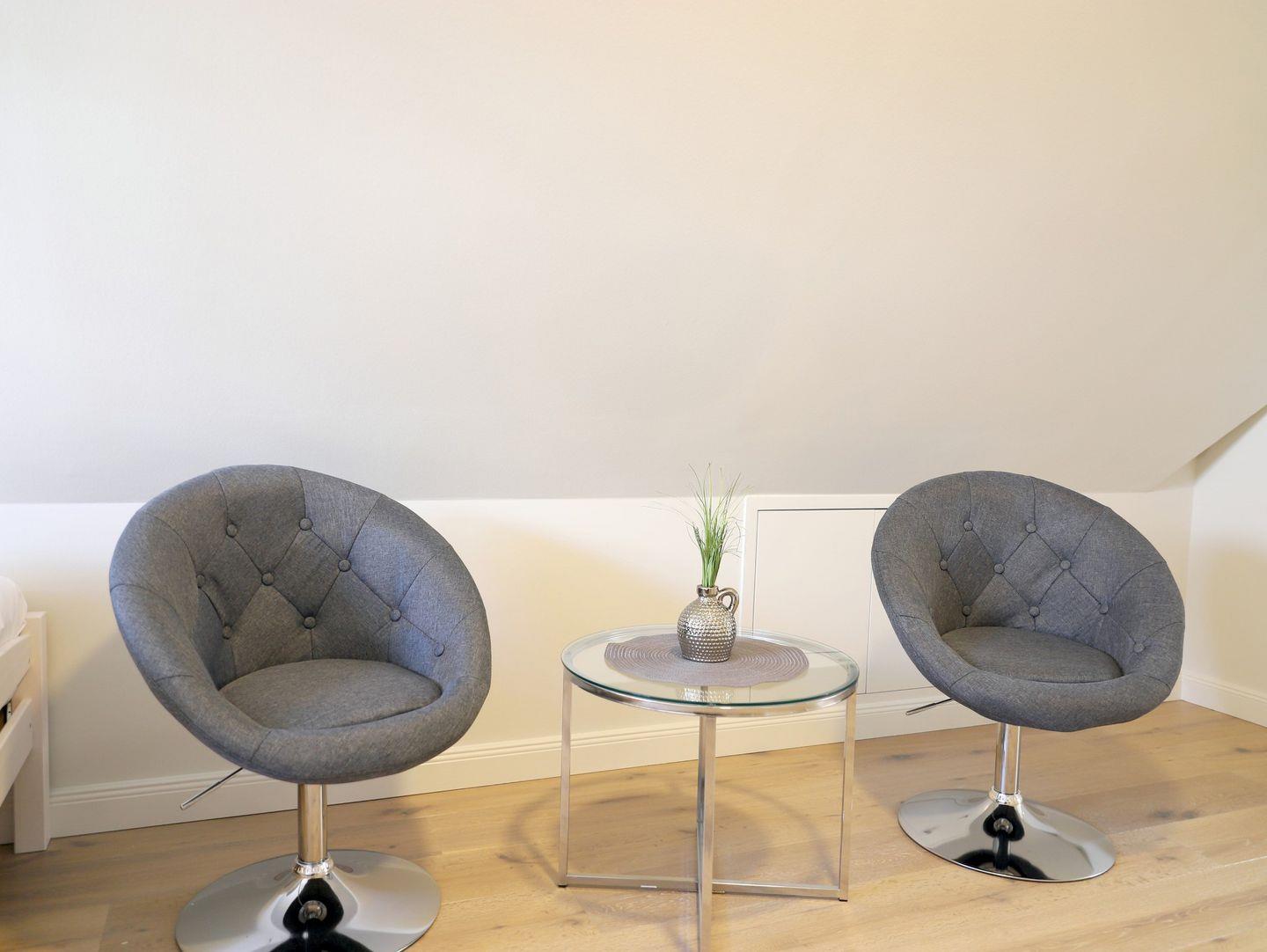 Hochwertig eingerichtete Obergeschosswohnung (ca. 85 m²) in Westerland für 4 Personen. 2 Schlafzimmer, 2 Badezimmer, großes Wohnzimmer, Süd-Balkon. Kabel-TV, kostenfreier Stellplatz. Haustiere willkommen.