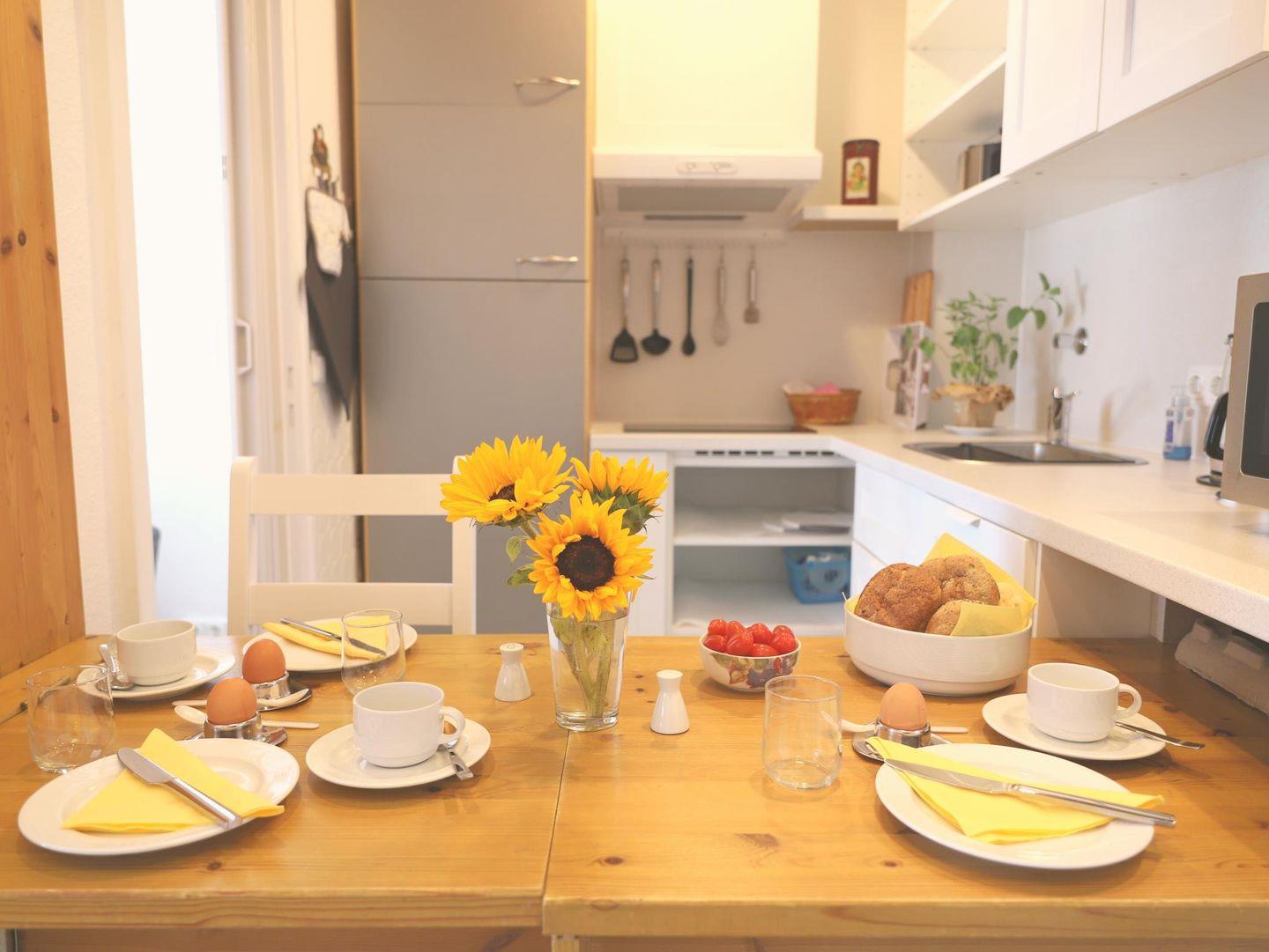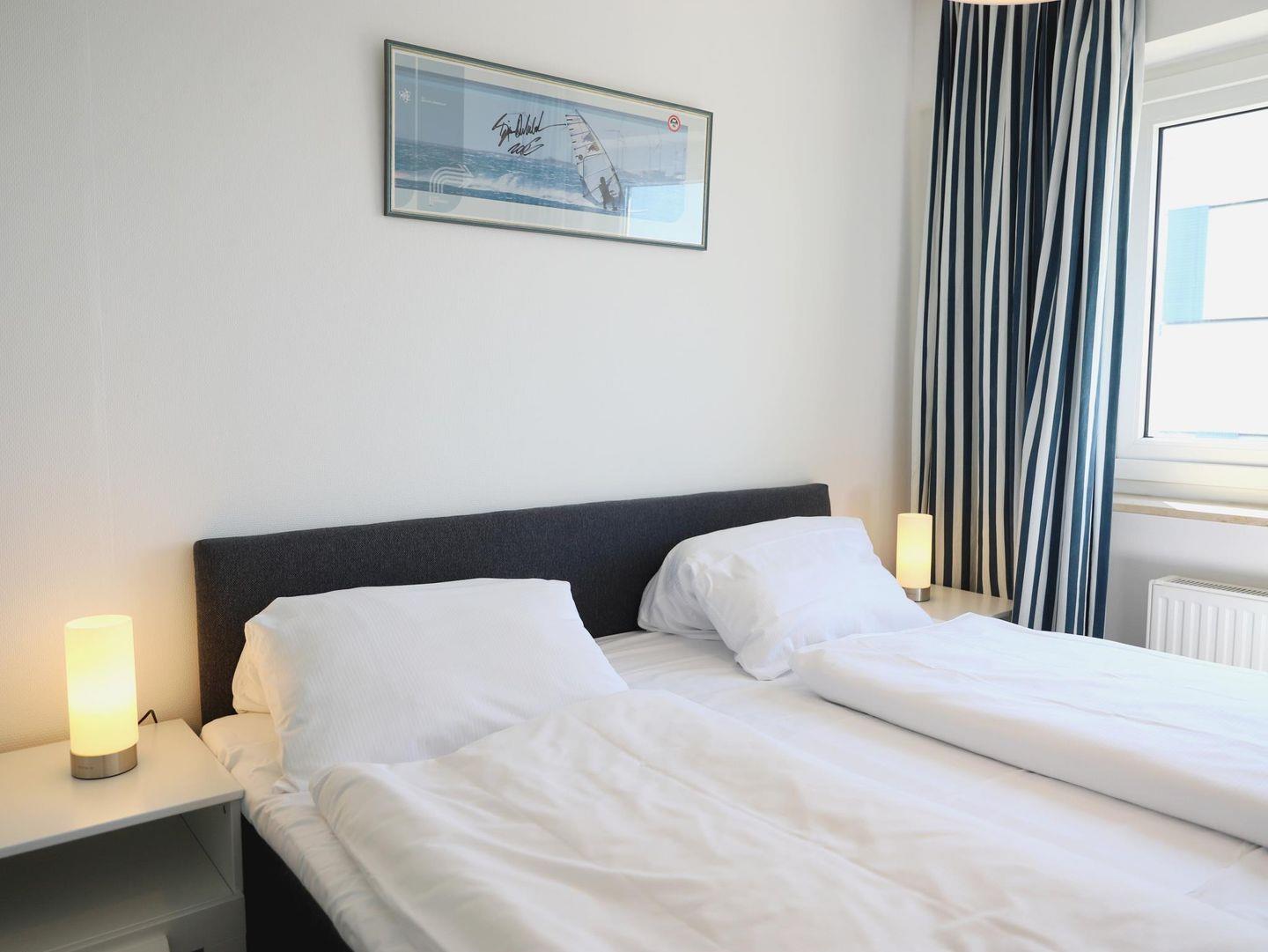 Süßes 2-Zimmer-Appartement (ca. 40 m²) für bis zu 3 Personen im 4. Stock von Westerland. Mit Schlafsofa, Boxspringbett, Süd-Balkon und kostenfreier Nutzung von Schwimmbad und Sauna. Haustiere willkommen. W-Lan inklusive. Parkplatz vorhanden.