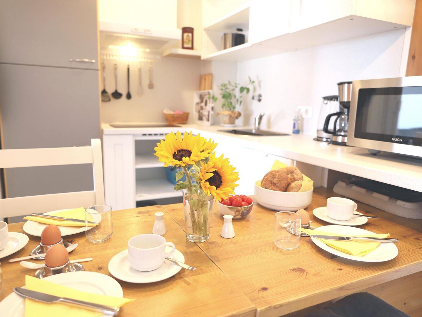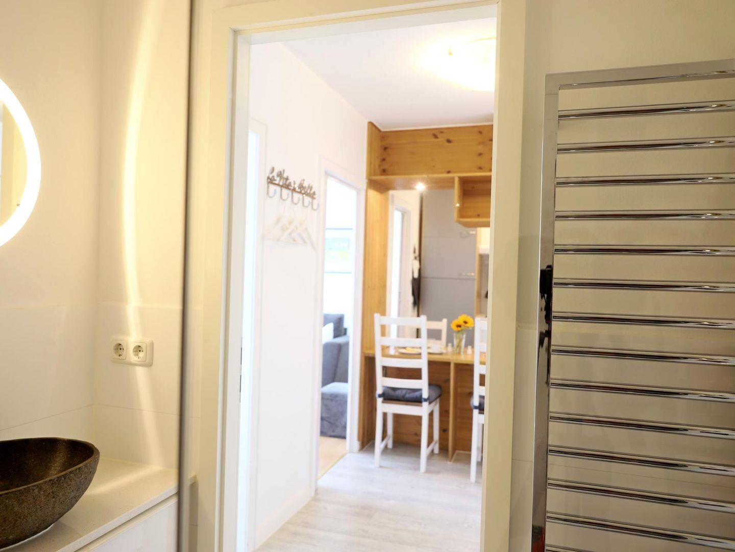 Dieses charmante 2-Zimmer-Appartement (ca. 40 m²) im 4. Stock bietet Platz für bis zu 3 Personen und ist ideal für Paare oder kleine Familien. Das Schlafzimmer verfügt über ein gemütliches 1,80 x 2,00 m großes Boxspringbett für erholsamen Schlaf. Im Wohnzimmer befindet sich eine Schlafcouch (160 x 200 cm), die zusätzlichen Komfort bietet. Die komplett ausgestattete Küche ist ideal für Selbstversorger. Das Badezimmer bietet ein modernes Duschbad und WC. Der Süd-Balkon lädt mit Gartentischen und Stühlen zum Entspannen und Genießen ein. Das Appartementhaus bietet außerdem ein Hallenschwimmbad und eine Sauna (gegen Münzzahlung). Die Nutzung des Wellnessbereichs (Schwimmbad, Sauna, usw.) wird durch die Hausordnung geregelt und bleibt jederzeit vorbehalten. Für Familien bieten wir auf Anfrage einen Kinderhochstuhl und ein Babybett an. WLAN (offenes Netzwerk) ist im gesamten Haus verfügbar. Ein kostenfreier Stellplatz und ein Abstellraum für Fahrräder stehen zur Verfügung, jedoch ohne Garantie auf einen festen Stellplatz. Zudem können Gäste gegen Münzzahlung die Waschmaschine und den Trockner im Haus nutzen. Haustiere sind willkommen. PKW-Parkplatz vorhanden.